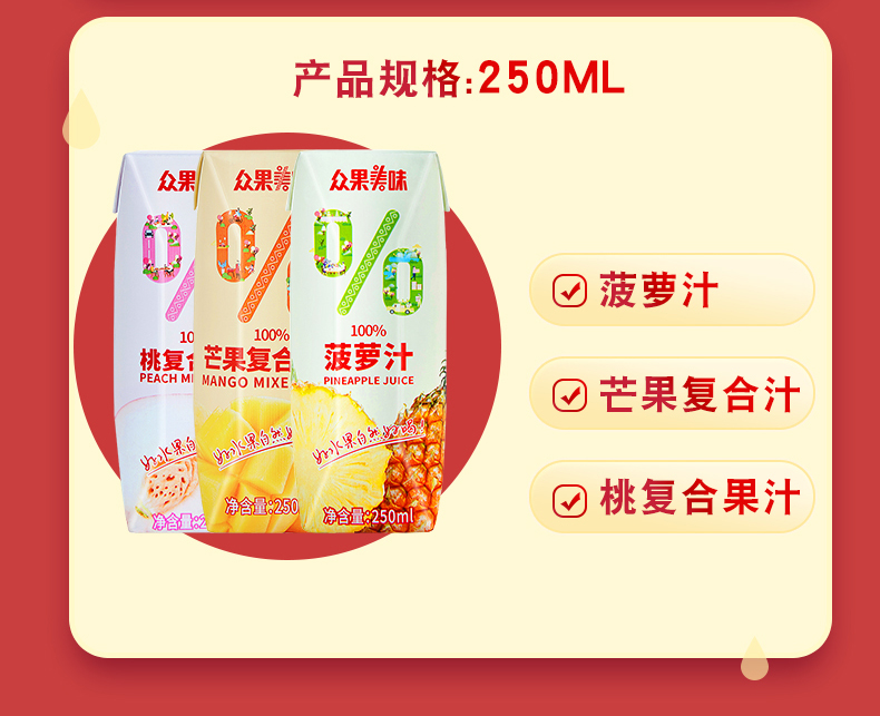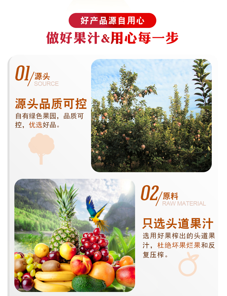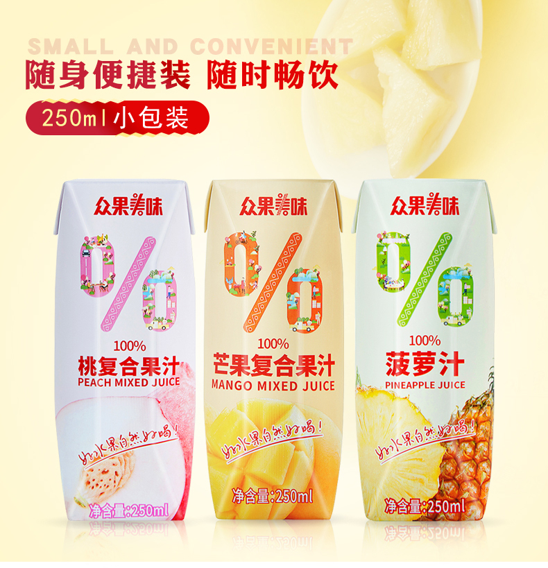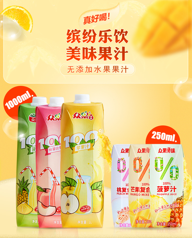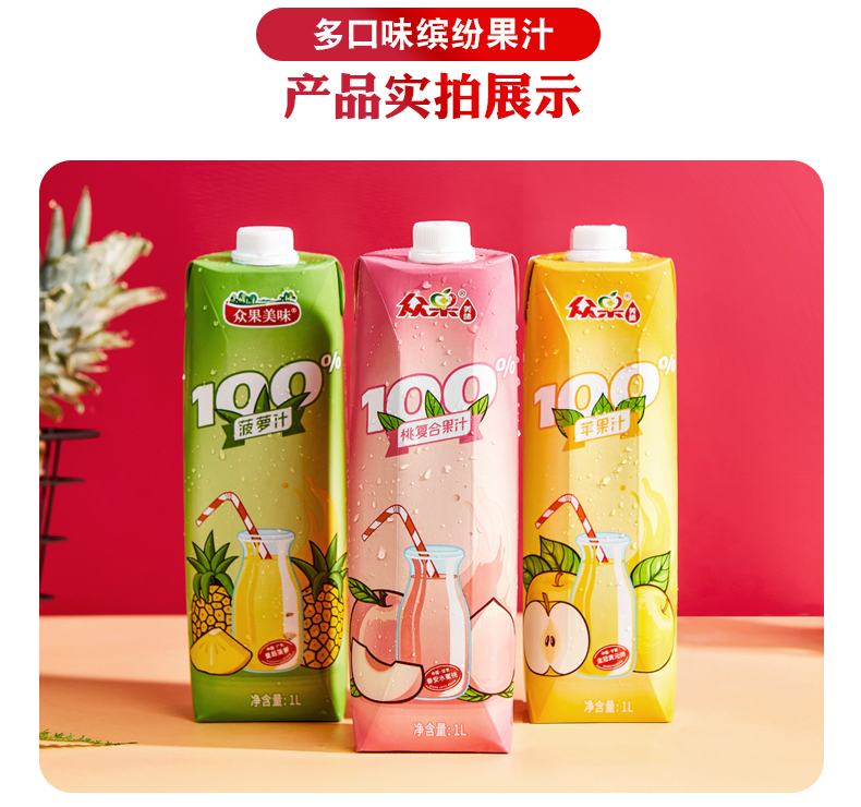 不加糖,不加色素,不加防腐剂日期新鲜,果不落地,头道好汁,无菌包装!苹果汁,菠萝汁,桃复合汁;炎炎夏日,让我们喝能解暑更有健康的真果汁!
