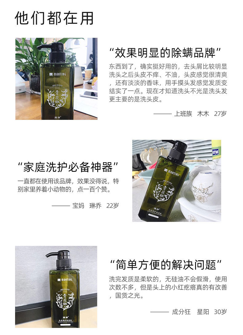 【赠多效护发精华260ml】拥有国家专利,黄圣依等明星热推的满婷无硅油除螨洗发水,天然植物成分,深层净化头皮,拯救油头、掉发以及头皮长痘,控油固发,令秀发轻盈蓬松、柔顺亮泽!
