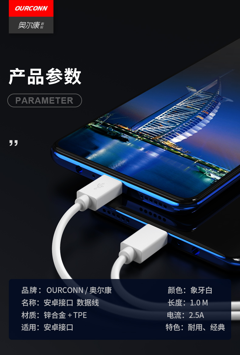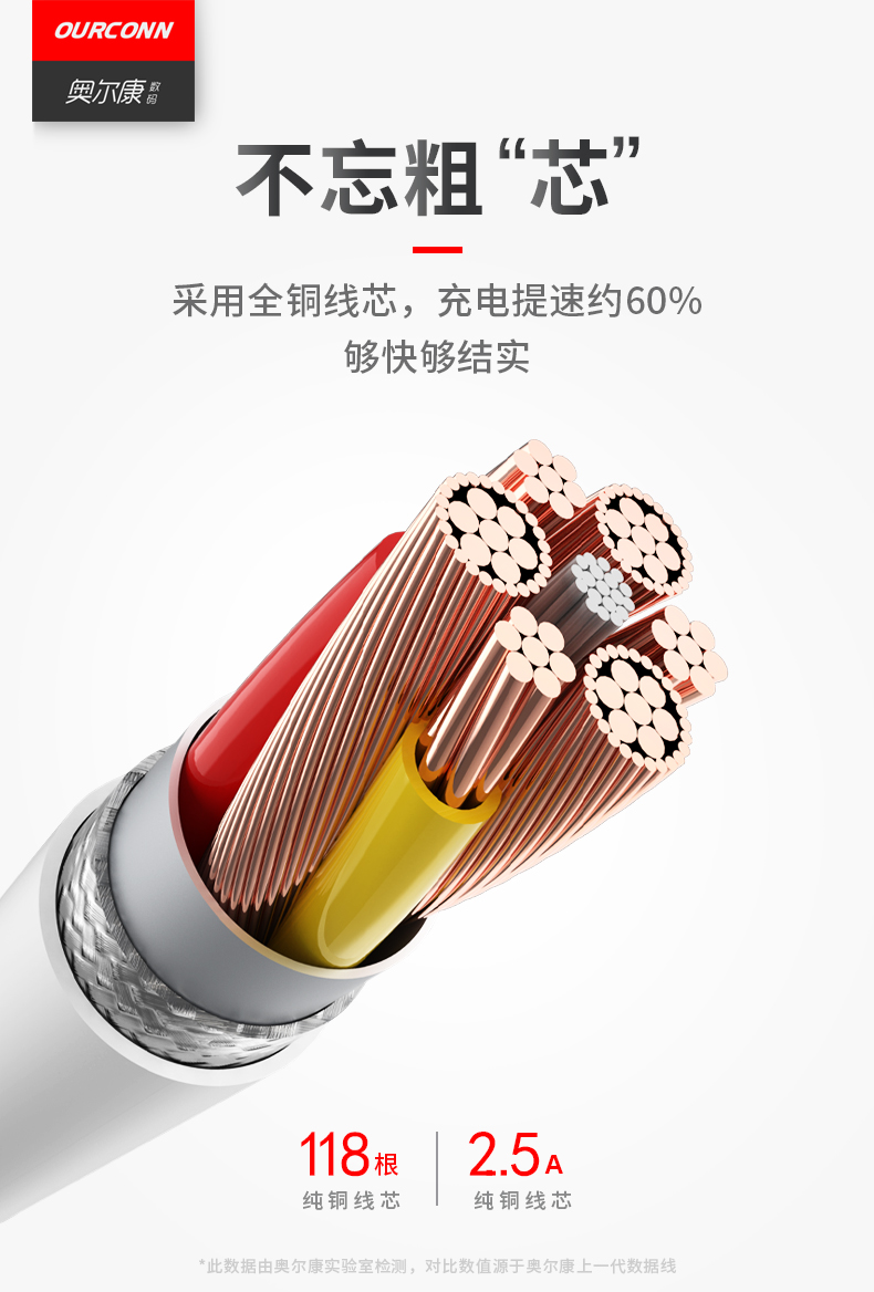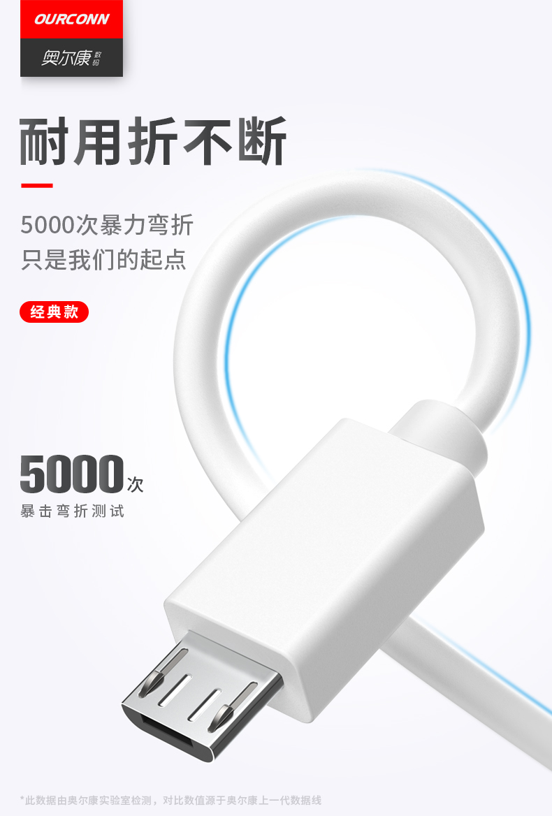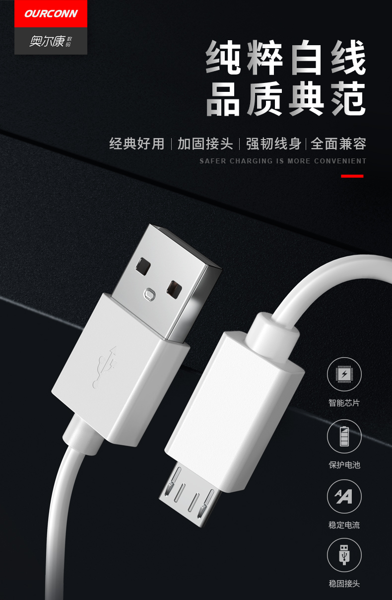 【奥尔康】安卓充电线,加固接头,强韧线身,耐用者折不断。电芯全面升级,智能芯片,具有过压保护功能,安全不伤机。全铜加粗线身,高效快充。奥尔康品质典范!【赠运费险】