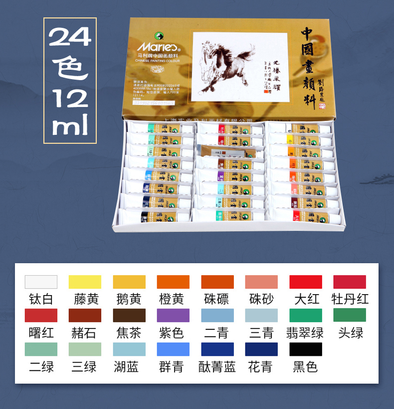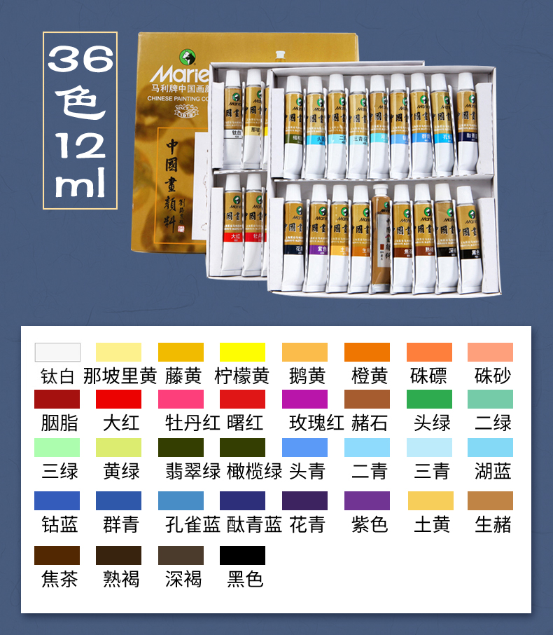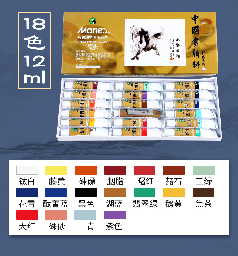 【马利】牌国画颜料,一站式配齐你的所需!你想要的颜色这里都有,色彩表现逼真!你作出你想要的画,必不可缺少这支毛笔!拍小颜料都是送6支中性笔哦!快来购买~