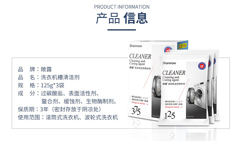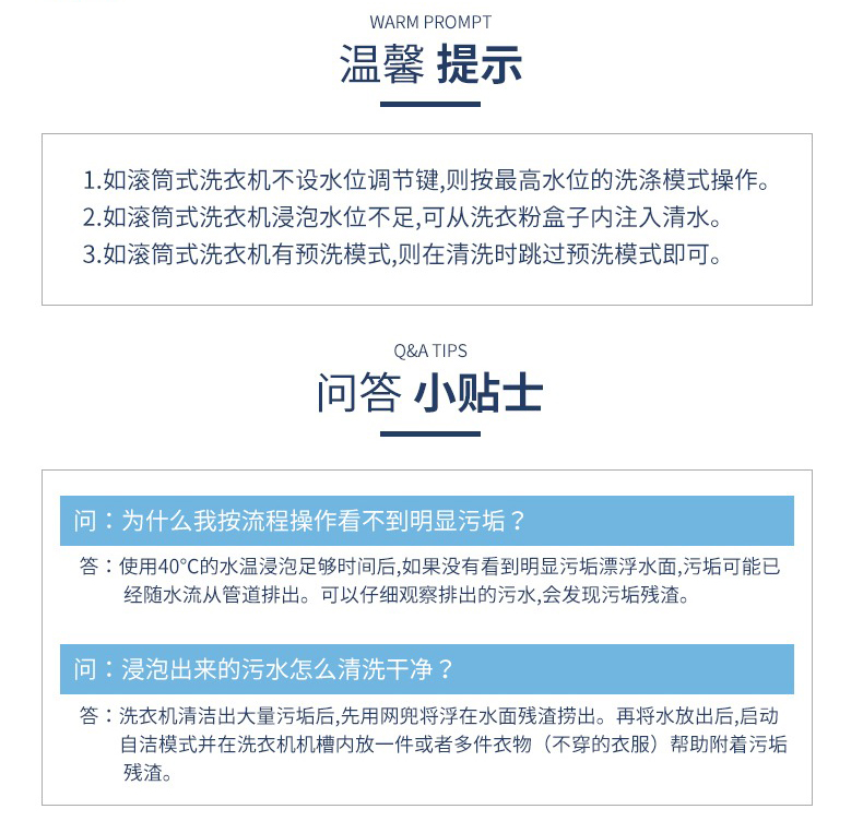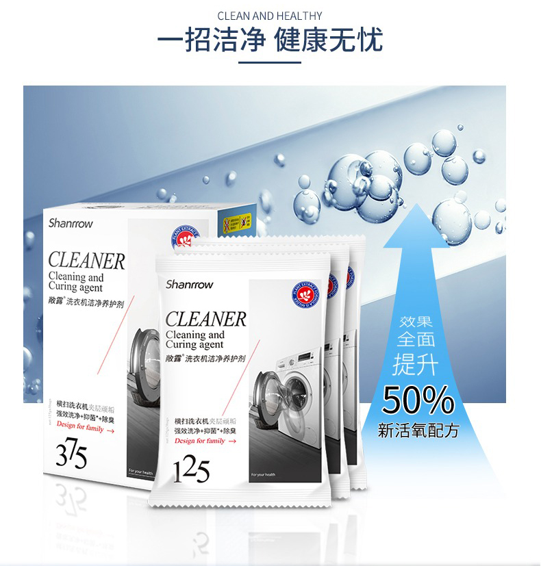 天然生物酵素,颗粒均匀,活性氧强力去污杀菌,清新去异味,防止衣物2次污染,不腐蚀金属,养护机槽