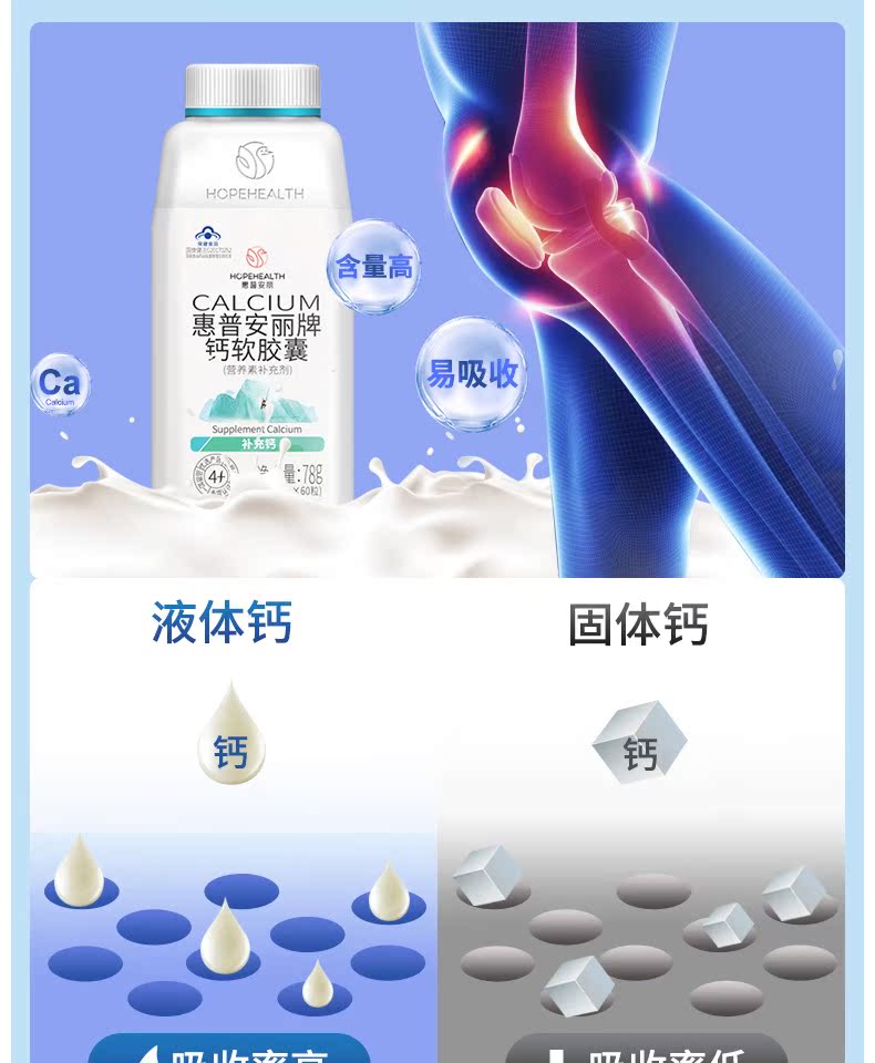 【超值60粒装】采用超细钙微粒生产工艺打造出更适合中国人身体吸收的钙,给关心的人科学补钙,我选择惠普安丽钙软胶囊!【赠运费险】