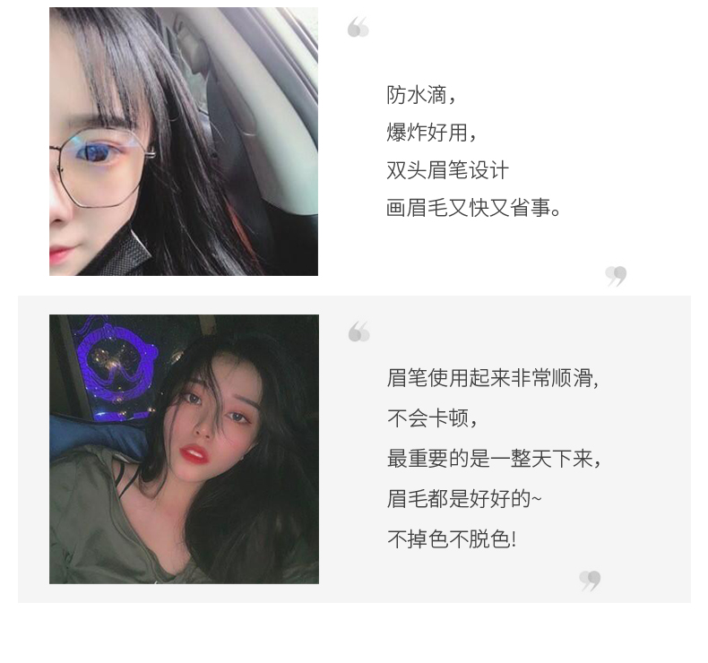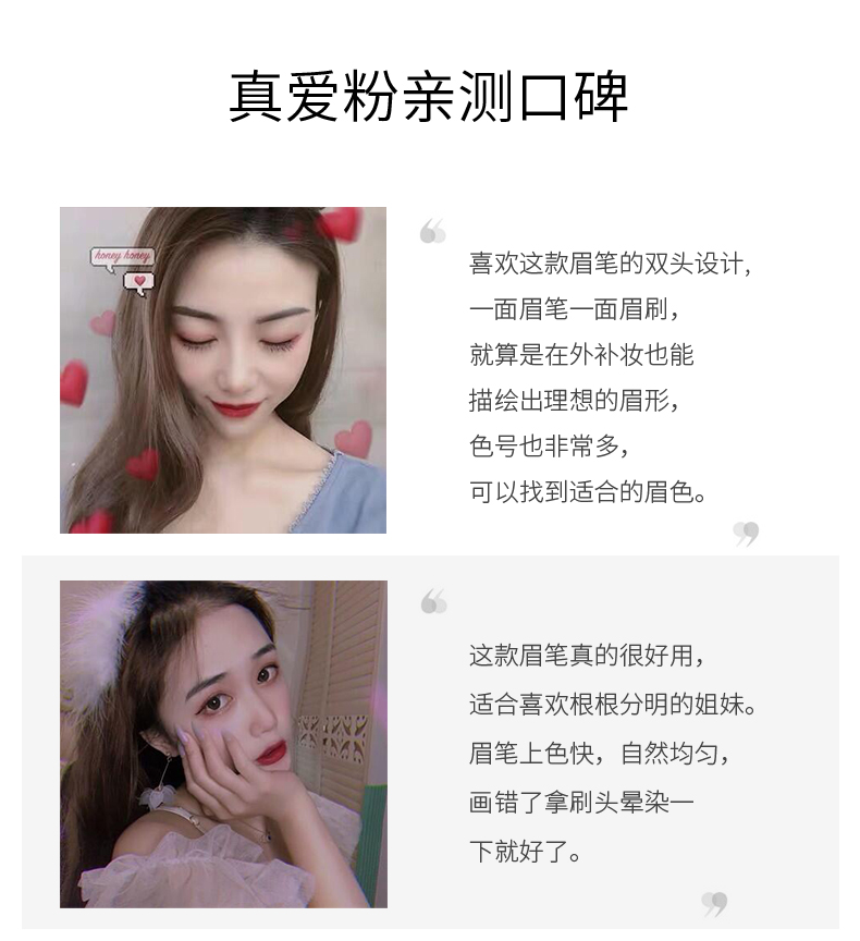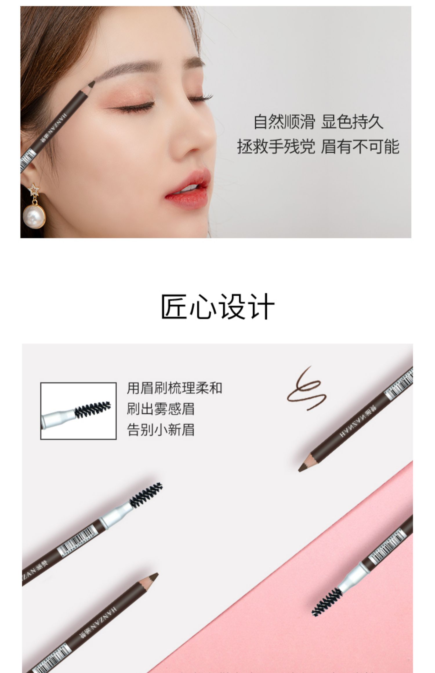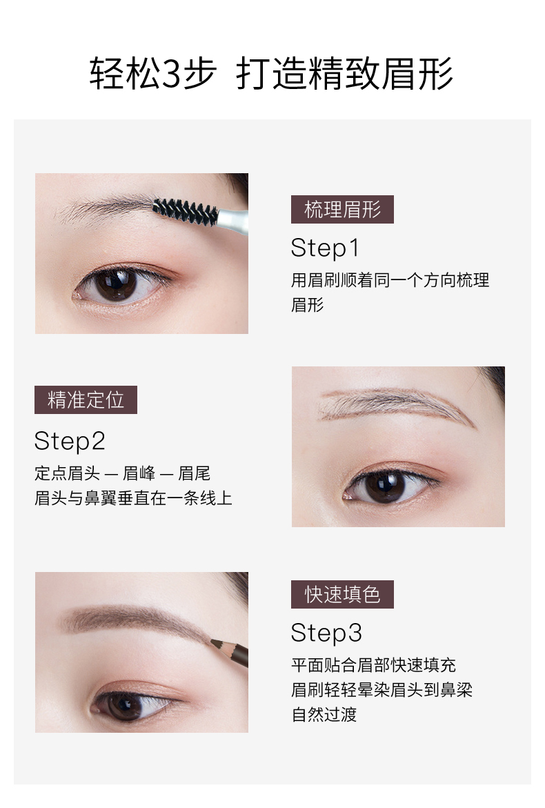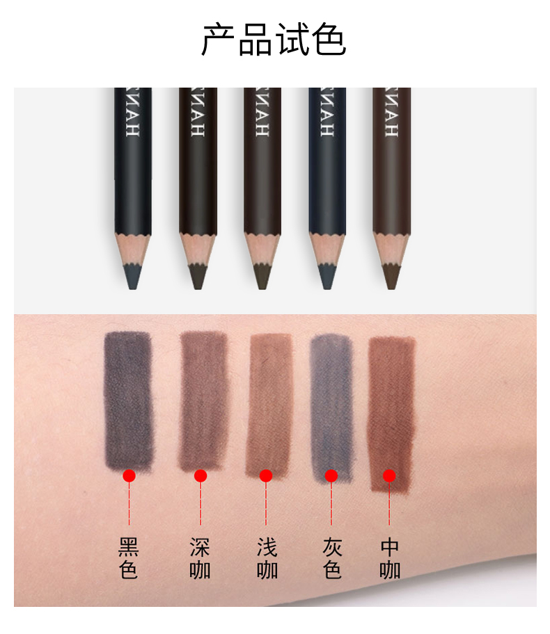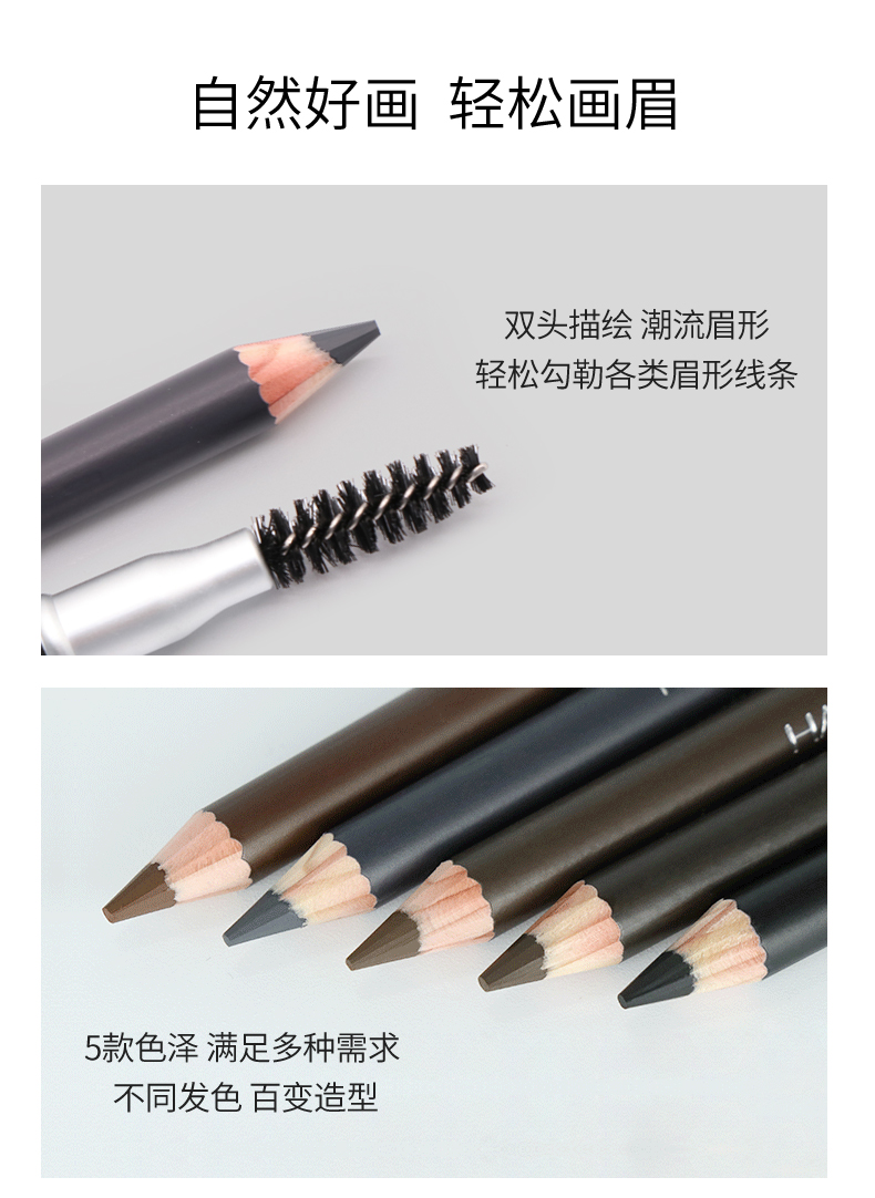 精致美眉的爱用好物,双头木杆设计,轻松勾勒各类眉形线条,5种色泽满足多种需求!自然顺滑好上手,显色持久,拯救手残党,眉有不可能!