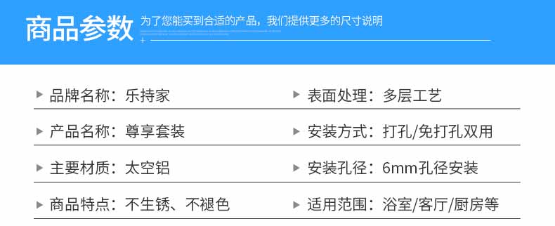 免打孔不伤墙,送胶水+辅助贴,安装简单,太空铝阳极氧化不生锈,承载能力超强,厨房浴室房间都可以挂东西,非常好用,赶快抢~