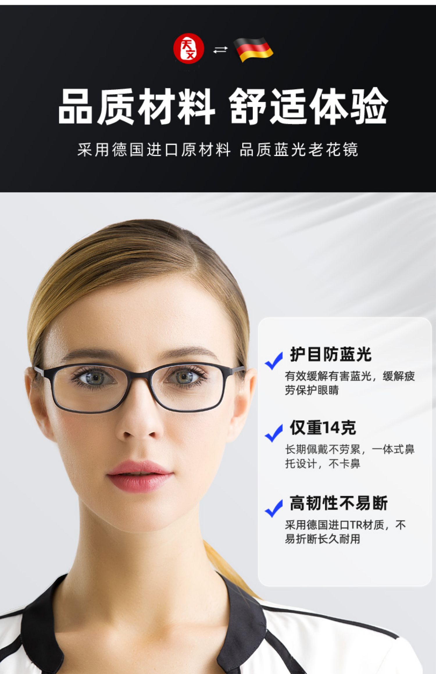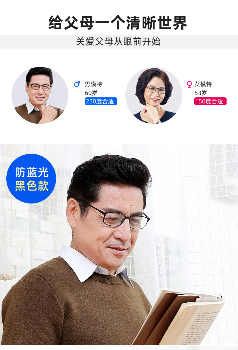 【超高评价热销130万副】超轻TR材质折不断,树脂全框,随意折叠,超轻便捷,无负重感,德国进口镜片防刮防蓝光,超清智能渐进式老花镜,佩戴舒适不压迫,适合多种脸型。关爱父母,孝敬长辈!【赠运费险】