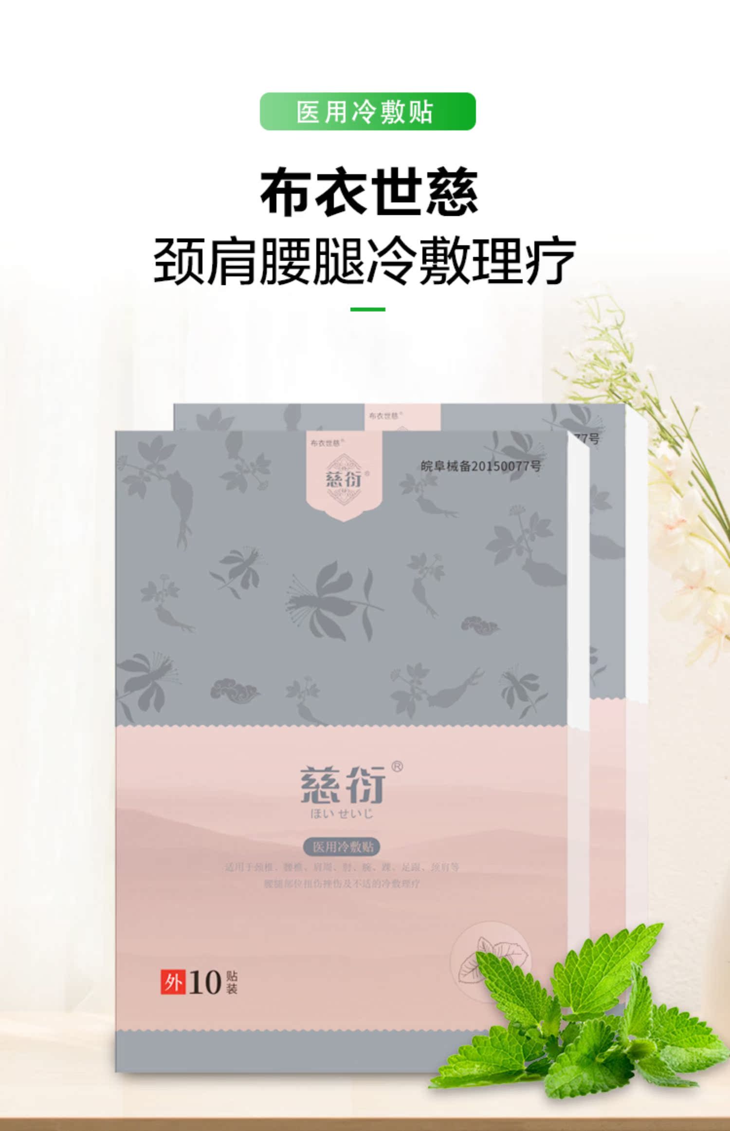 布衣世慈冷敷贴,膏药销量TOP产品,长辈都喜爱的口碑产品,对腰腿疼痛、关节炎、腱鞘炎,滑膜炎等炎症类疼痛、颈椎病,风湿类风湿性病痛等均有明显效果!