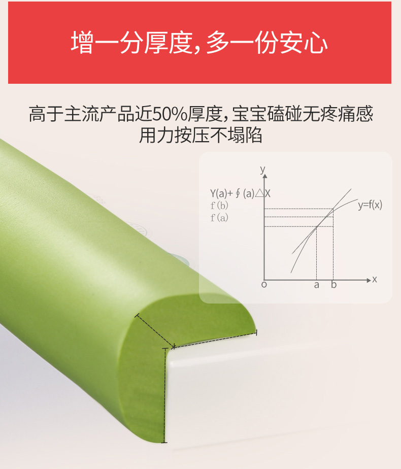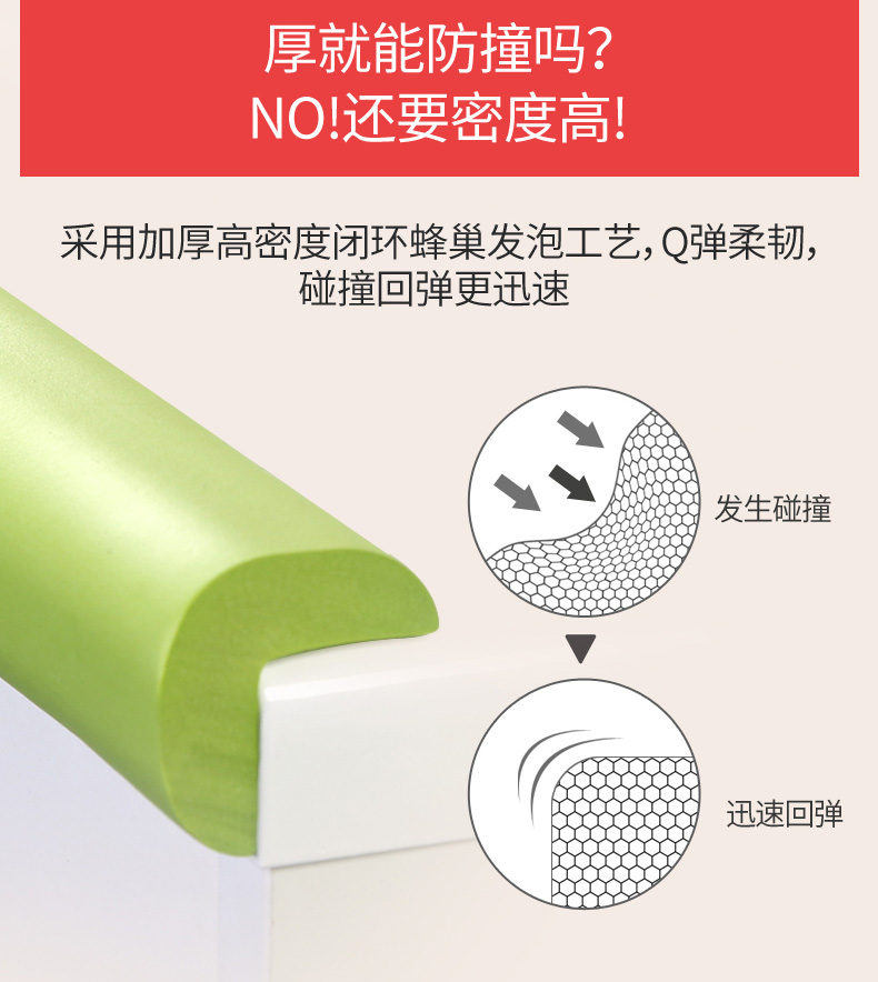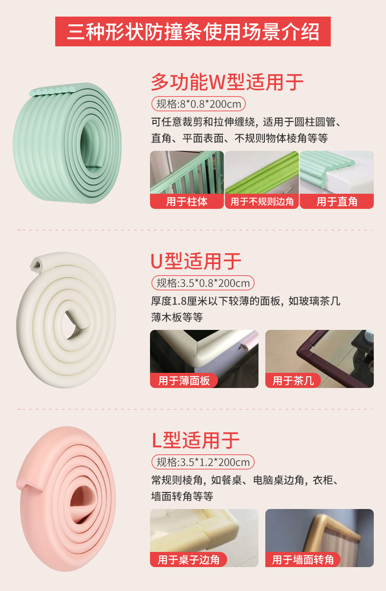【免胶款】通过SGS认证,环保材质,高弹柔软,自由裁剪,油渍水渍一擦即净!适用于家里的桌子边,柜子边,墙边都是隐形的危险,宝妈可以放心让宝宝到处爬了,呵护宝宝快乐成