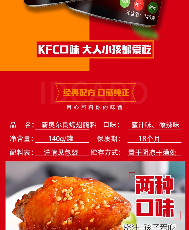 【拍1发2】新奥尔良烤翅腌料,粉料细腻,KFC风味,在家就能做出美味的烤鸡翅,味道特别香,鲜美香口,爽爆味蕾!