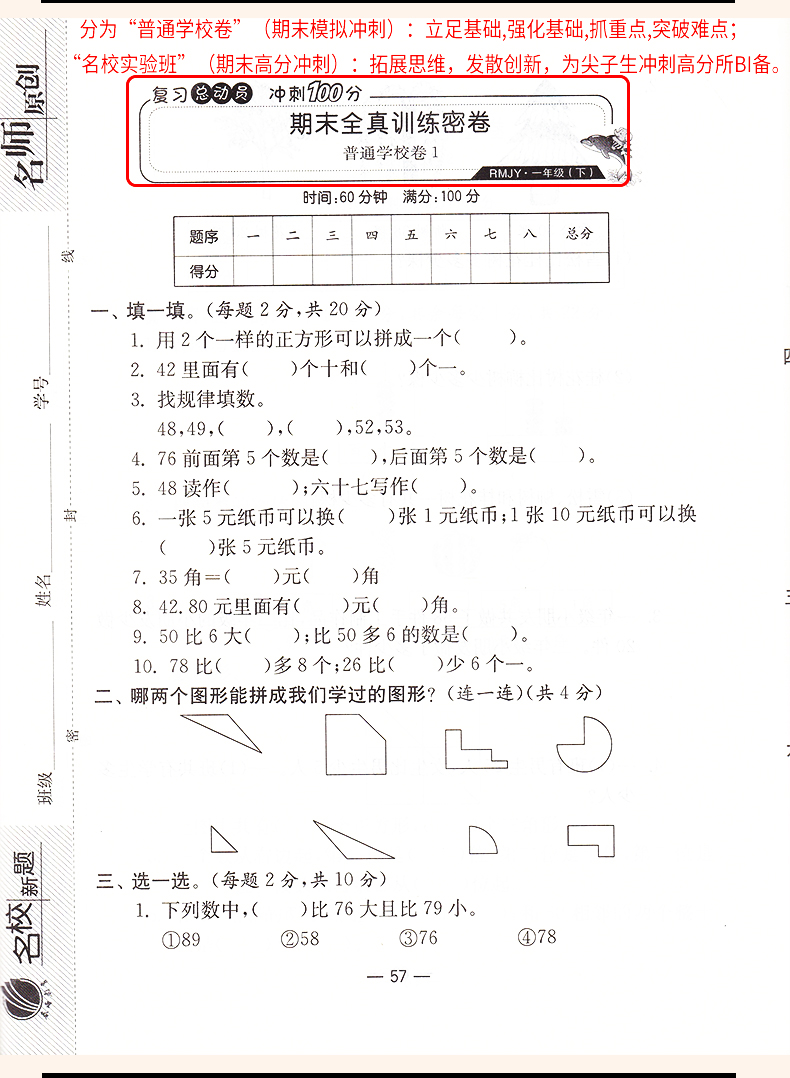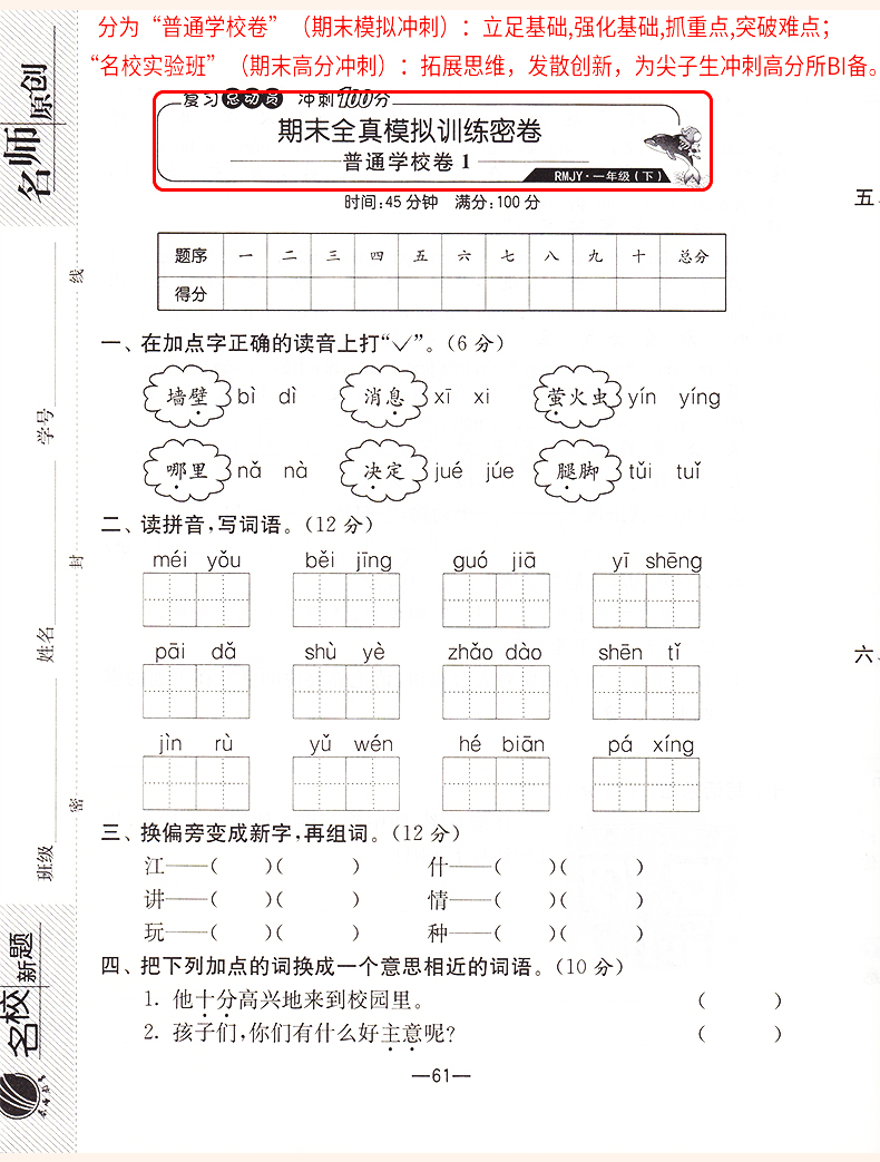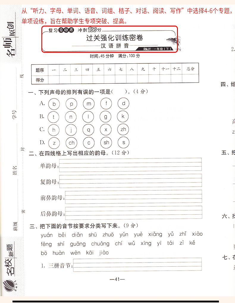 【开学啦】让孩子赢在起跑线上,一年级期末闯关冲刺100分,过关券+期中券+专项券+期末券,全国课改名校实验班联合打造,让孩子门门考试100分~【送提高班2本】