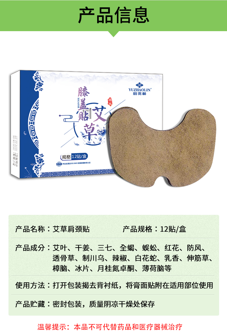 【4.9高评,药监局认证】俞兆林艾草温灸热敷贴12贴,寒气入侵!膝盖疼,肩颈酸痛等?快贴艾叶膝盖贴!天然原材料护理!