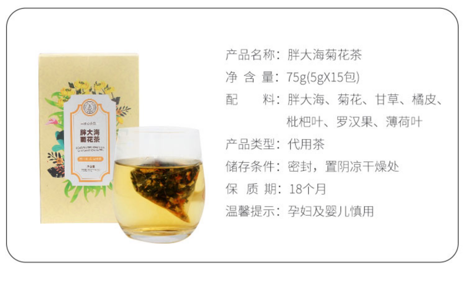 【15包独立小包装,75g!】喉咙不适,说话难受,喝点胖大海菊花金银花茶,精心搭配多种天然植物,无任何添加,清热去火,喝完舒服多了!【赠运费险】
