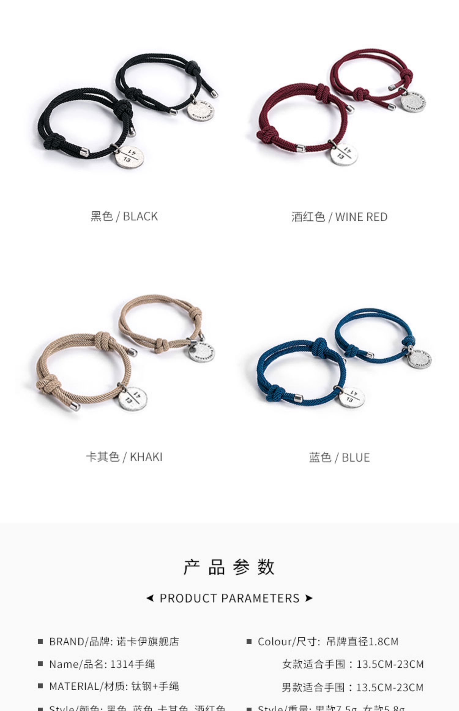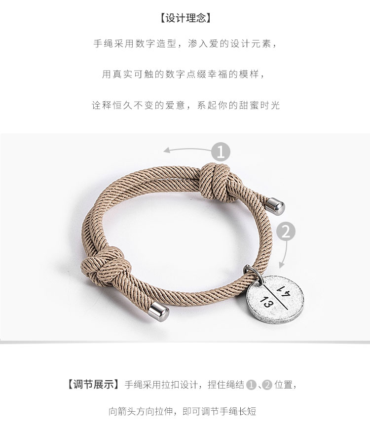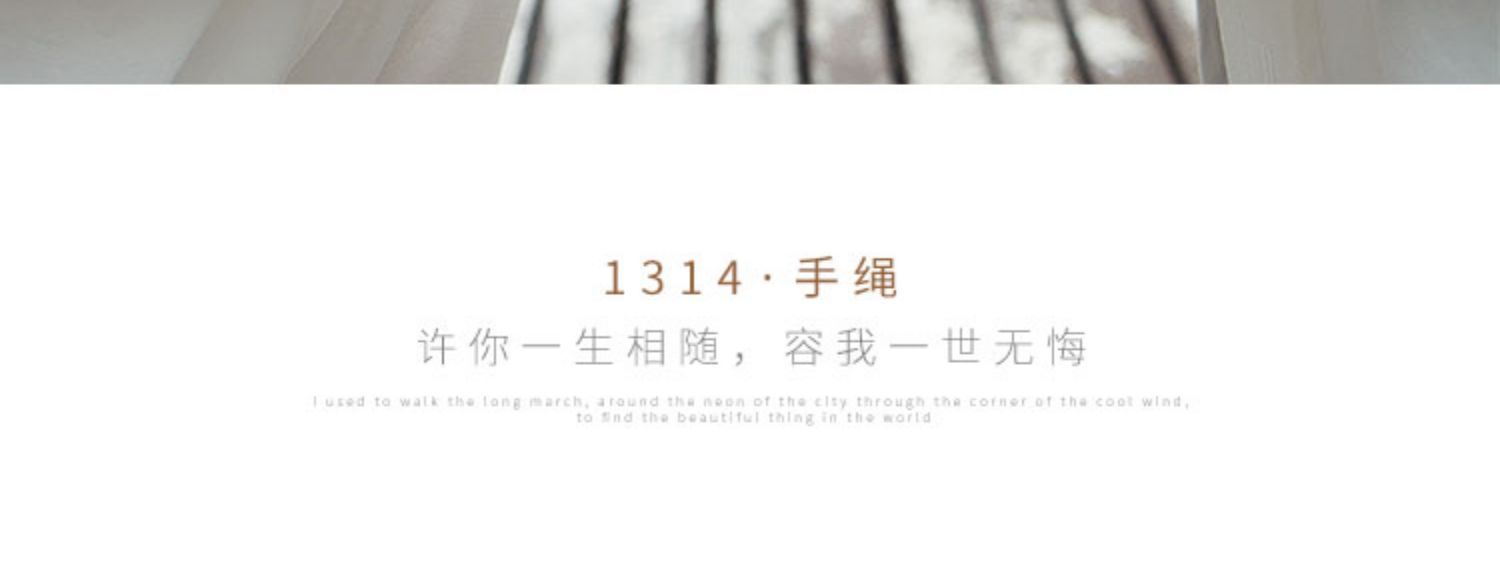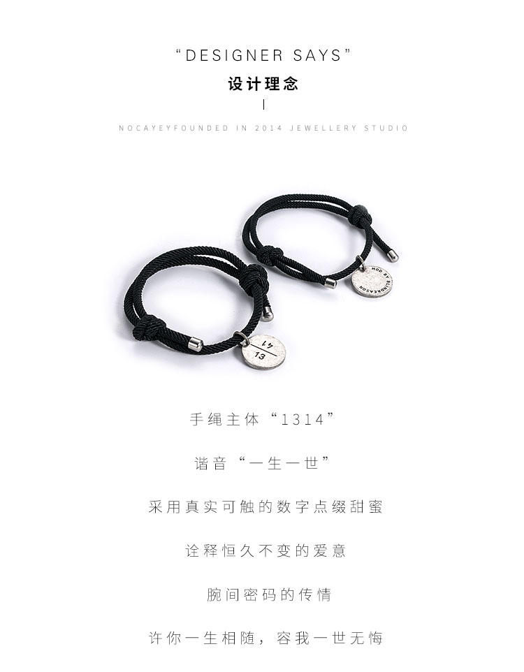 手绳主题“1314”,谐音“一生一世”,采用真实可触的数字点缀甜蜜,诠释恒久不变的爱意,腕间密码的传情,许你一生相随容我一生无悔!!(免费刻字)