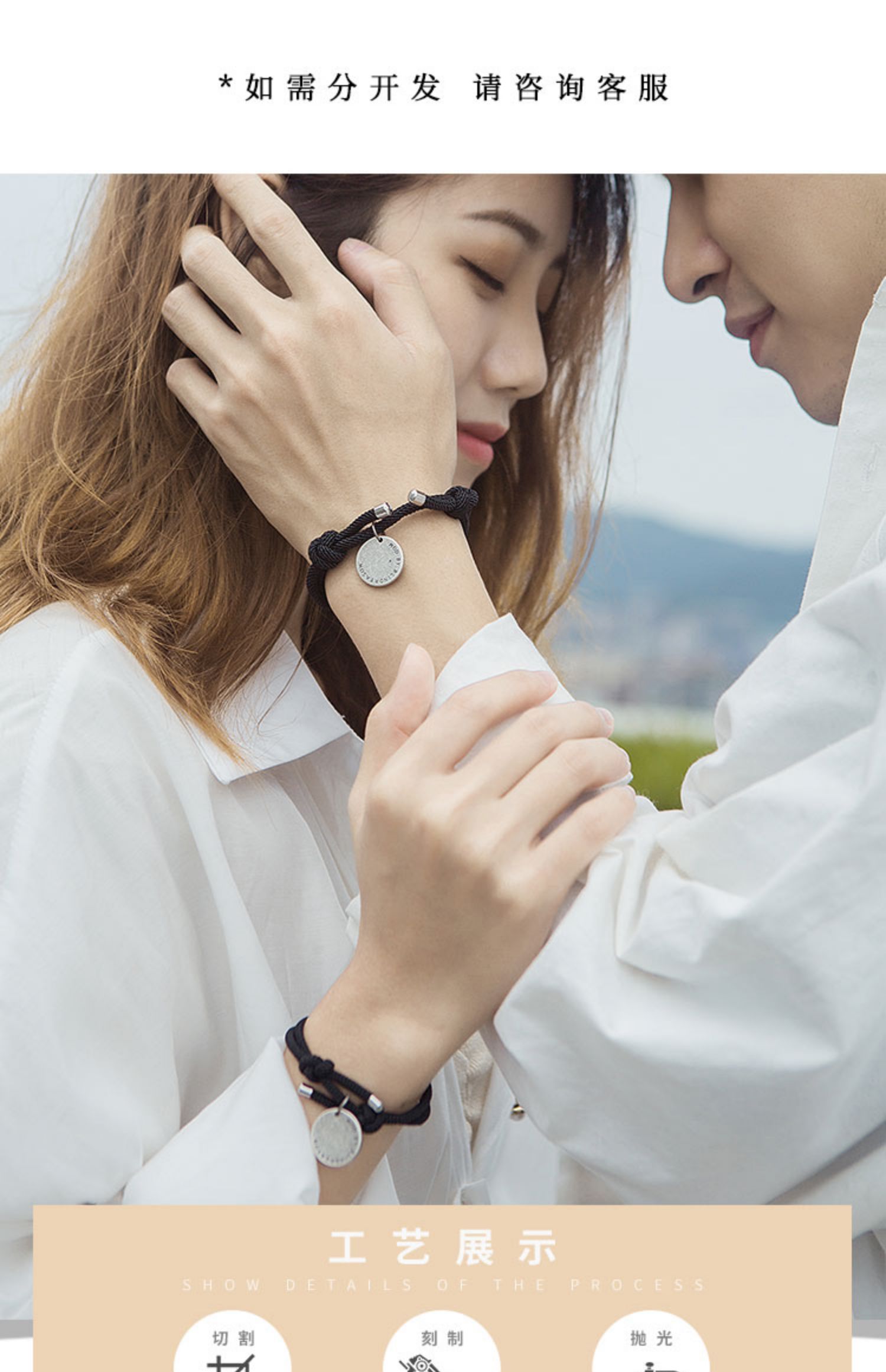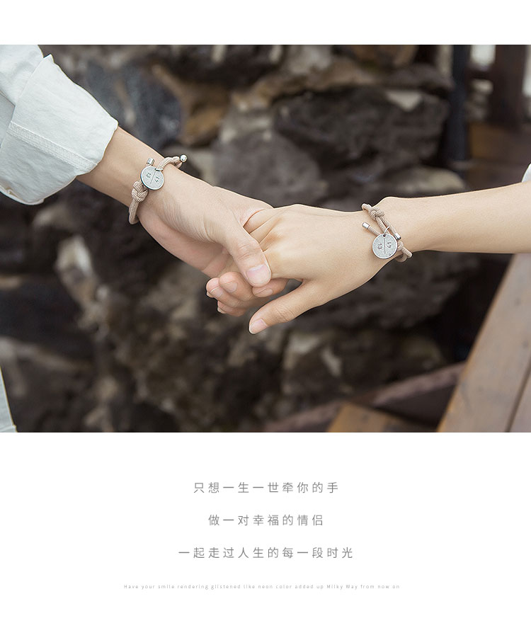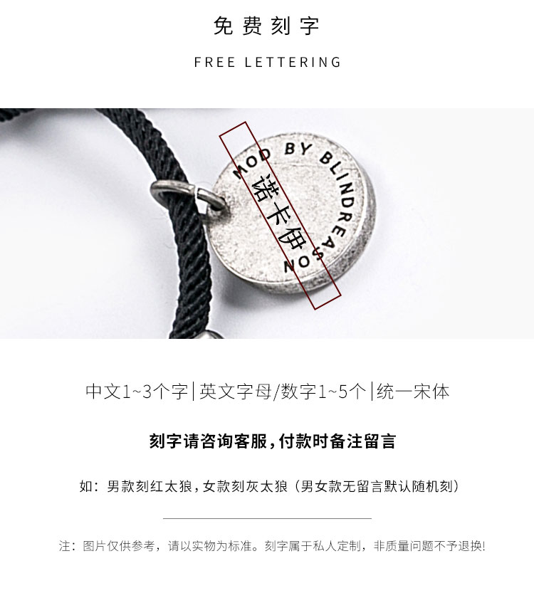 潮牌情侣手绳一对简约学生刻字情侣
