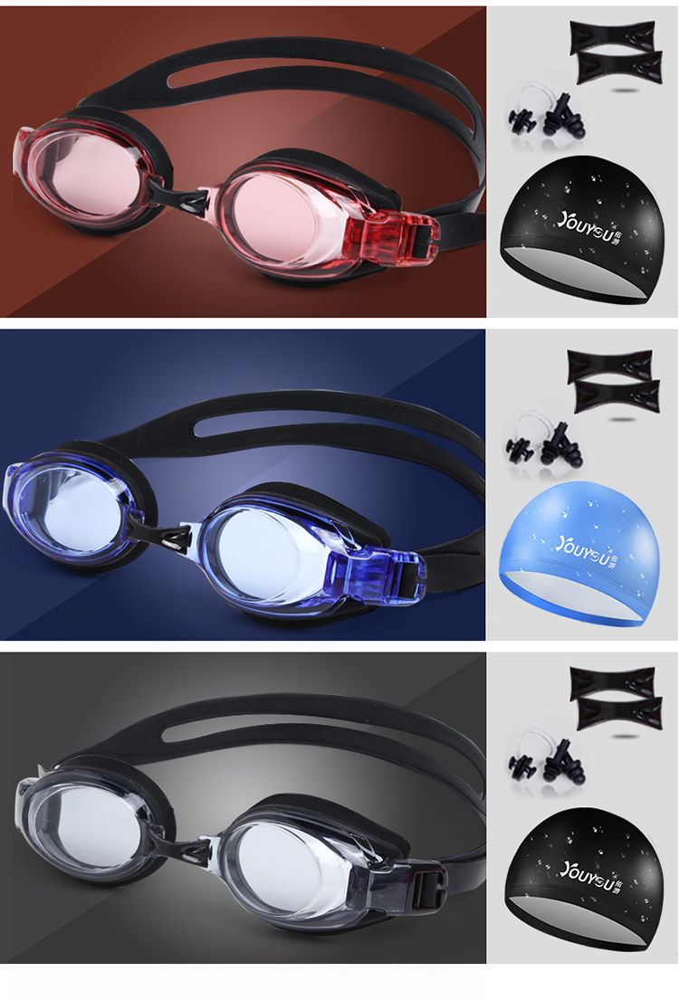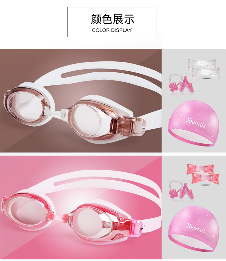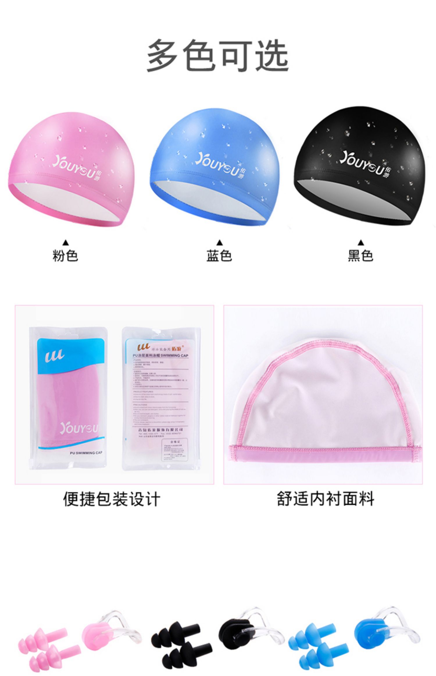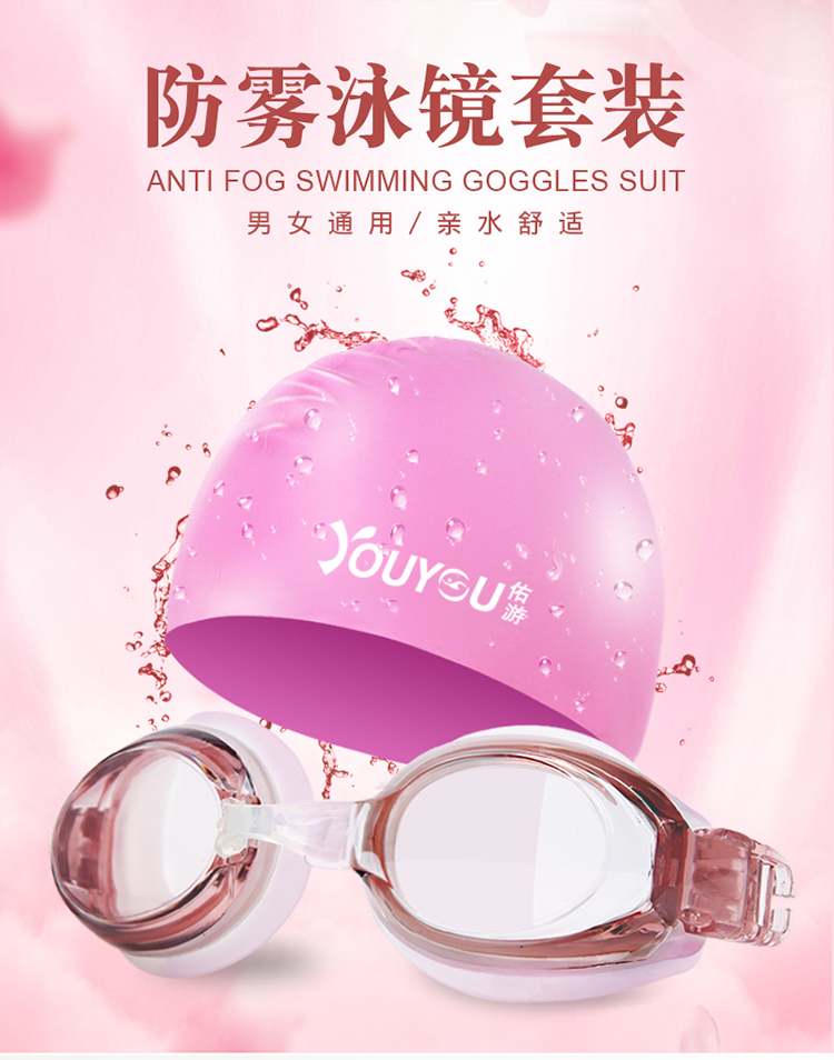 【限时秒杀,卷后5.9元一套,热销百万件】佑游游泳运动套装,防水眼镜,鼻夹,耳塞,泳帽,防水袋,封闭式抗震硅胶圈,可调节镜带扣,一体式连体耳塞镜带,抗压耐磨镜片,硅胶镜带,时尚大气,柔软硅胶。