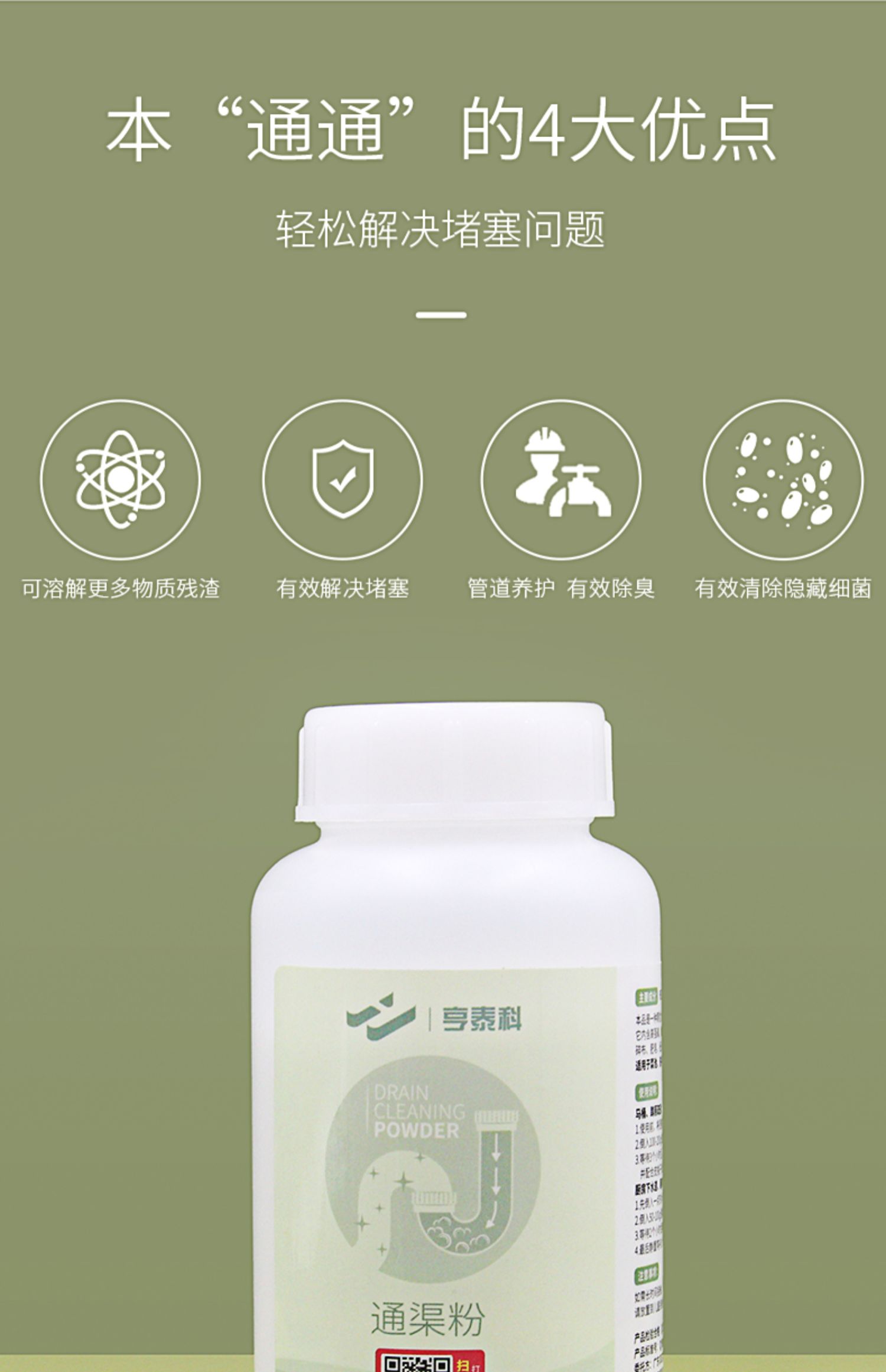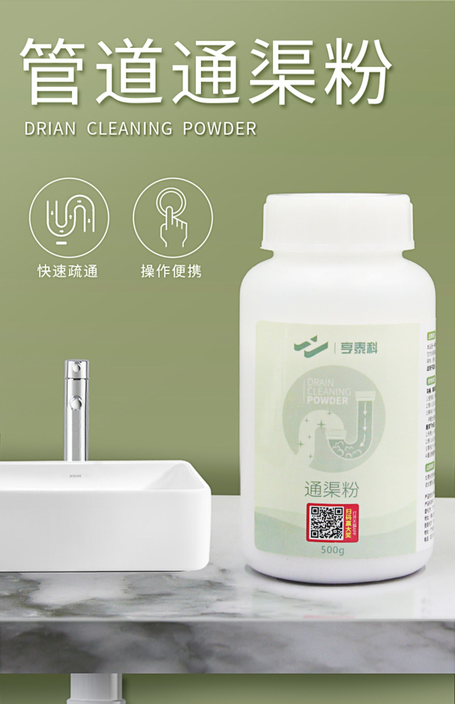 【500g超大容量】下水道神器,强劲疏通力,清洁、除臭、养护,家里必不可少的神器,可溶解多种堵塞物,轻松溶解,再也不用手抠了,操作便捷,预防堵塞提前备货~