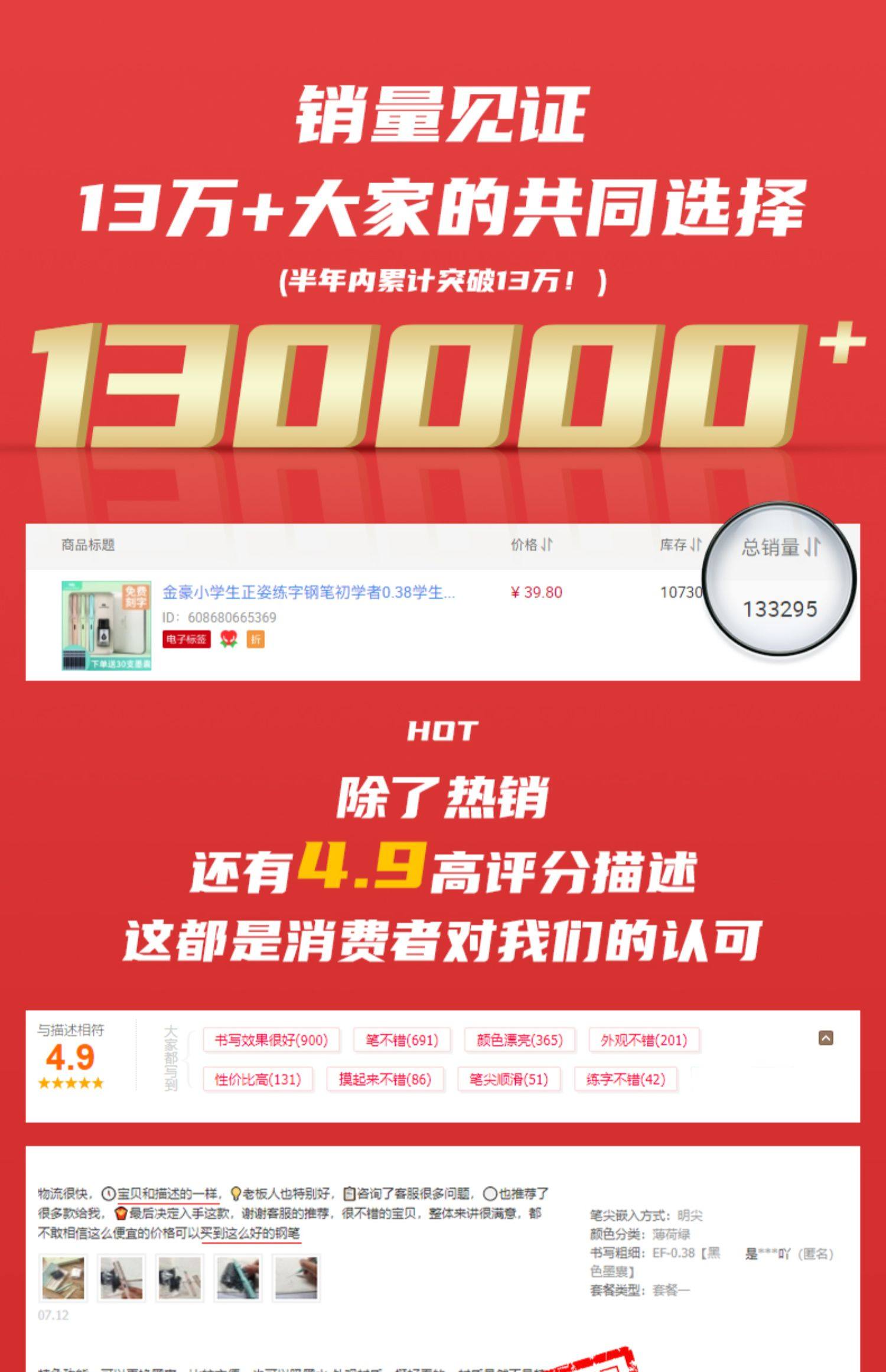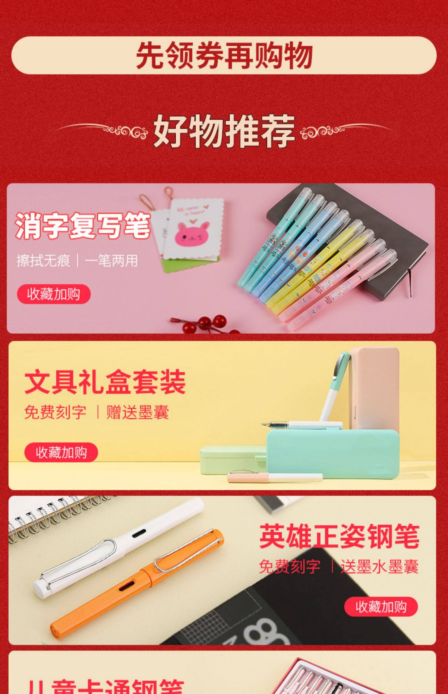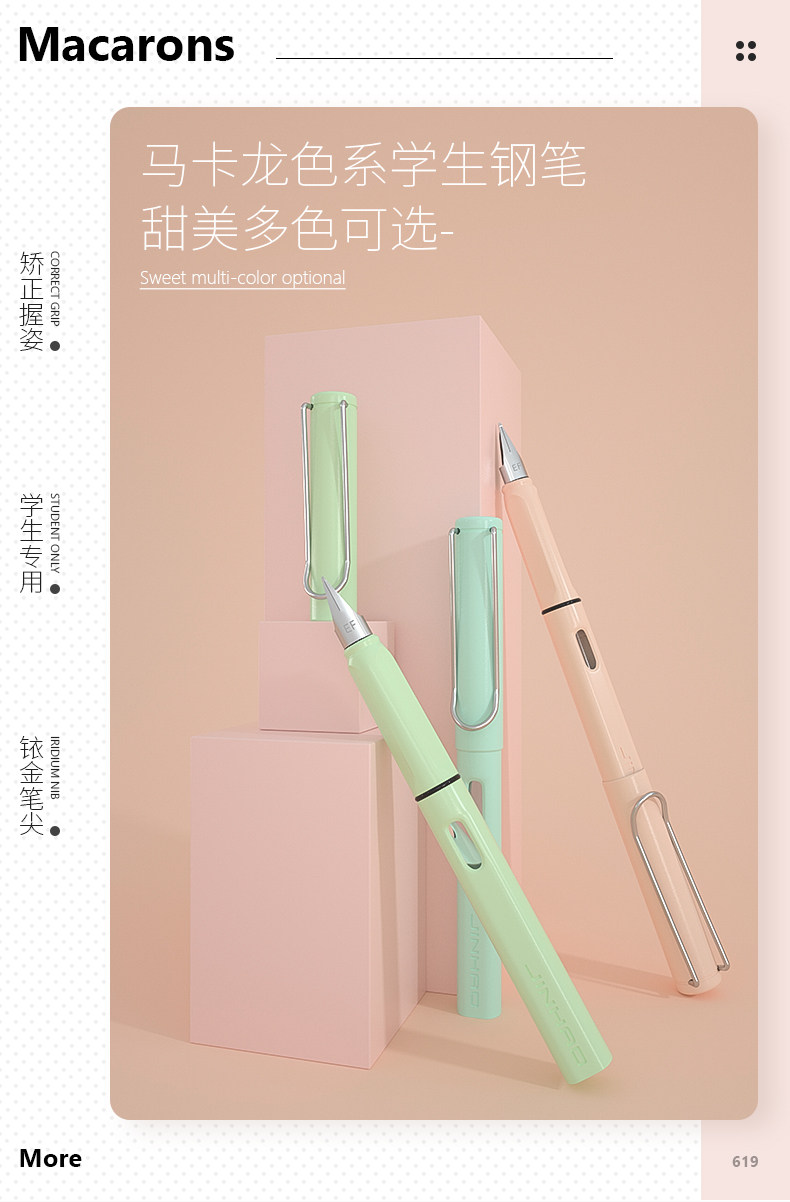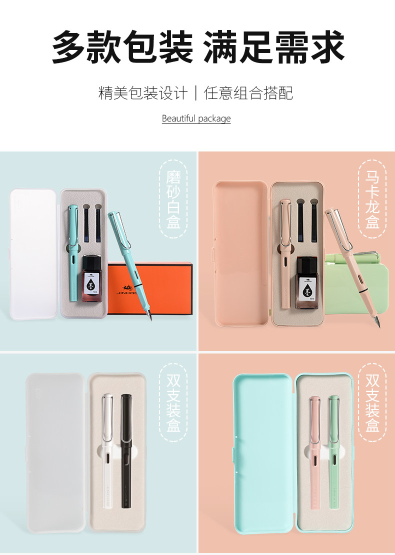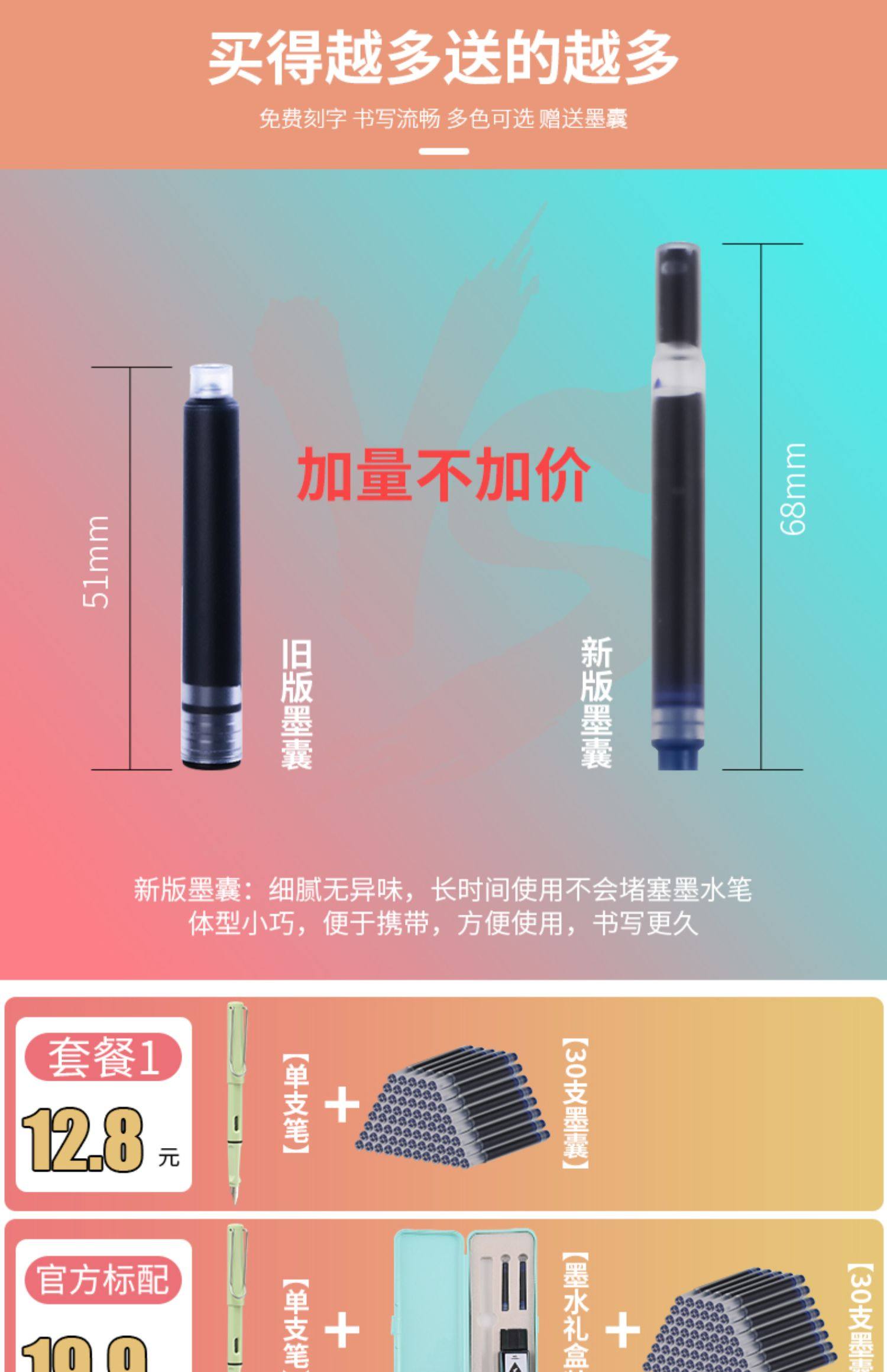 ABS树脂材质笔身,高品质铱金笔尖,减少堵墨断墨现象,符合人体势,镂空可视化墨窗,工学设计,矫正握笔姿高配置钢笔保障长时间书写舒适!
