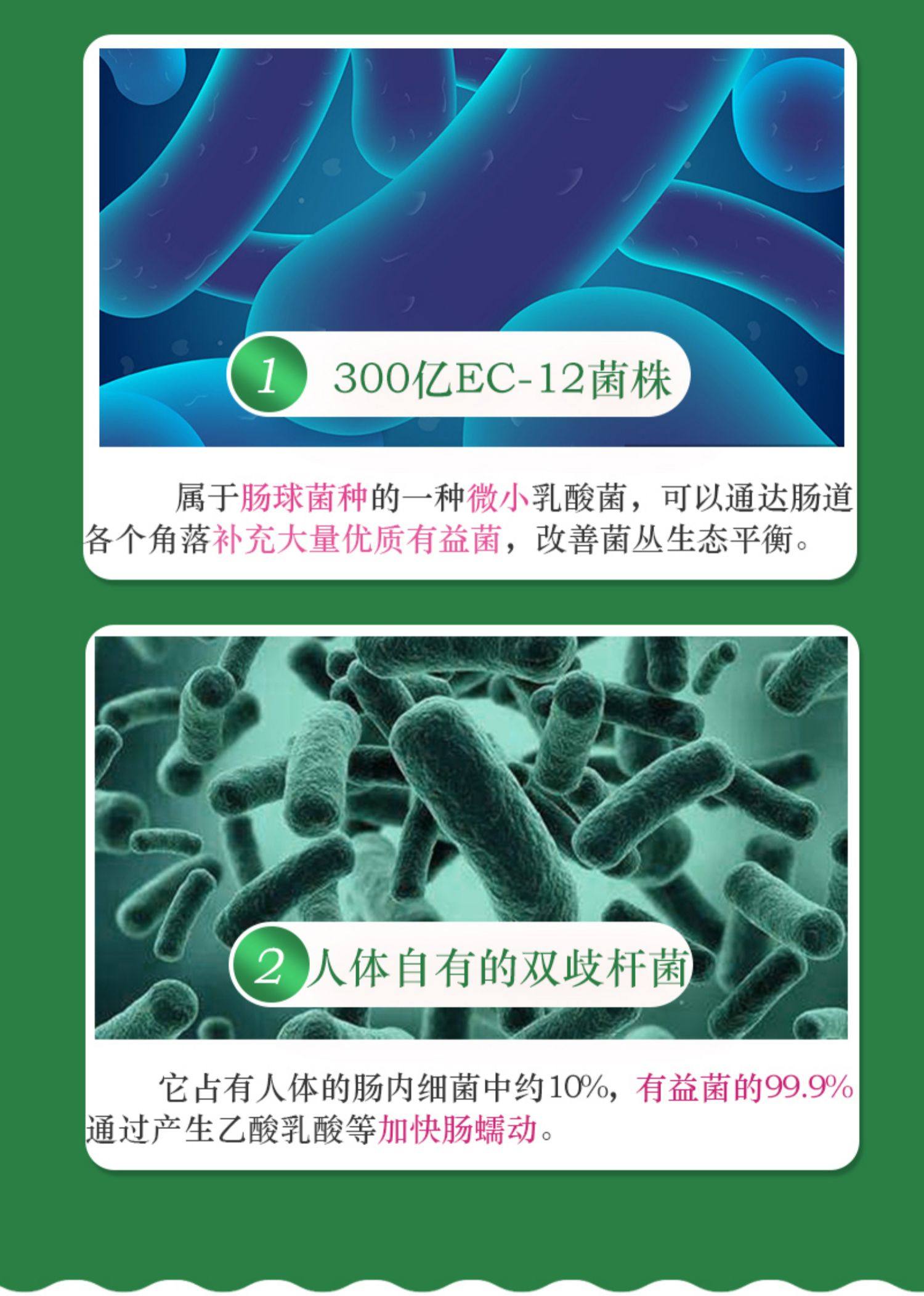 配方升级,4种活性菌株,促进肠道蠕动,精萃浓缩颗粒设计,营养兼顾易食性,免去冲泡麻烦,成分安全,不腹泻。