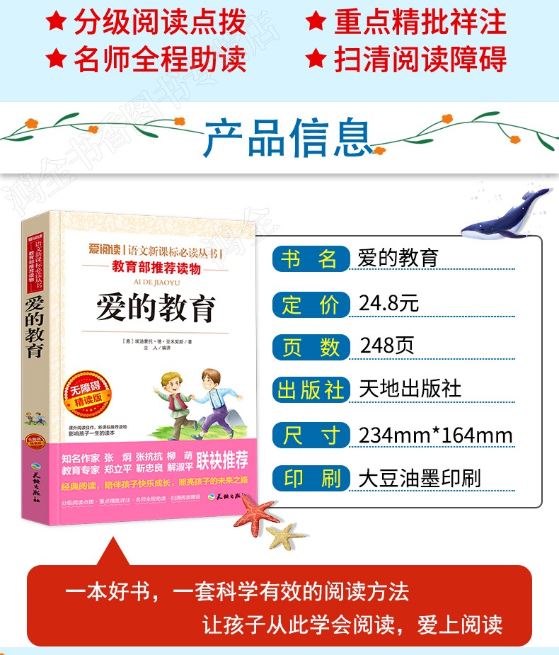 【超值秒杀】世界经典儿童文学名著小说,爱的教育全译本,完整无删减,印刷清晰,并配有名师导读,方便宝宝阅读理解,学校指定中小学生语文新课标必读丛书【赠运费险】