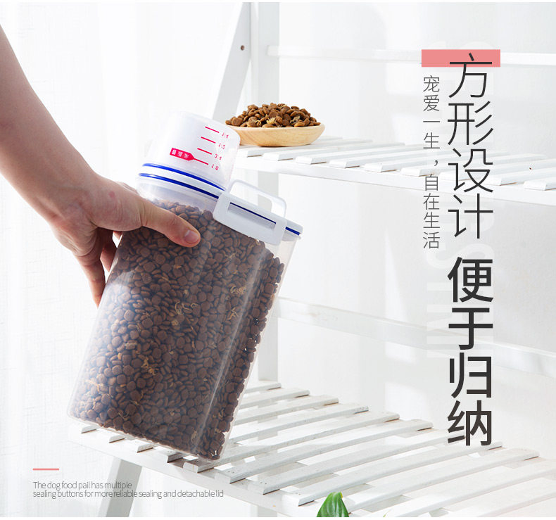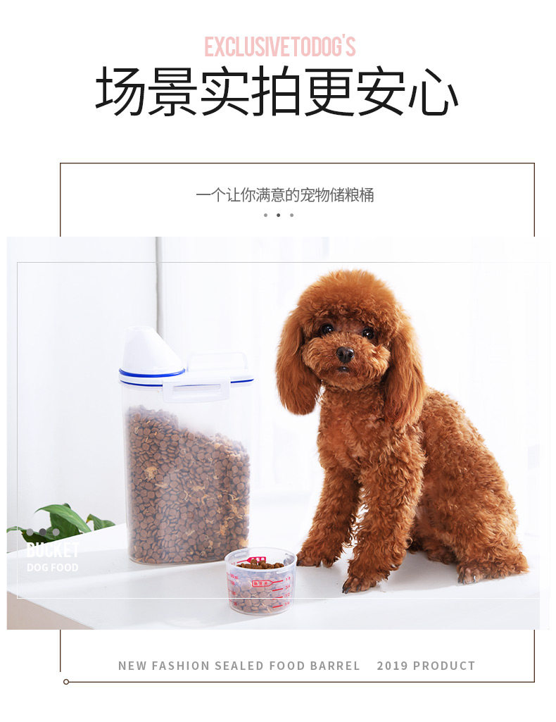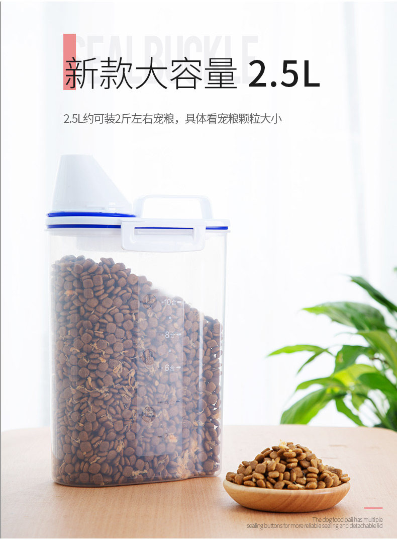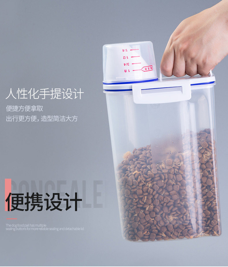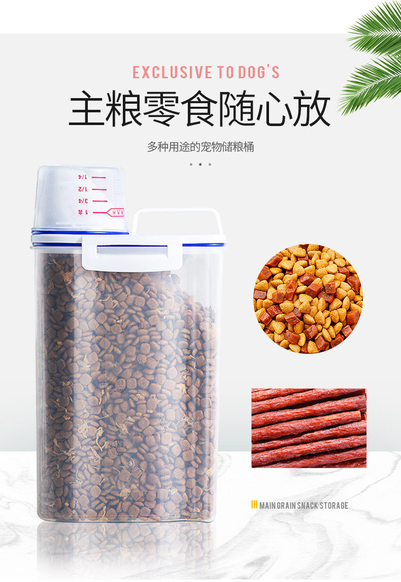 多型号可选,密封防潮,紧密盖装,锁住新鲜,环保材质,双层密封,防尘防虫,耐磨耐用。宠物用品。