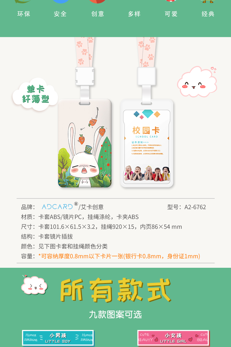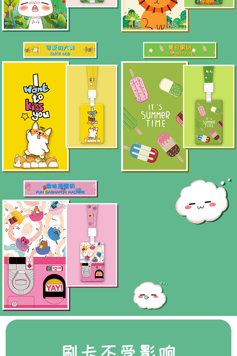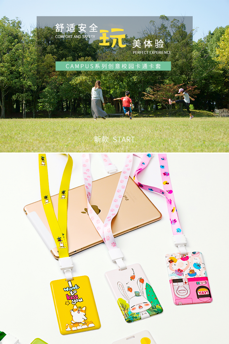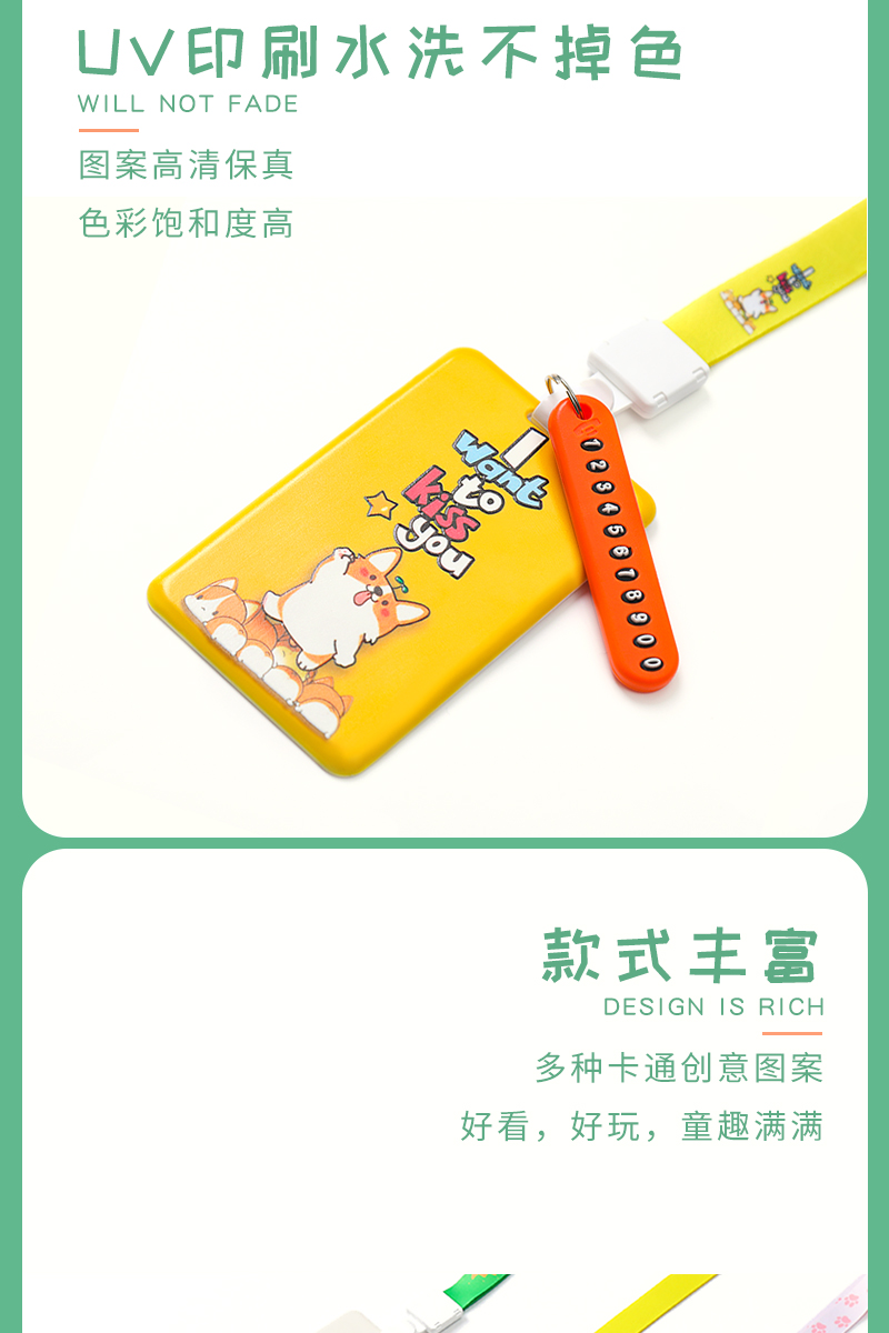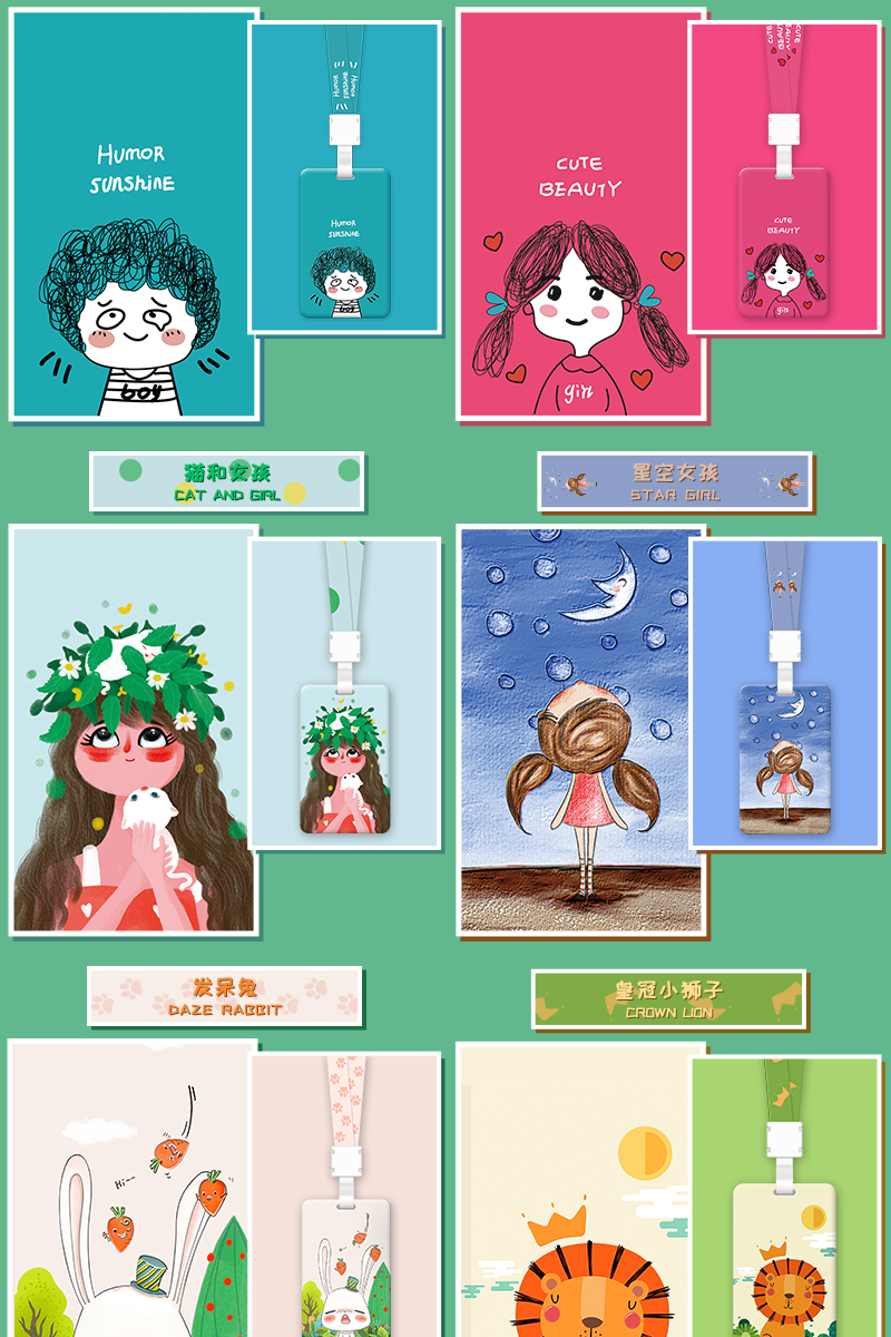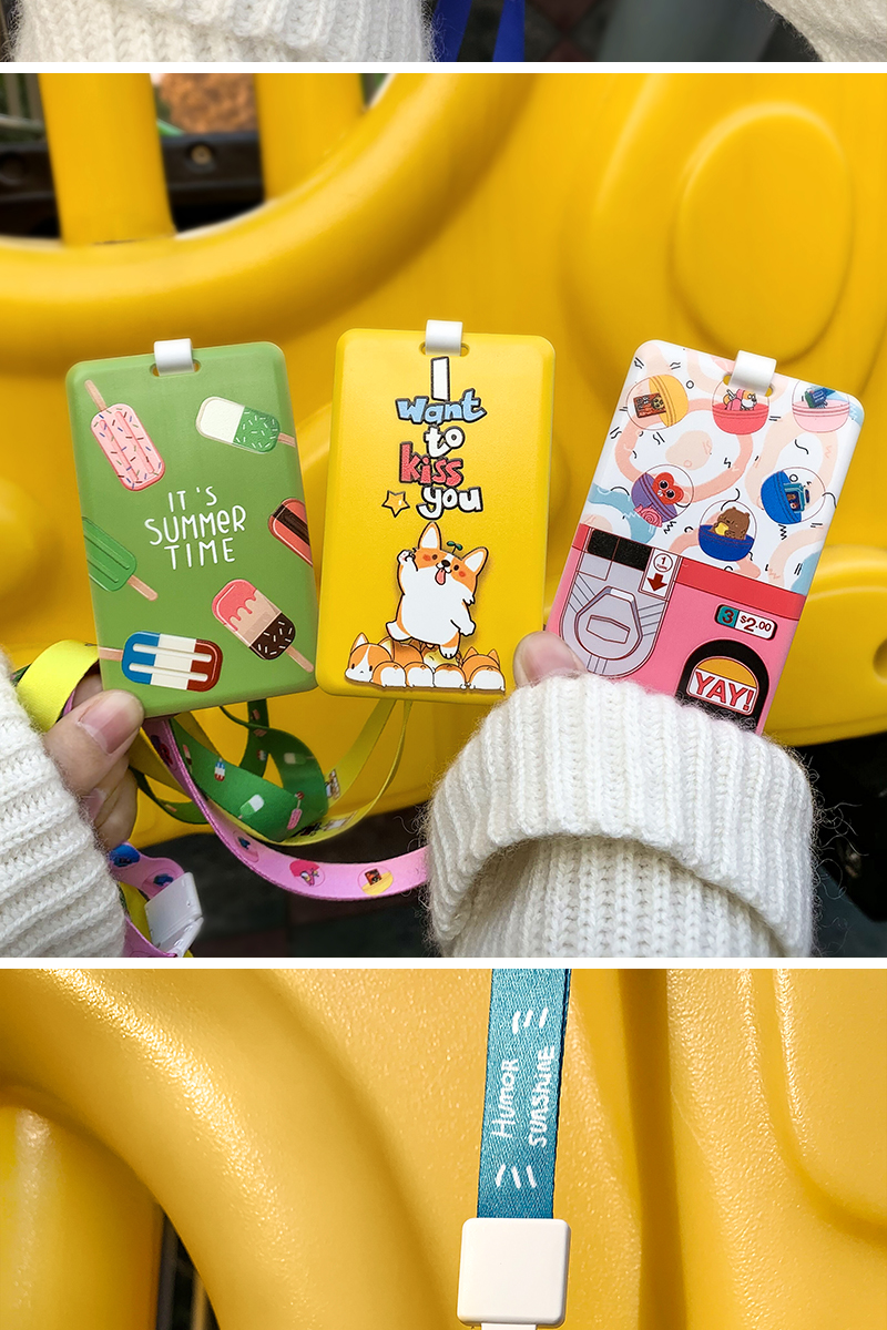 带挂绳胸卡工作牌,定制工牌厂牌工作证,公交门禁胸牌,学生校牌校卡保护套饭卡,透明卡带工卡,卡通外观可爱,配同色卡套