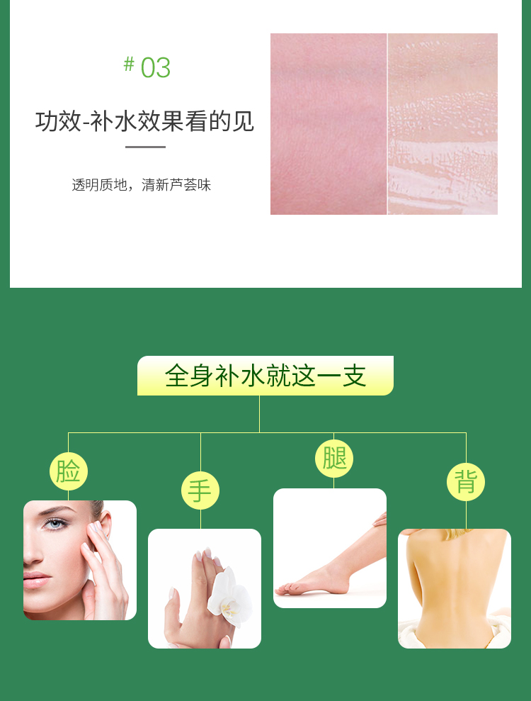 纯植物萃取芦荟胶,多用途的芦荟胶!可以拿来全身护理,当补水面霜,做营养面膜,补水眼膜,消除皱纹,黑眼圈。脸部晒后修护,消炎祛痘!