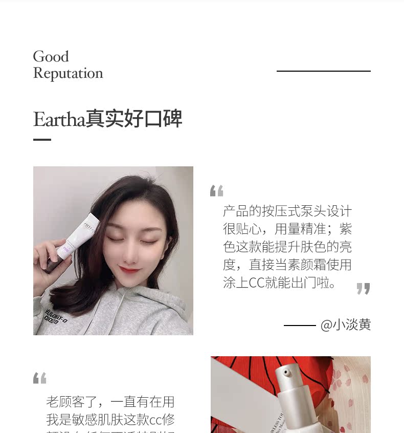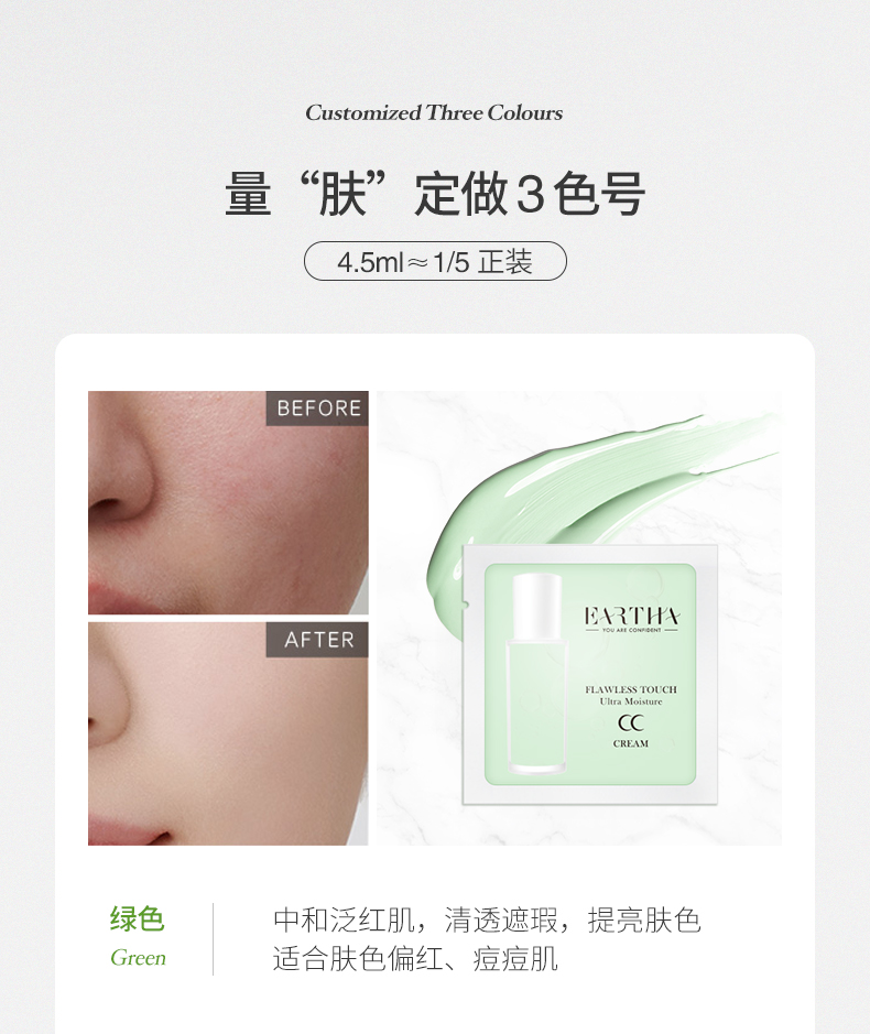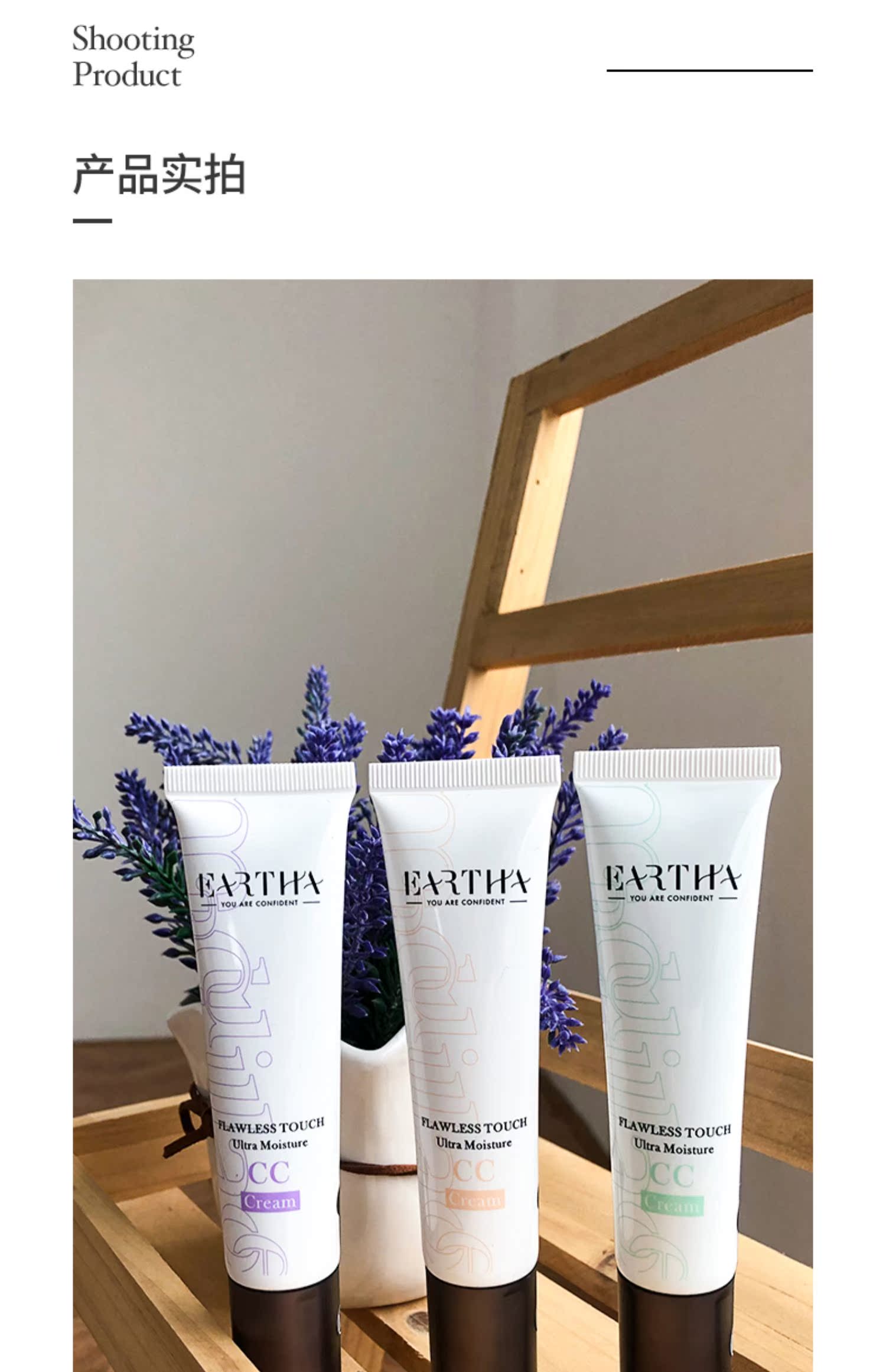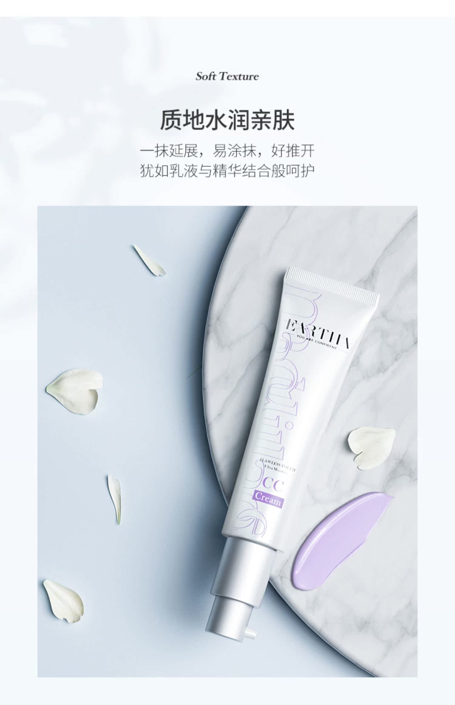 Eartha艾尔思塔CC霜刹那焕亮容颜,源自法国的养肤型彩妆,调出动人色泽,降低油光持久保持清透肌爽,隐匿毛孔添加毛孔缩小成分,采用香橙提取物有效减少细纹,打造光滑肌肤~