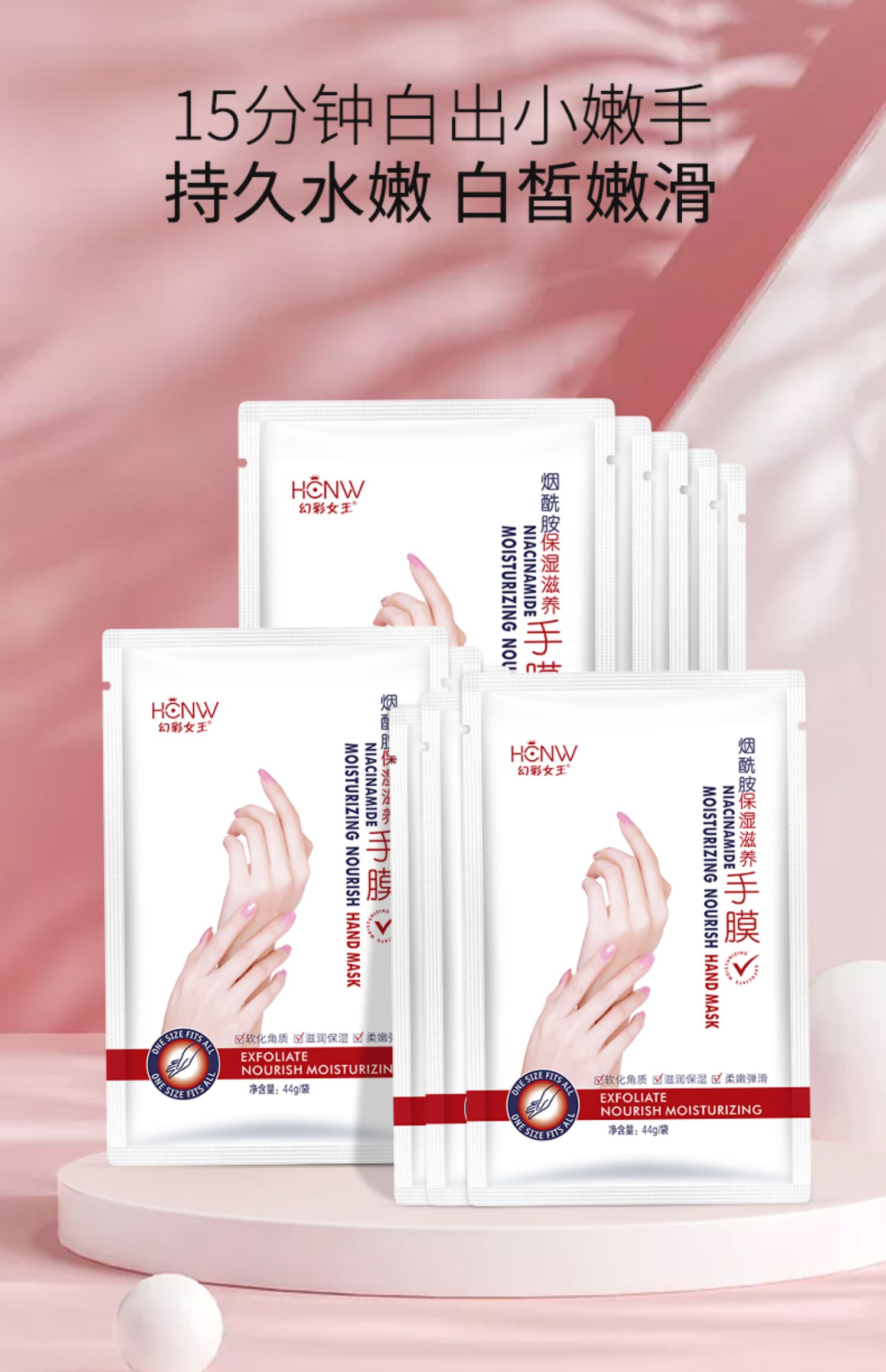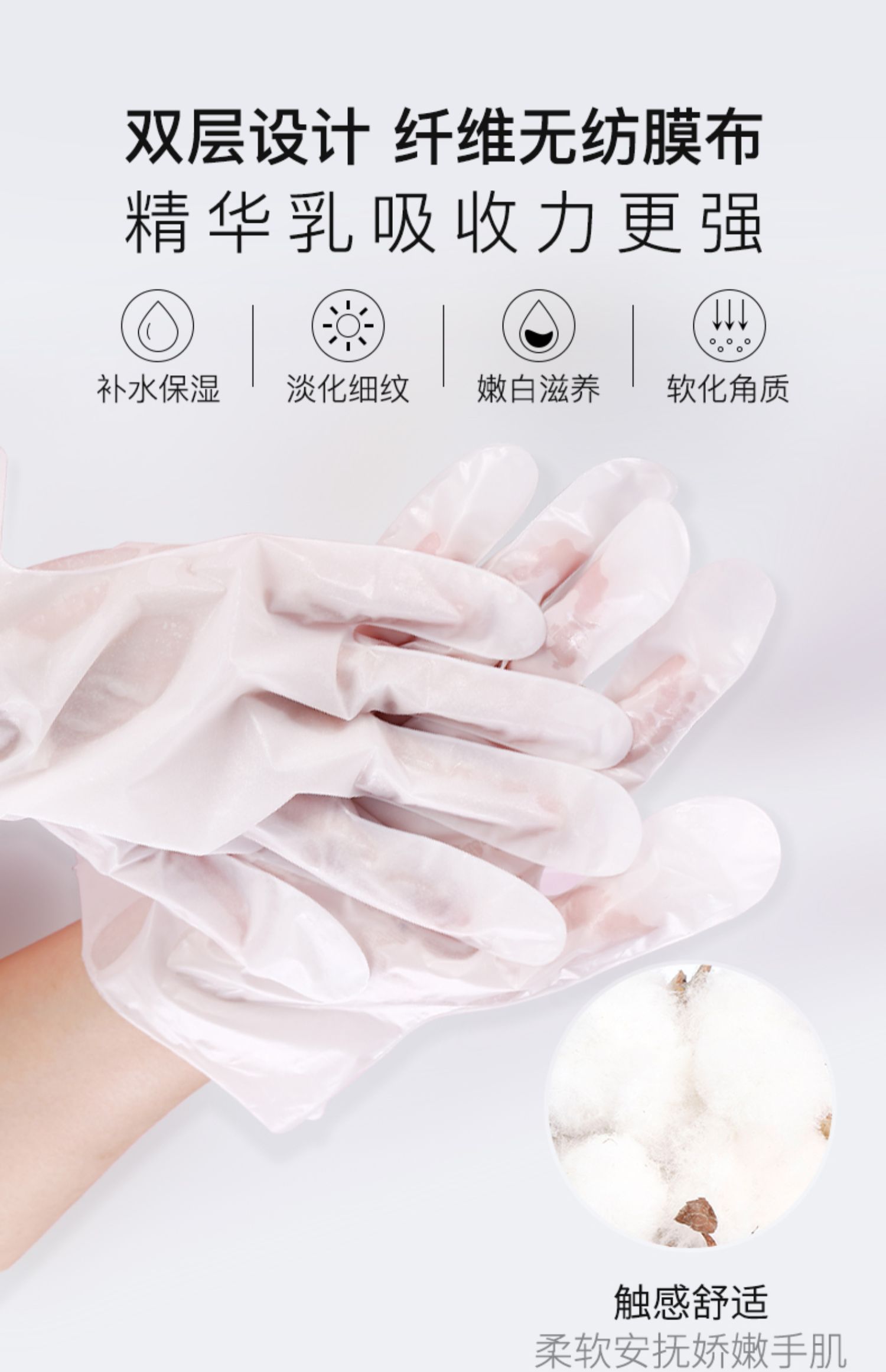 收藏送手霜1支【赠运费险】手是女人的第2张脸!养出小嫩手~烟酰胺嫩白手膜囤起来!2片等于4只~抢9.9!超划算!纤维无纺膜布,精华吸收力强,在家轻松享受15分钟手部spa~赶走干纹,还你水嫩白皙玉手!