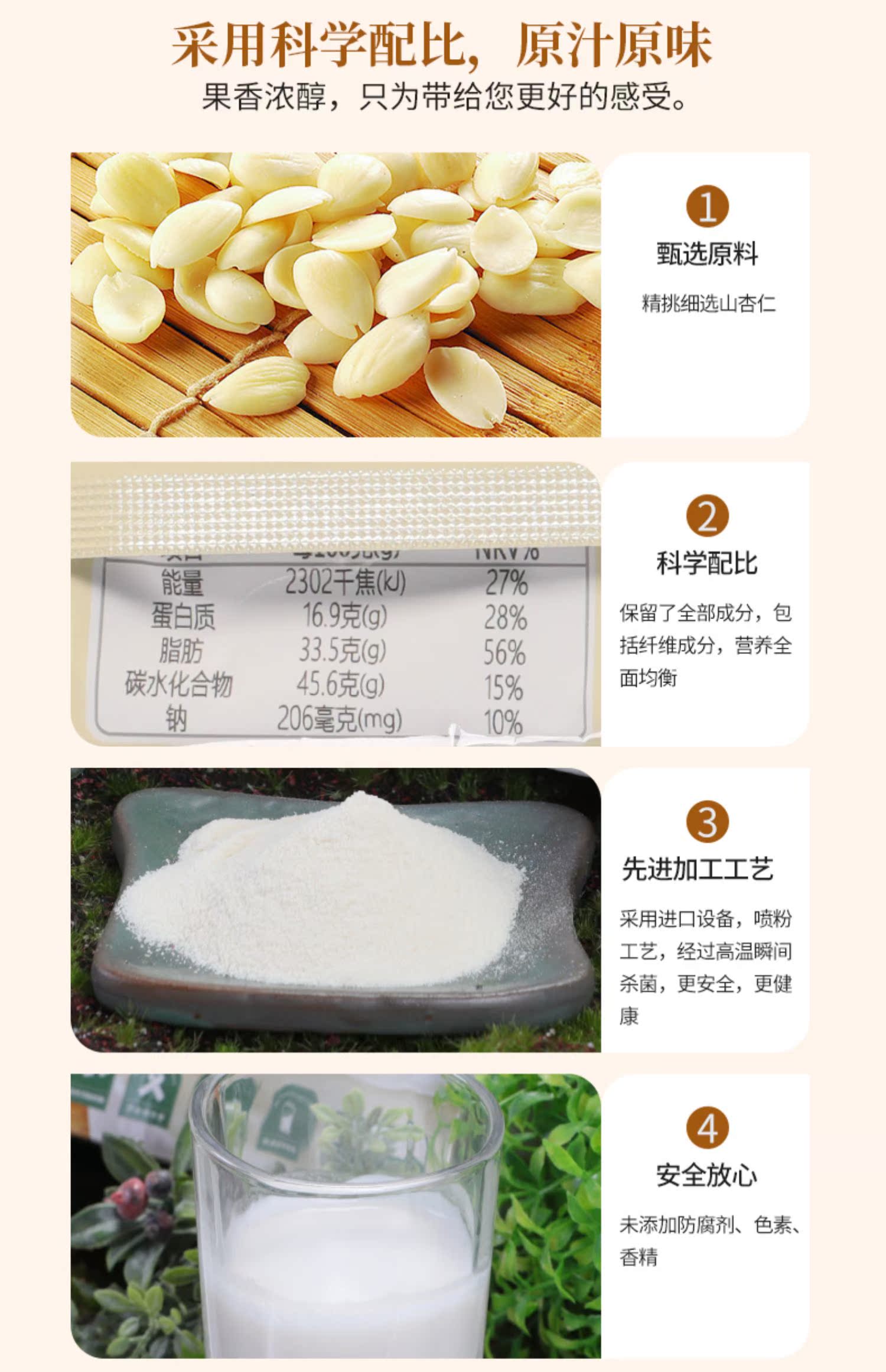 今日推荐:【宝得瑞】纯天然南杏仁粉,低温烘焙技术,非研磨,粉质更细腻,速溶香醇,真正适合喝的杏仁粉,美白、清肺、润肠,真材实料,口感好!健康轻食,营养又美白【限时特惠】