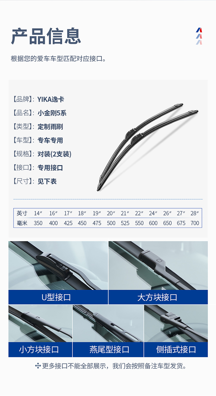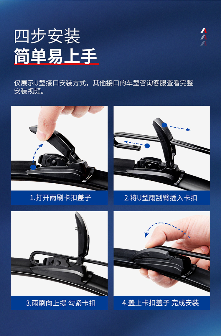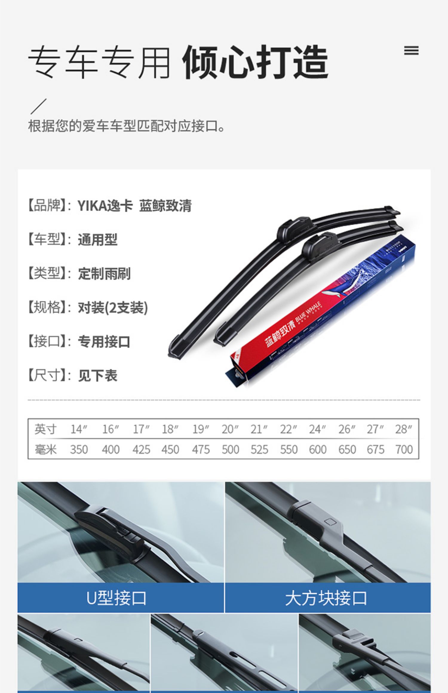 下单备注年份车型,安装简单,适合99%的车型!5A级天然胶条,外观时尚,经久耐用,刮拭干净,运行稳定安静!