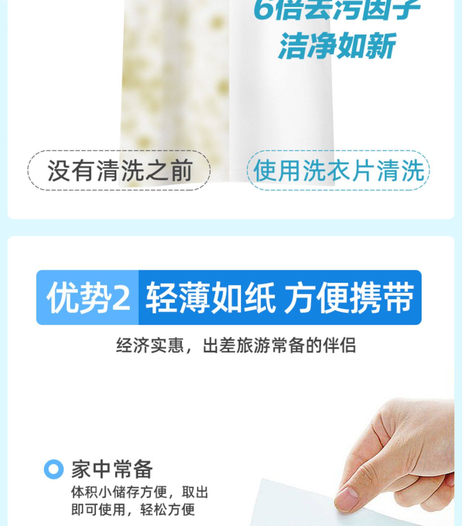 一片能洗一桶衣服,低泡无磷洗衣片,纳米超浓缩,无荧光剂,强力去污,深层洁净,植物提取精华,温和不伤手,家居必备!买过的都说好~