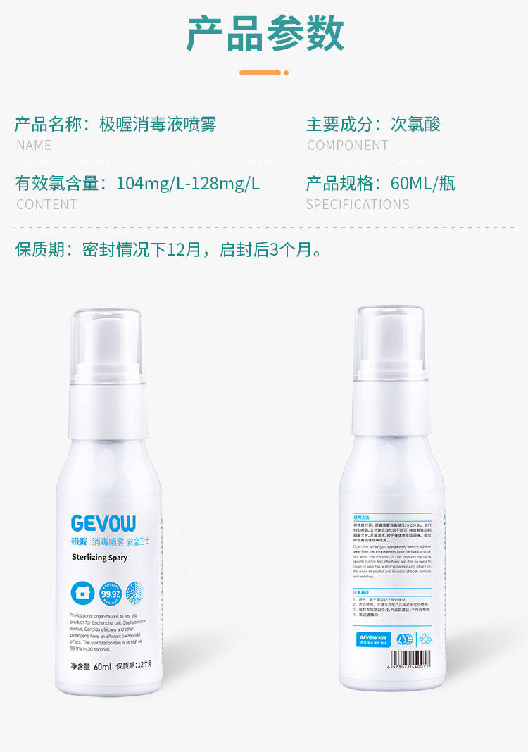 极喔次氯酸水消毒液喷雾*1瓶