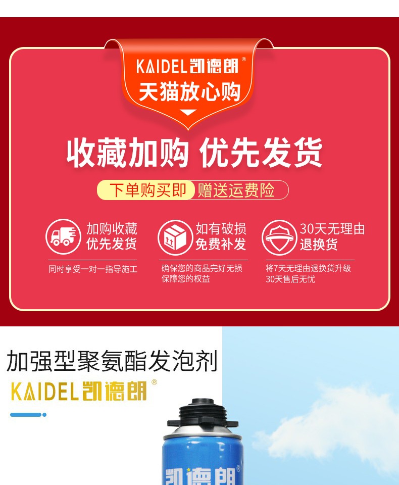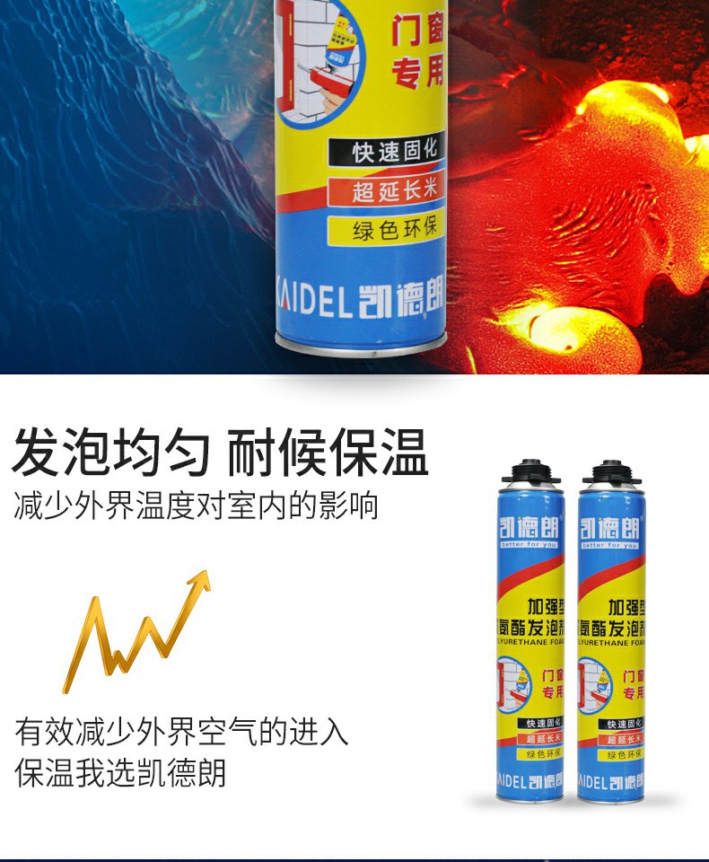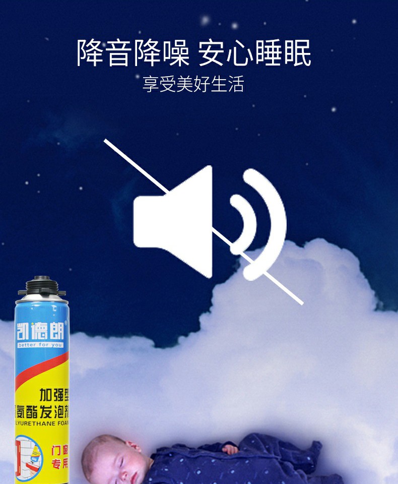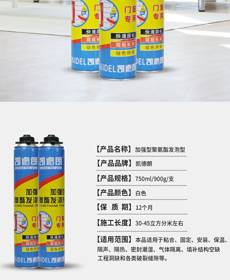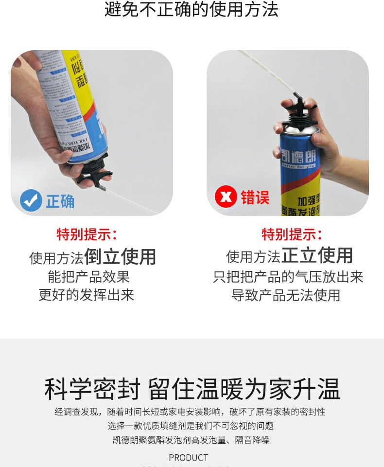 【送发泡枪+专用胶管】凯德朗发泡剂900g,不易燃,发泡量大,隔音降噪,保温隔热,防风防水防蚊防老鼠,无异味,不发黄,高密度,高弹性,耐挤压,稳定性好,适用范围广~