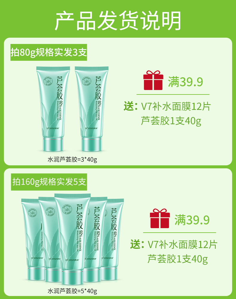 【拍1发3,到手3支装~】线下专柜买39一支啊!纯植物萃取芦荟胶,护肤万金油!晒后修护,祛痘消炎,还可以拿来全身护理,做营养面膜,补水眼膜,消除皱纹,黑眼圈。