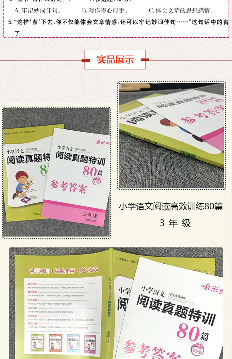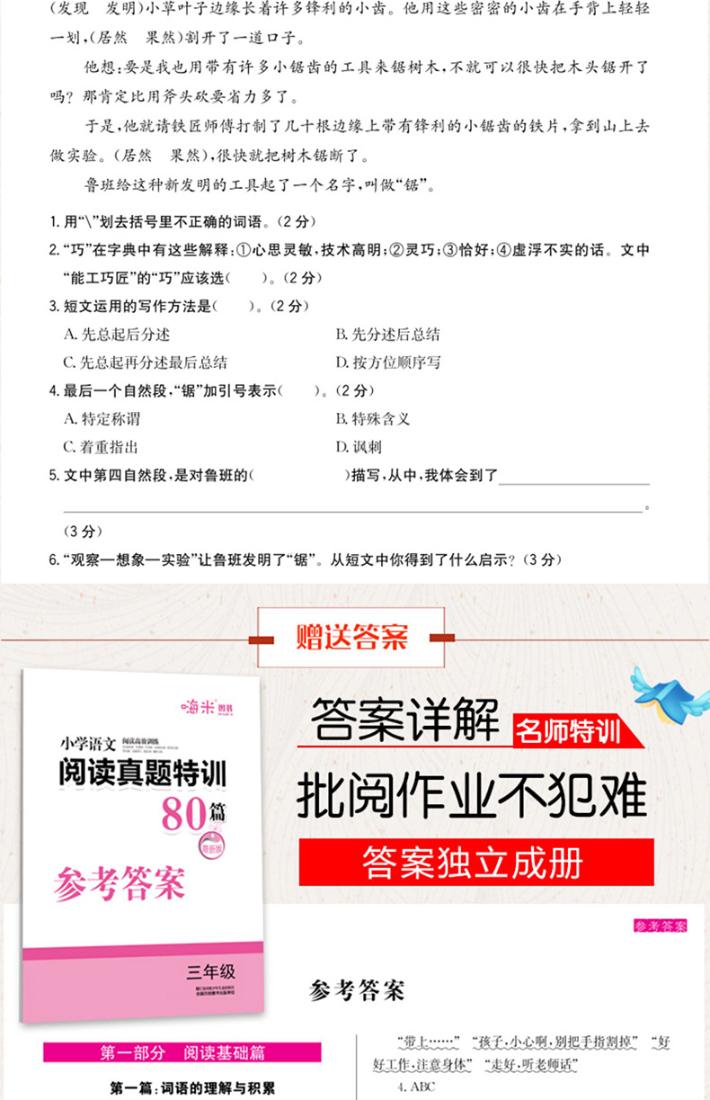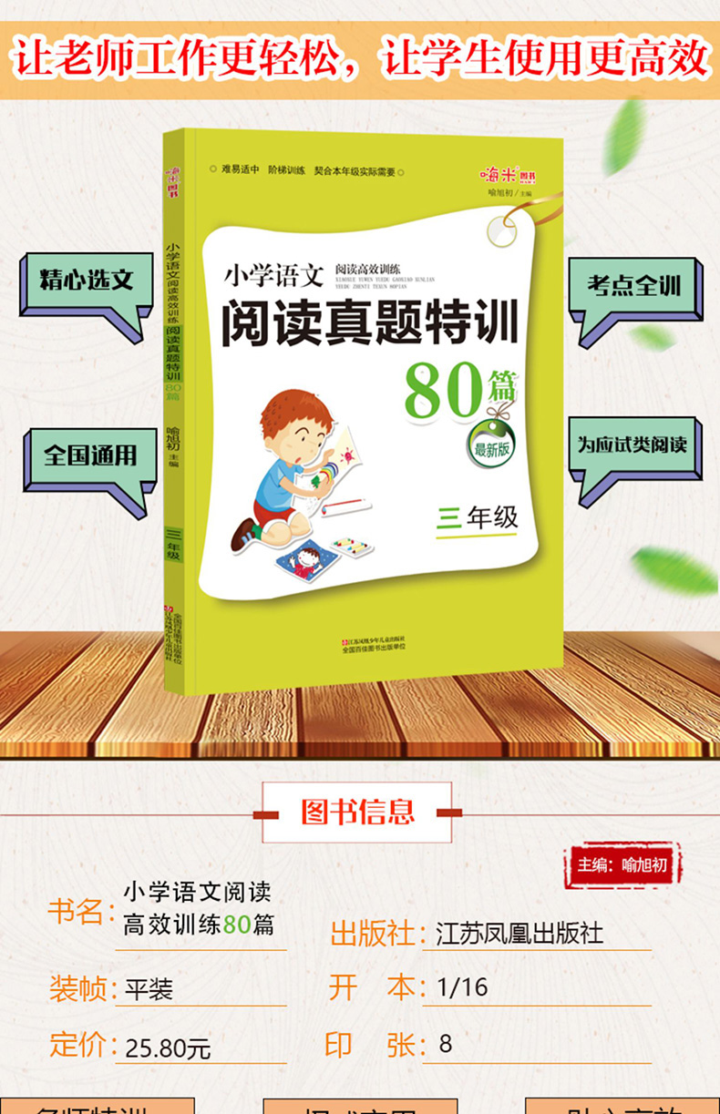 三年级小学语文阅读真题训练80篇,学语文靠谱的方式就是大量阅读,精心选文,考点全训,名师特训,考点解析,难易适中,让老师工作更轻松,让学生学习更有效!