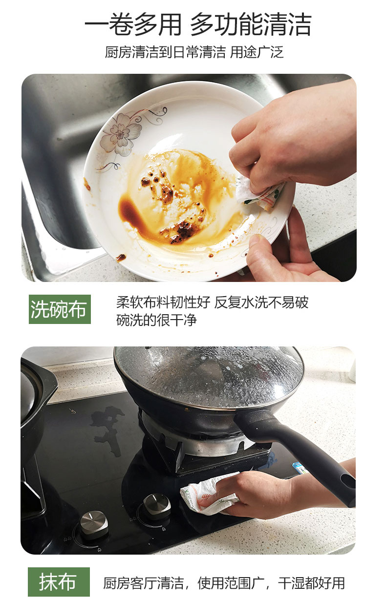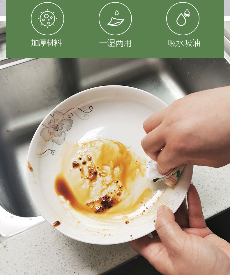木浆材质,加厚材料可水洗,能反复使用5-6次!快速吸油,不掉毛屑,懒人清洁小帮手!卫生便捷更安心!点断式可撕设计,轻松撕拉,方便定量取用!
