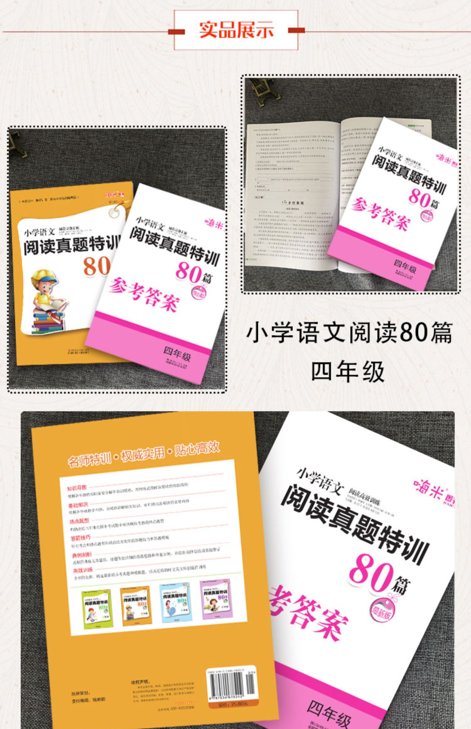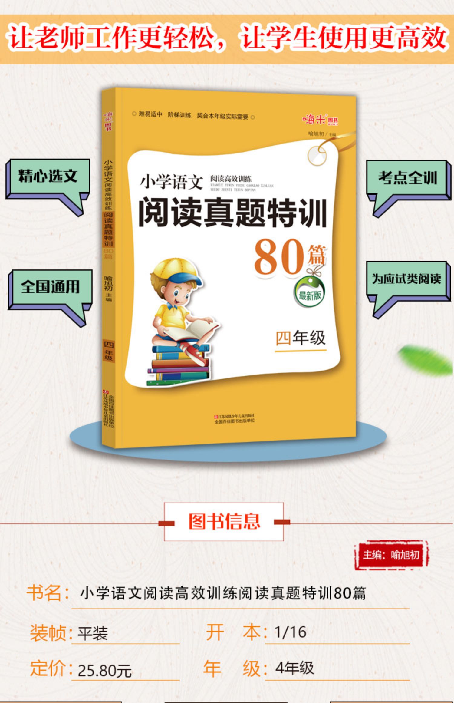 四年级小学语文阅读真题训练80篇,学语文靠谱的方式就是大量阅读,精心选文,考点全训,名师特训,考点解析,难易适中,让老师工作更轻松,让学生学习更有效!