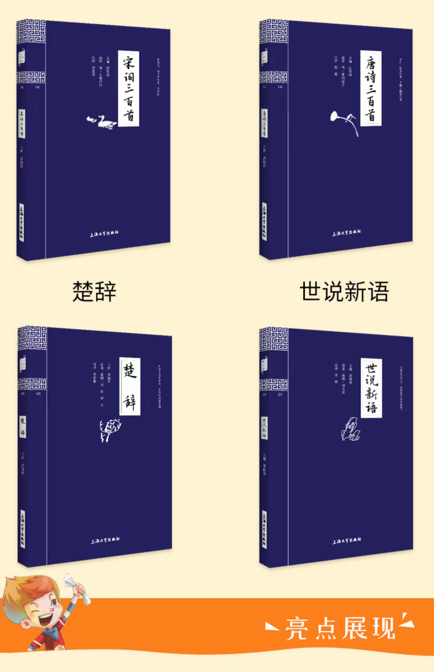 超值秒杀1册~国学启蒙经典!唐诗三百首+世说新语+宋词三百首+楚辞,注释、译文、诗词今译,中小学通用,语文老师推荐,孩子的课外读物,秒杀5.8一册,抓紧给孩子屯上,手慢无!