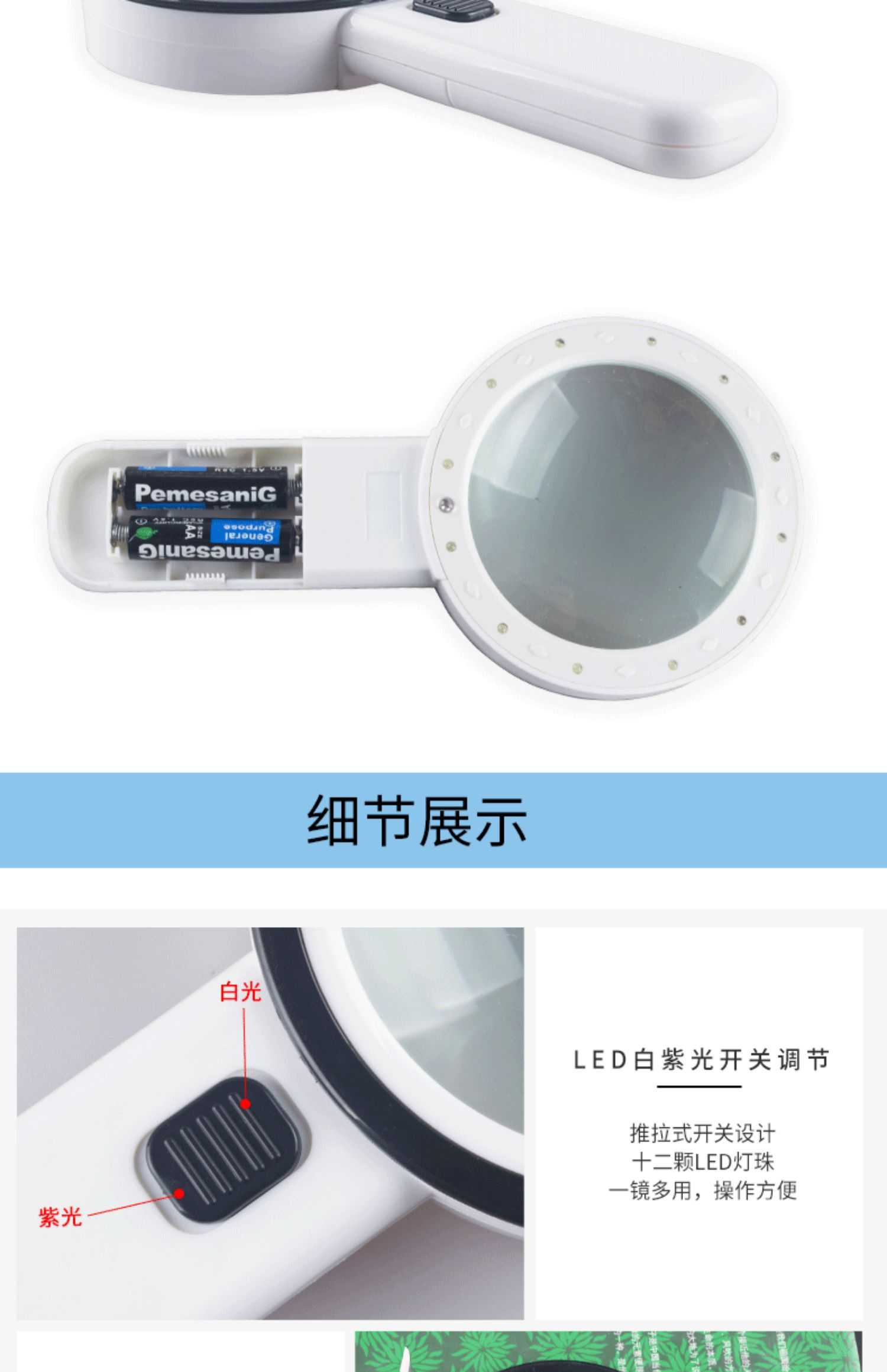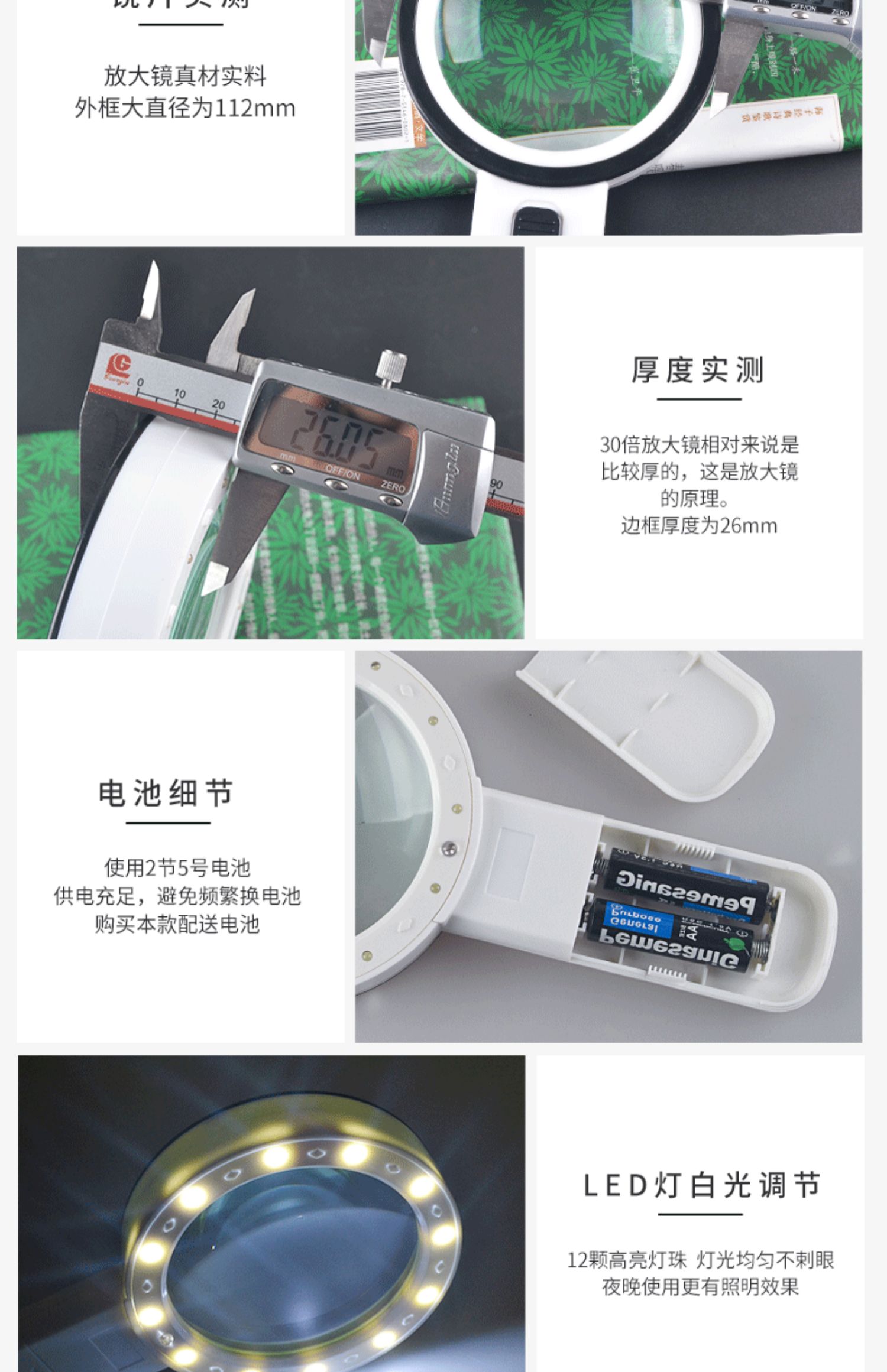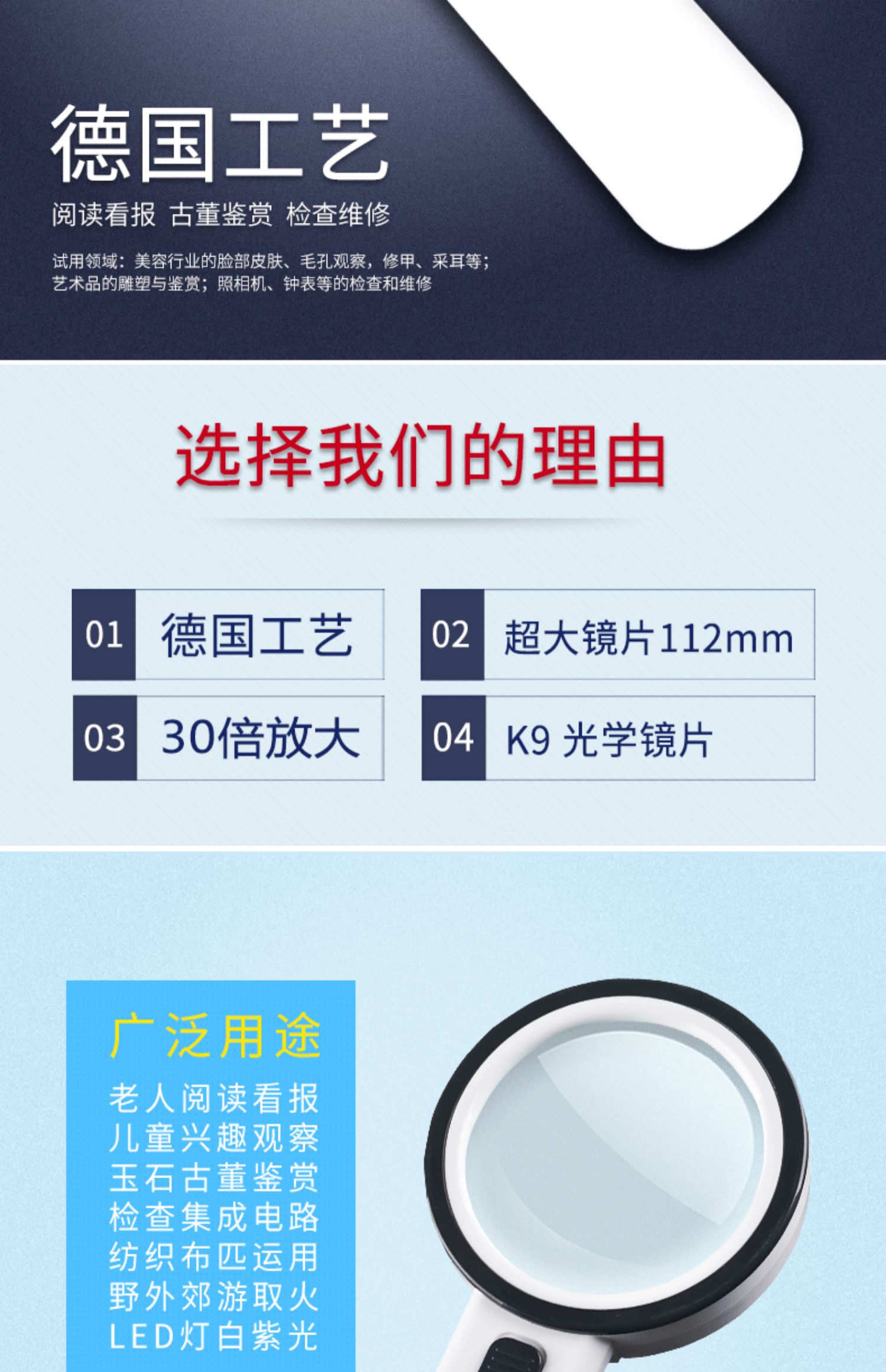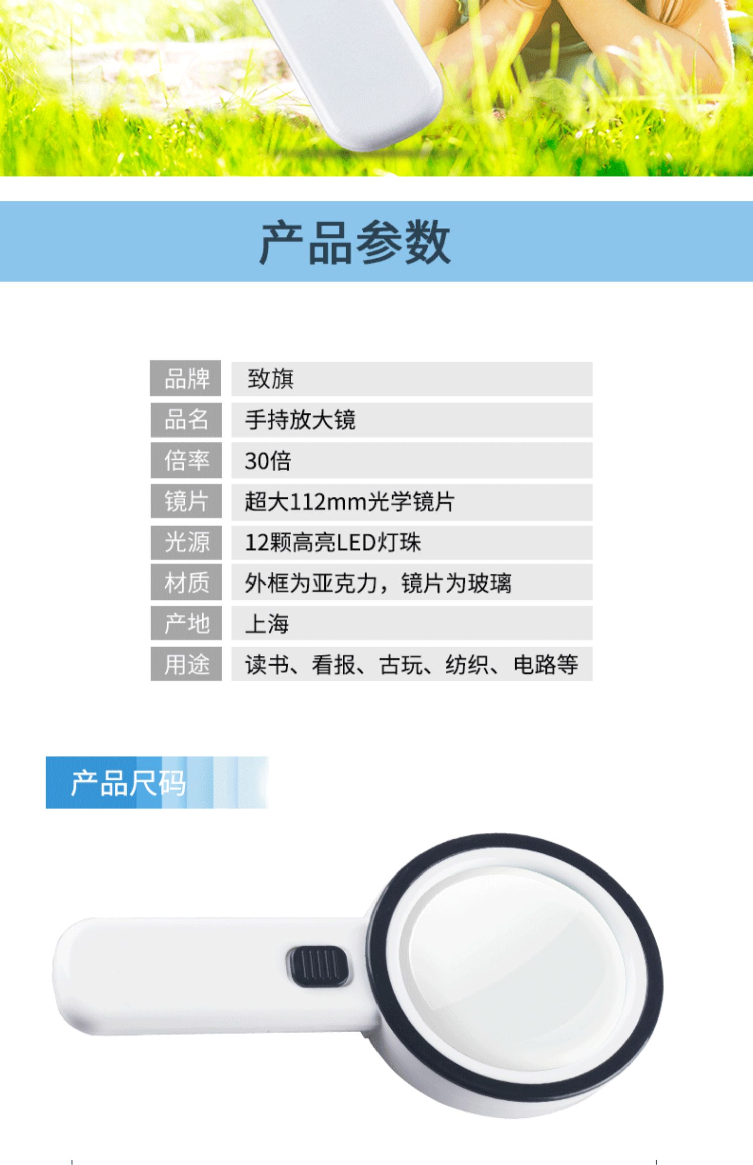 致旗德国工艺高倍,手持放大镜LED带灯30倍,100高清老年儿童小学生用20老人阅读,10扩大镜手机维修60便携式1000,30天无理由退货,一年内只换不修,送运费险