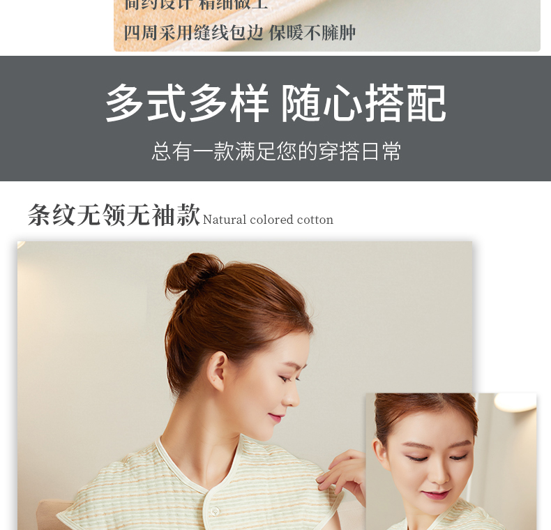 夏天纯棉护肩颈椎坎肩,空调房防寒保暖,全新A类母婴面料,舒绒彩棉暖肩护背,居家户外运动拒绝束缚,轻松保暖自在玩乐。