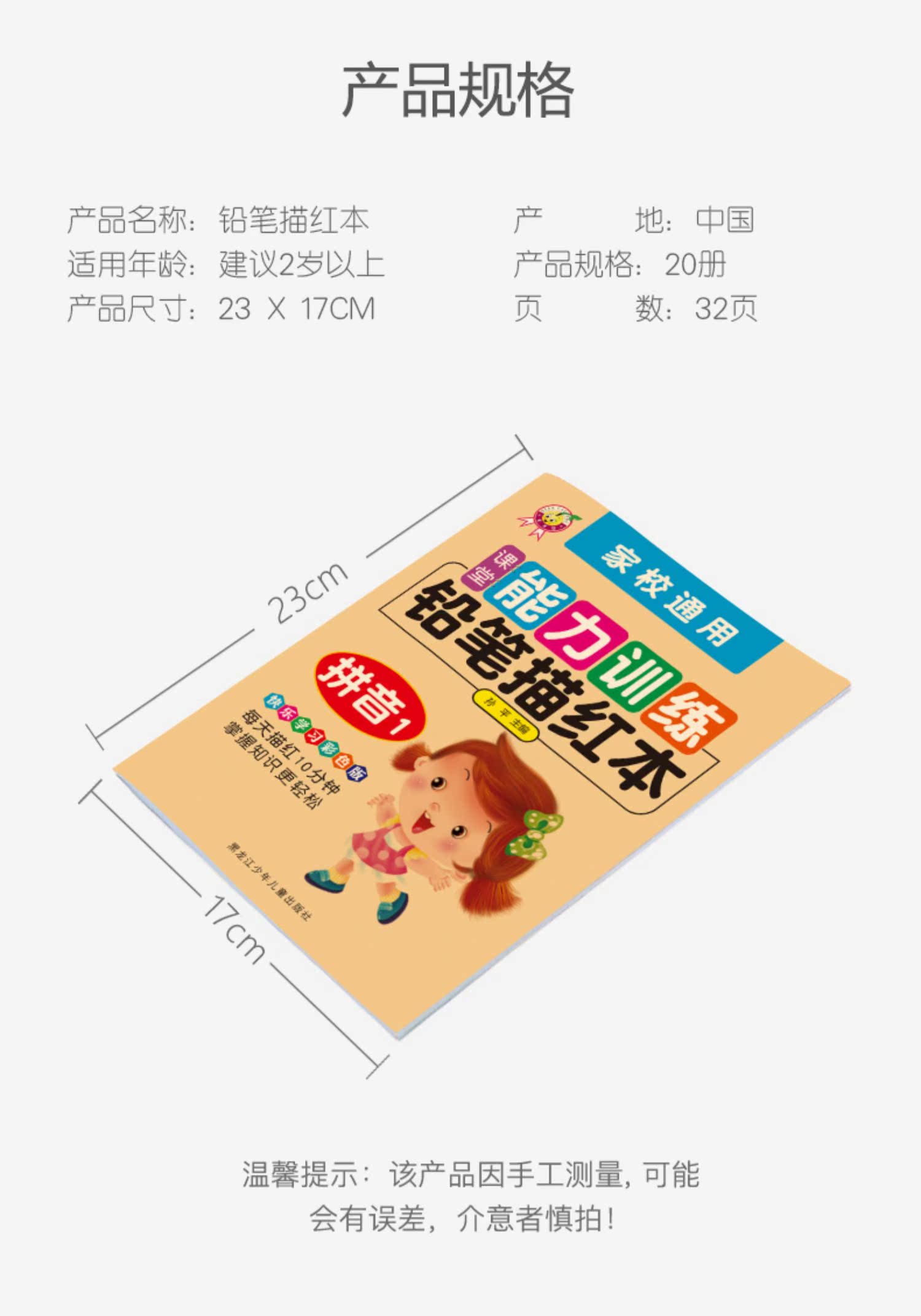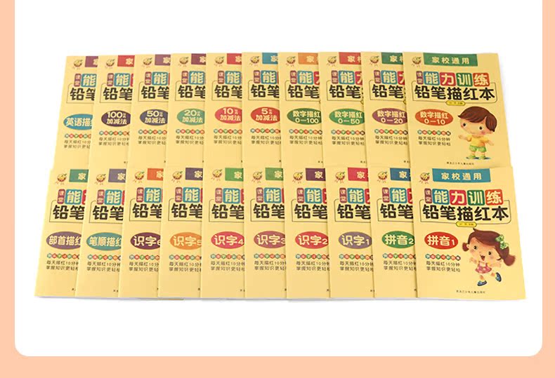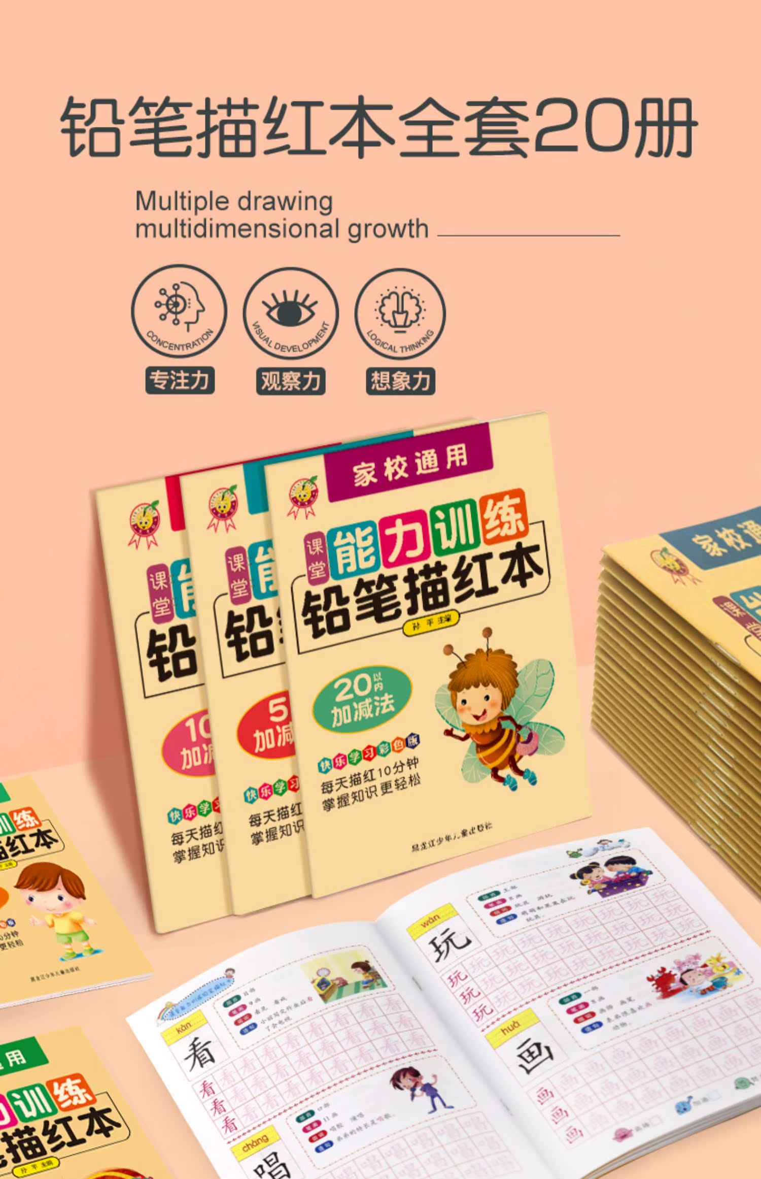 铅笔描红全套20册可选,心选加厚纸张,质量看得见。牛皮纸封面设计,多种科目可选!每天练习十分钟,让宝宝轻松上小学~