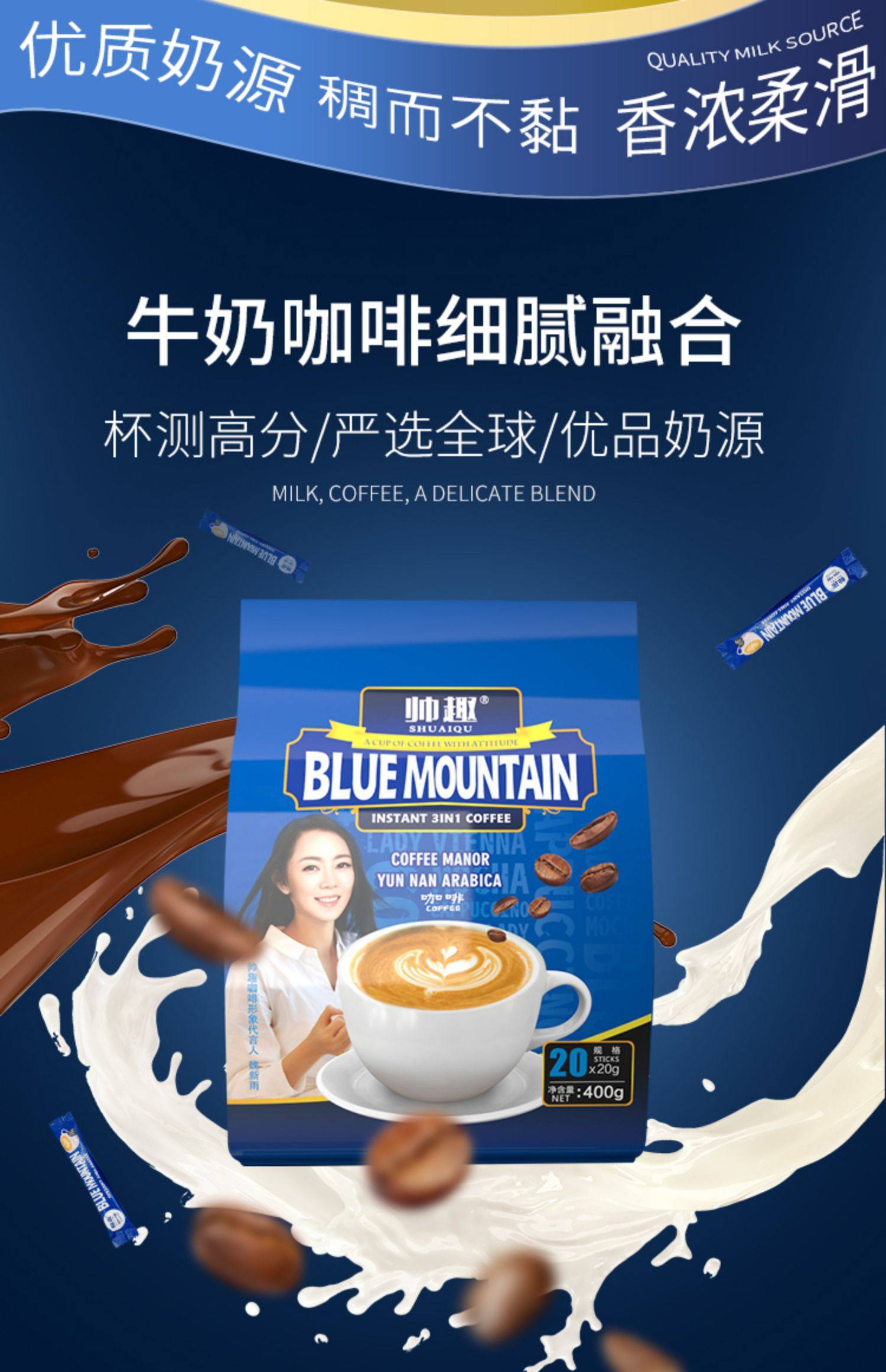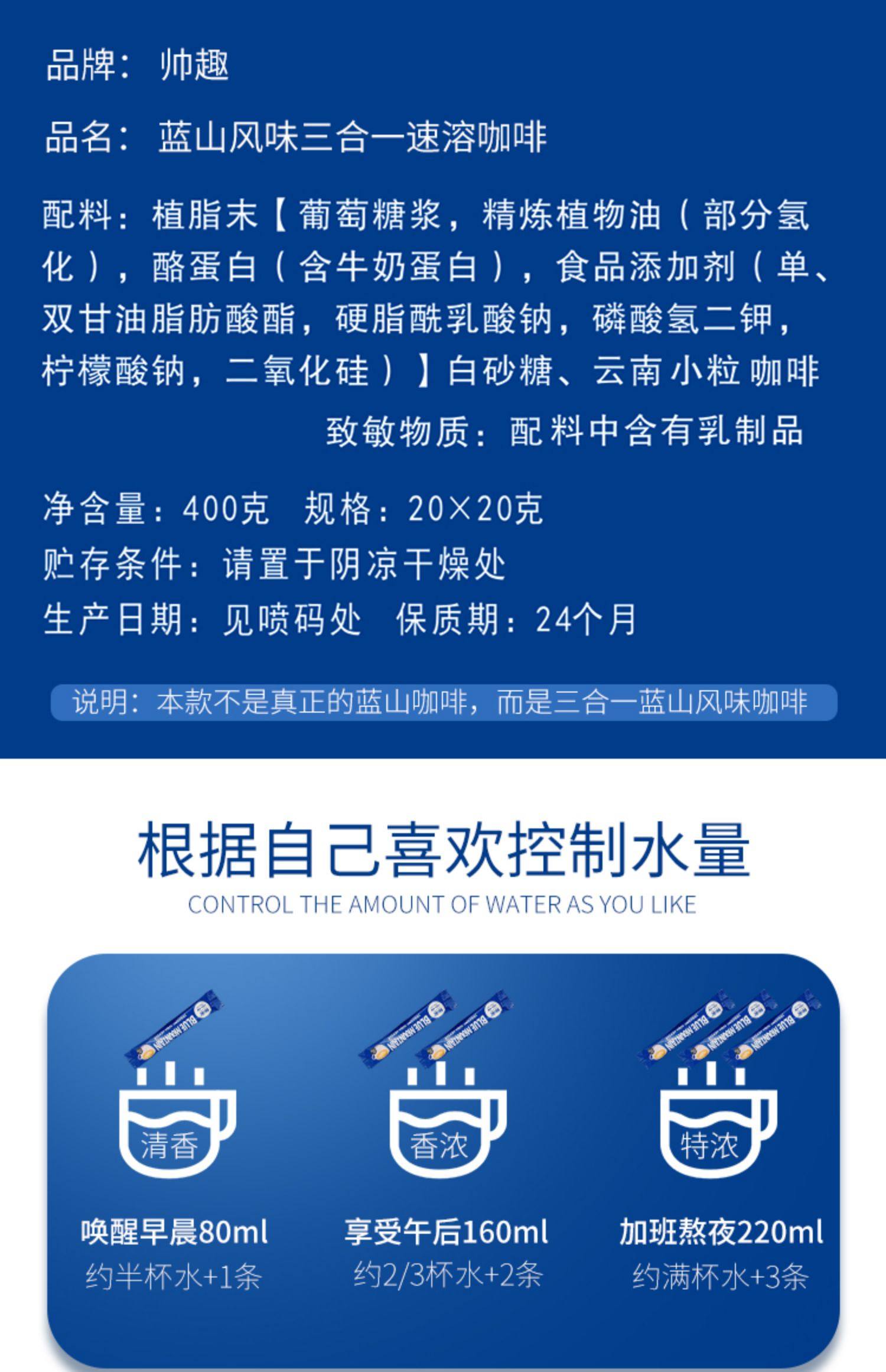 帅趣咖啡蓝山三合一速溶黑咖啡粉20条装