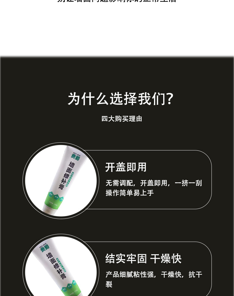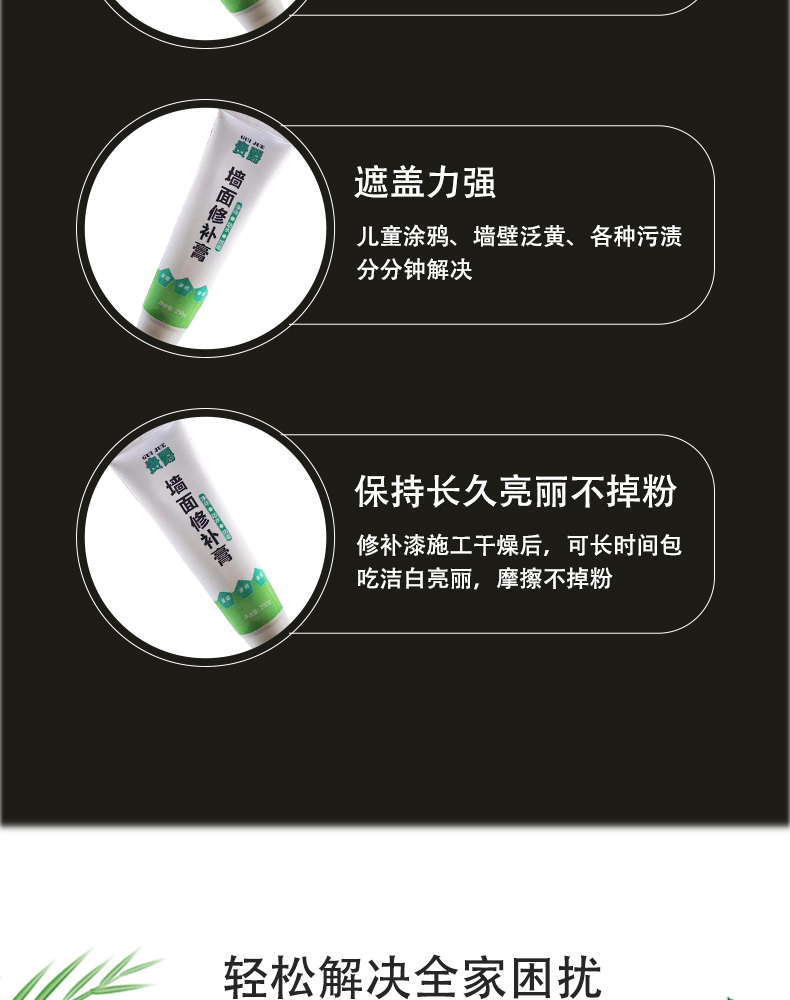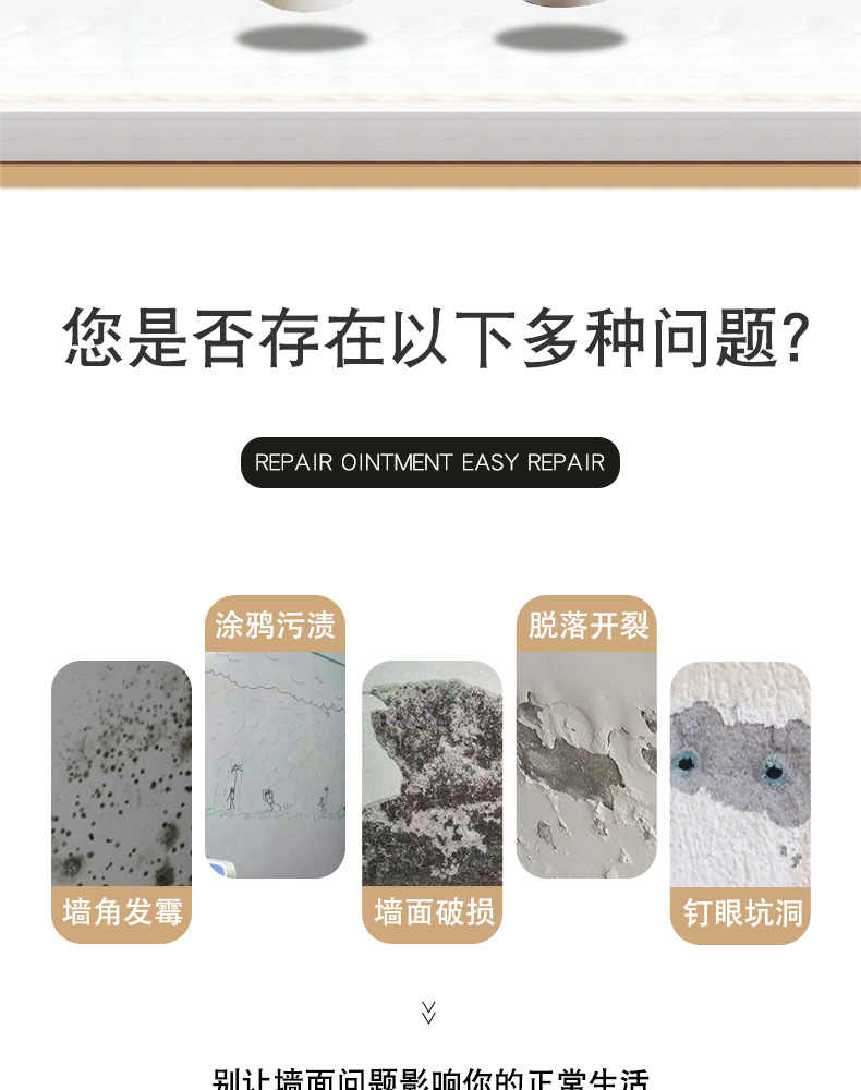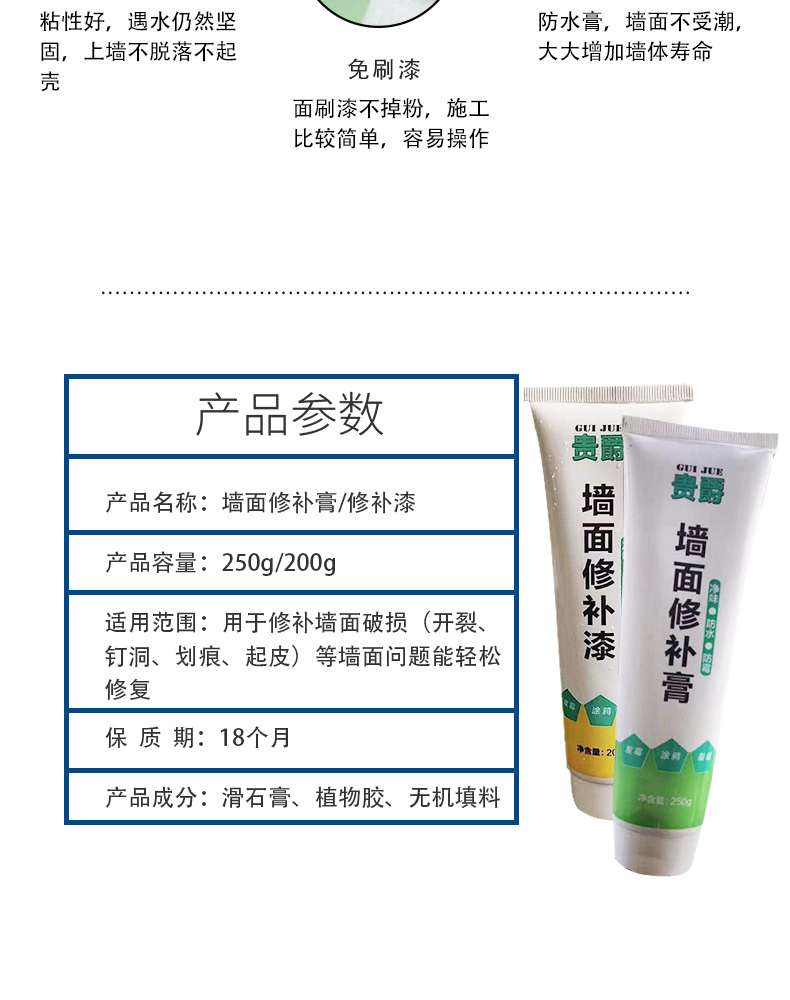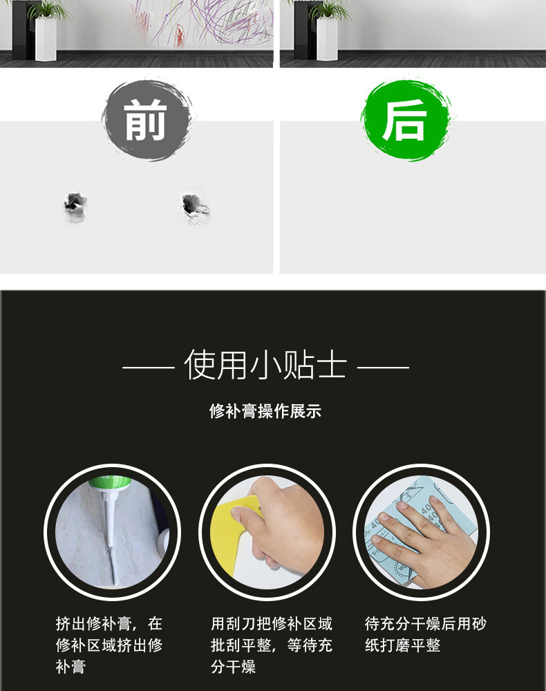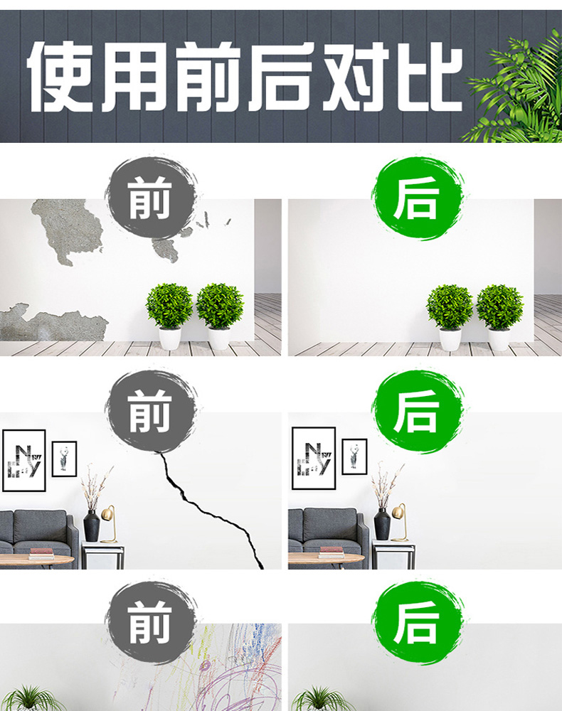 室内外墙面修复补墙膏,家用耐缘防霉耐水腻子粉涂料,告别墙面起皮,起泡,脏污,划痕,涂鸦不脱落,不开裂,限时促销。安全无甲醛,健康很重要。