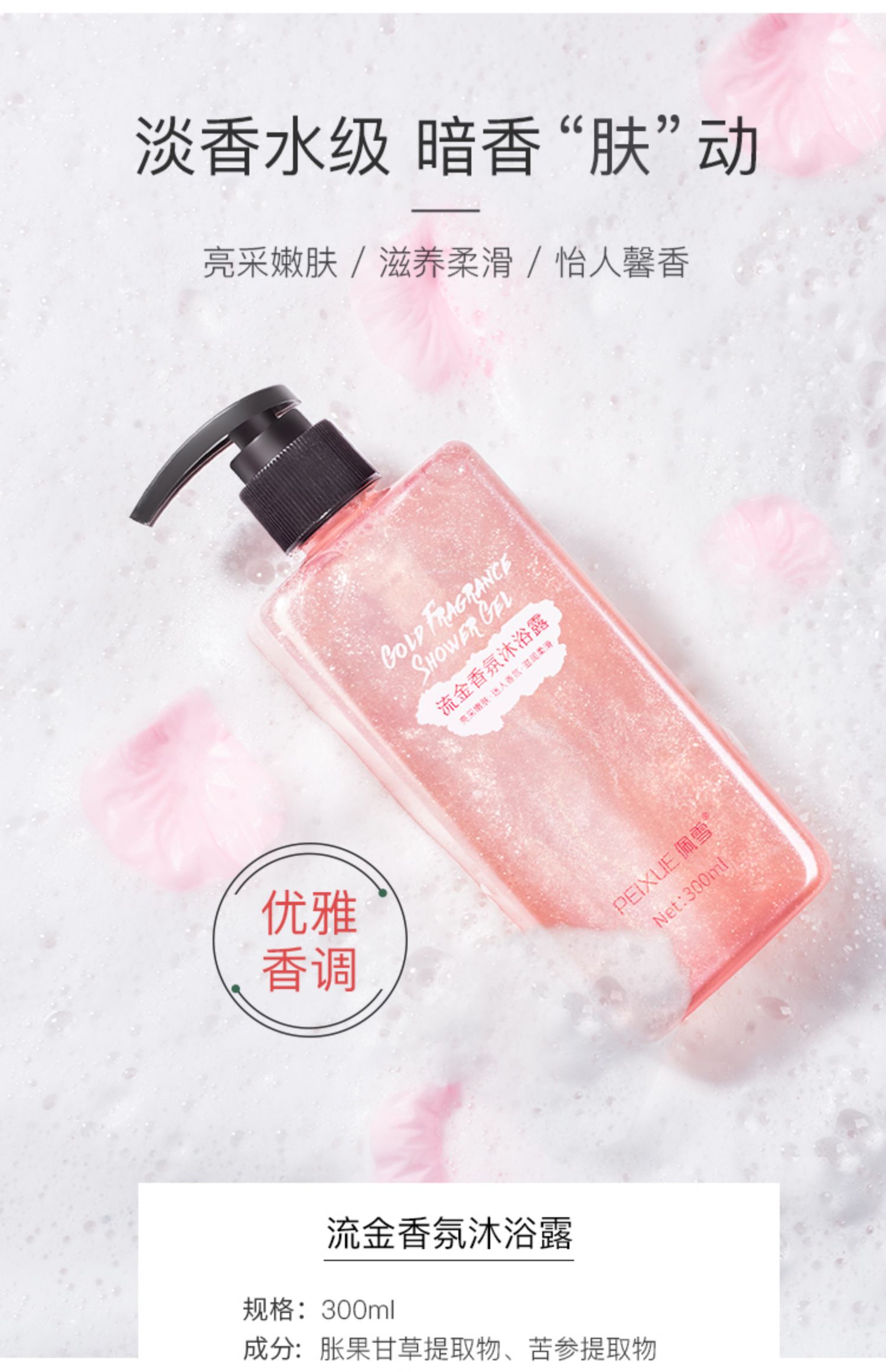 【抖音网红爆款】流沙鎏金氨基酸香水沐浴露,细密泡泡,快速渗透,锁水保湿,持久留香,从包装到瓶身飘动的流沙,超高颜值,一瓶懂你的沐浴露,享受每一天的肌肤SPA
