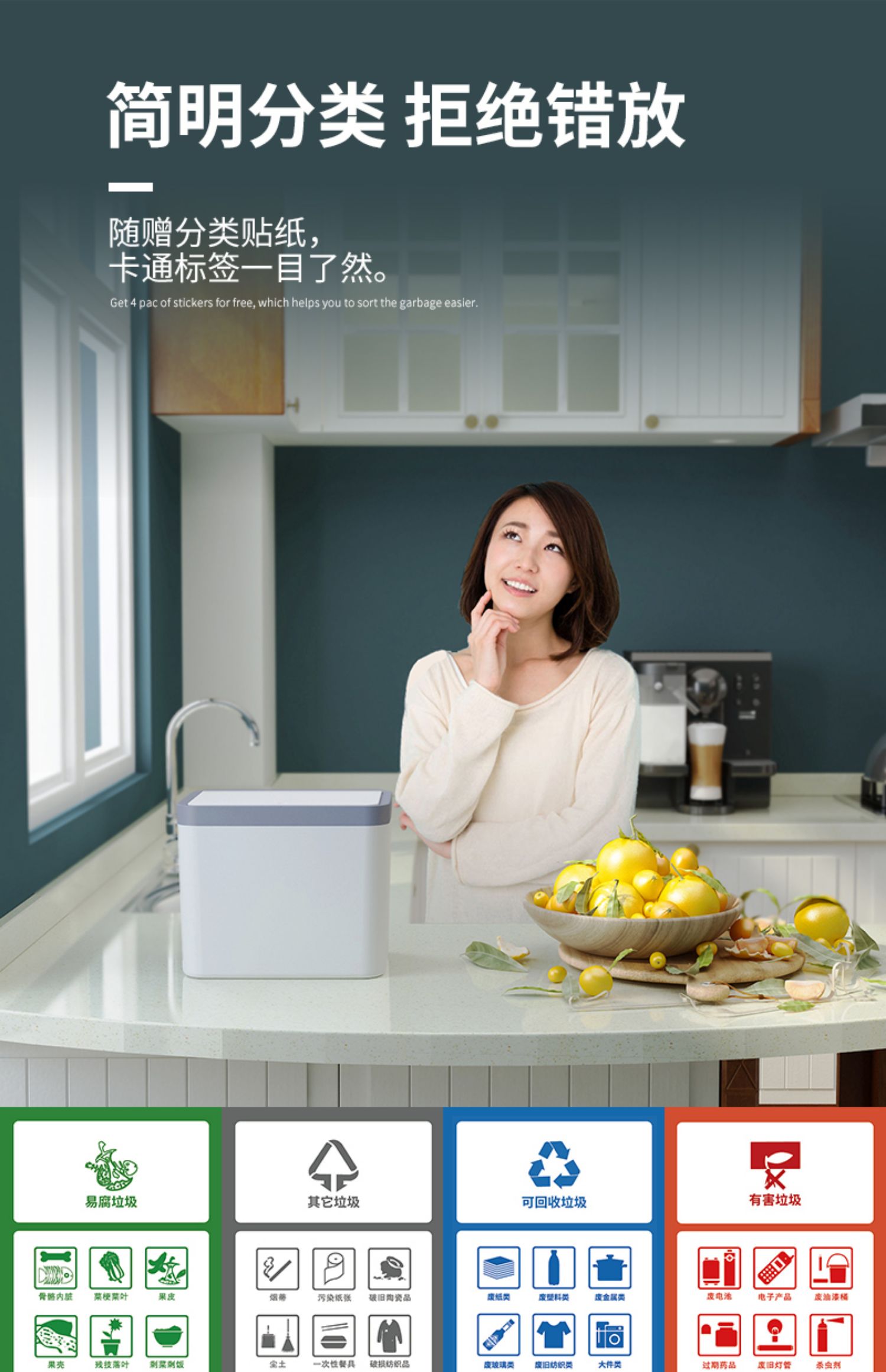 让垃圾分类更轻松,随赠分类贴纸,一步配齐无烦恼,多类桶设计,两色可选,分类一目了然,一起为生活环境、为绿色地球加油!