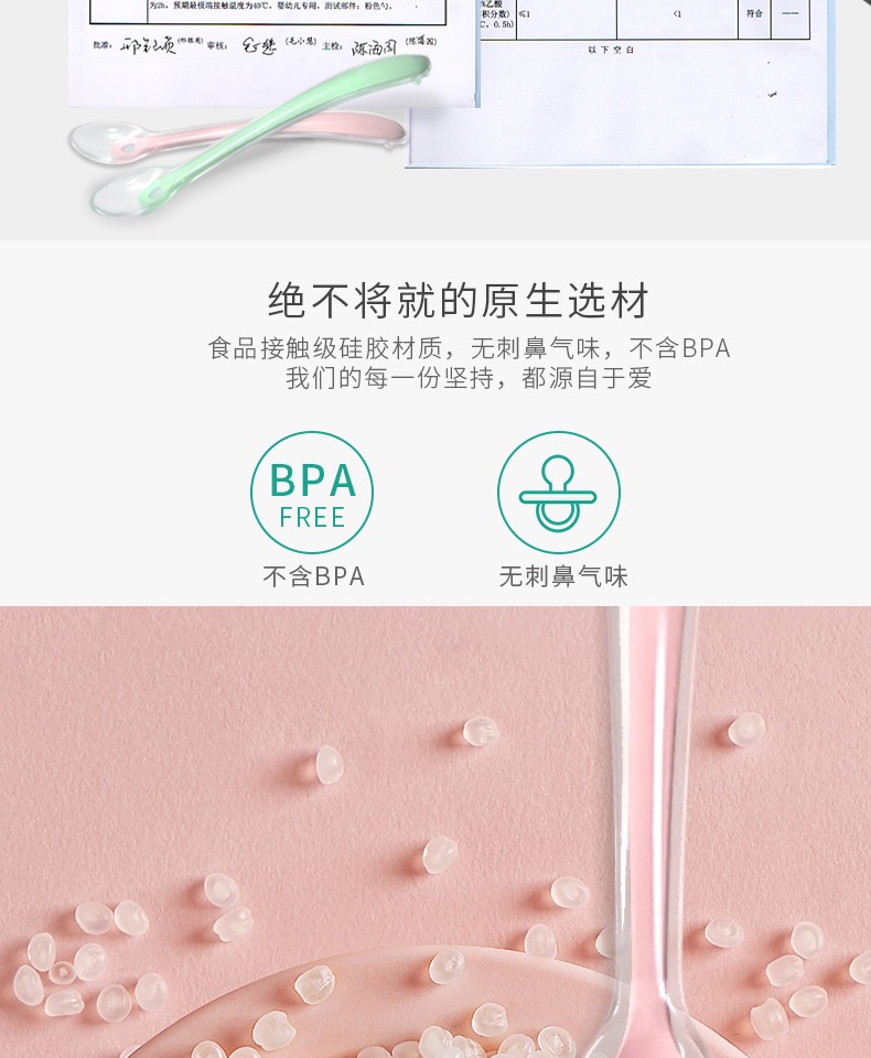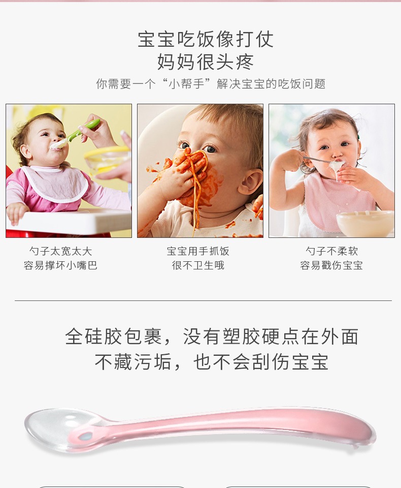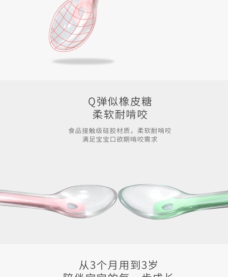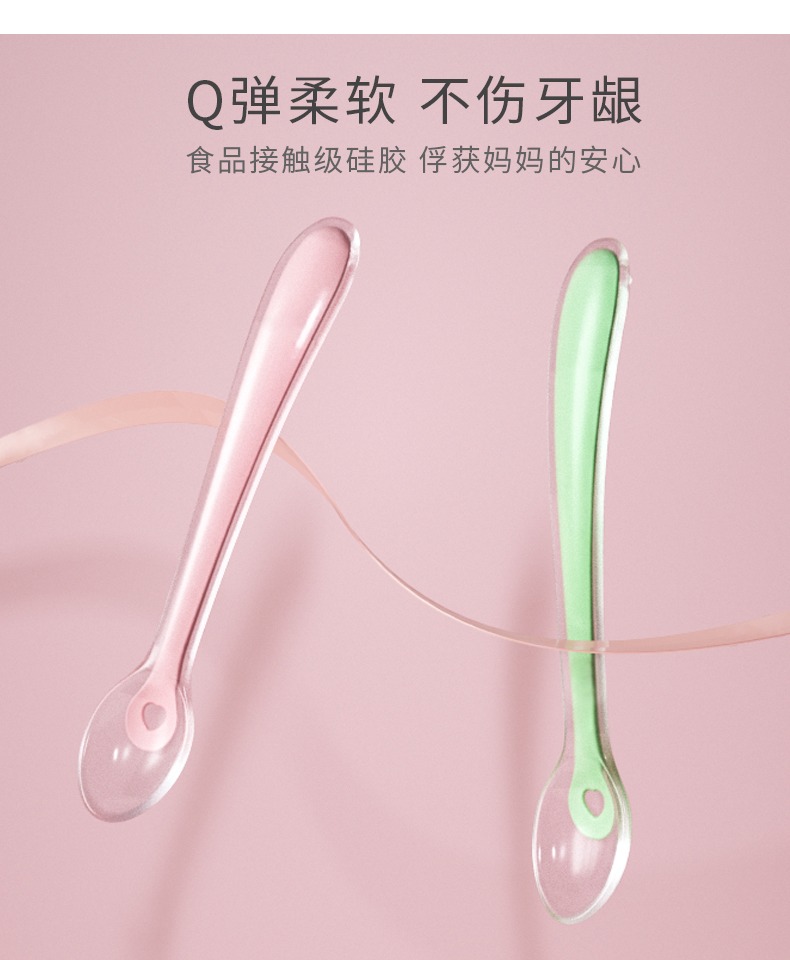 【两只勺子+收纳盒】婴儿硅胶软勺食品级硅胶,不刺激宝宝口腔安全性高,配备防尘盒防尘防污,携带方便拆卸方便快捷,随拆随洗,适合Q弹圆润勺头,带弧度手柄,易抓握,可高温水煮消毒,妈妈们的放心选择。