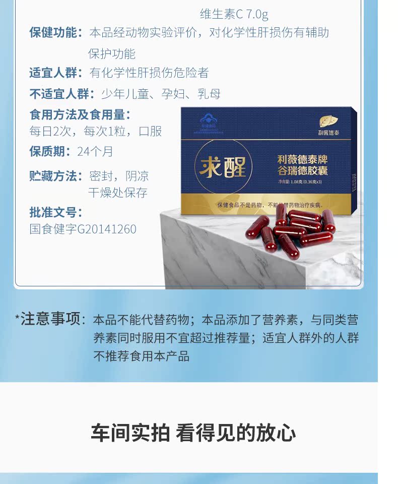 【利薇德泰,满减劵后只要5元】对于经常聚会者,饮食不规律者,夜店泡吧者,长期服药人士,有很不错的肝脏损伤有辅助保护功能!谷瑞德胶囊生物发酵,居家必备,守护您和家人的健康~~