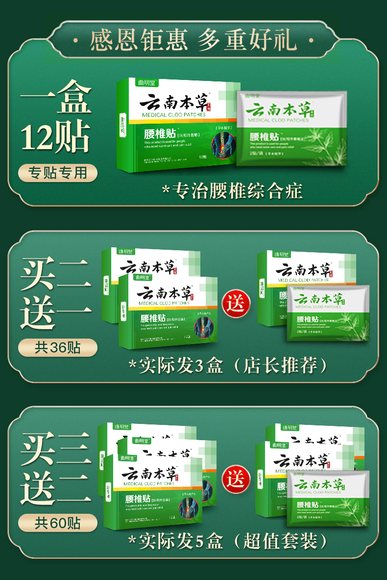 【买二送一】【云南本草】药监局备案官方正品,4.9分超高好评!有效针对颈椎病、肩周炎、腰腿痛、骨质增生、风湿关节炎、滑膜炎等,哪痛贴哪,效果不虚夸,适合各类人群,家中常备,一贴轻松!
