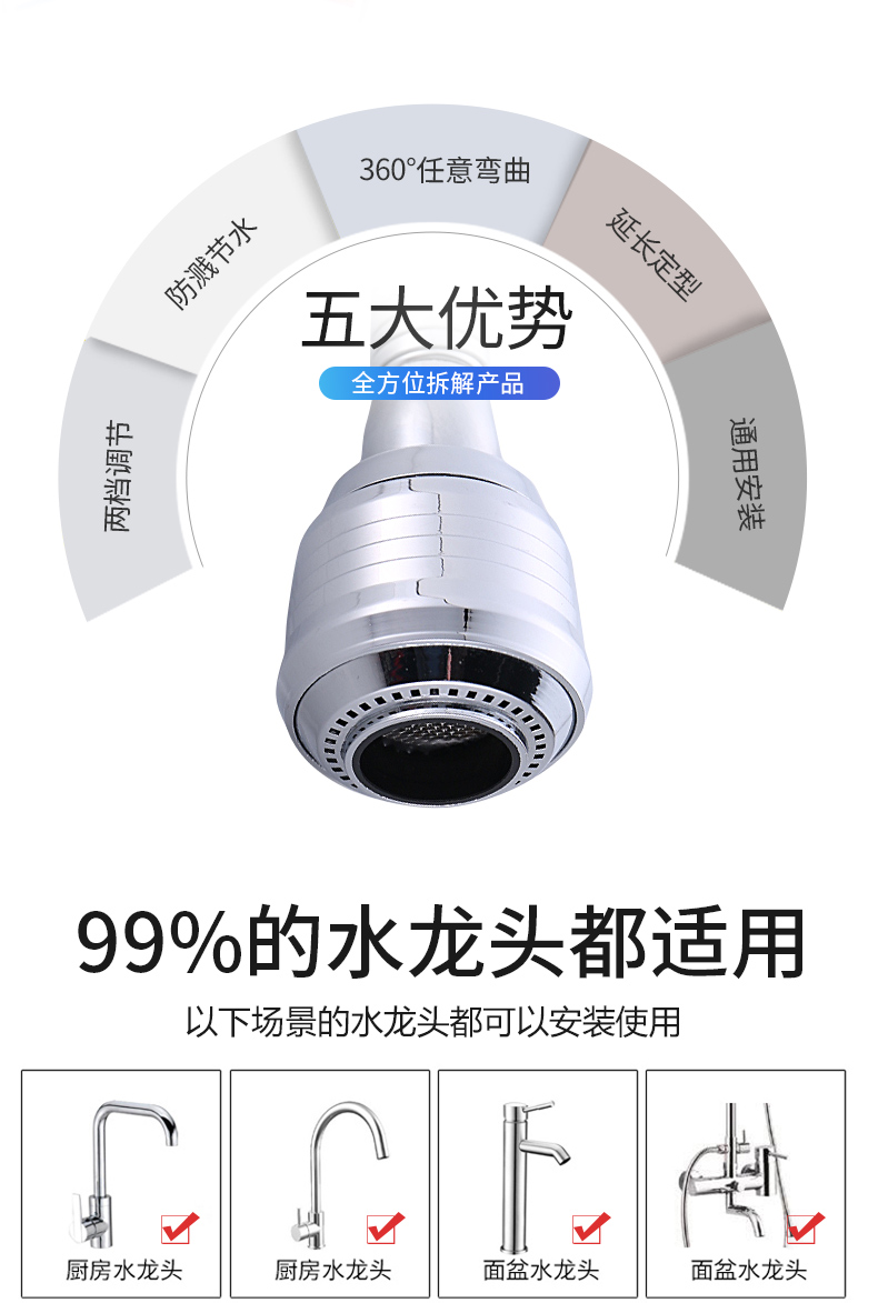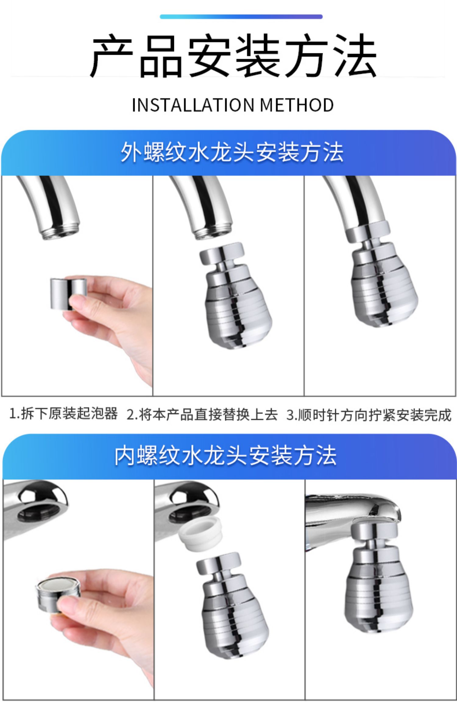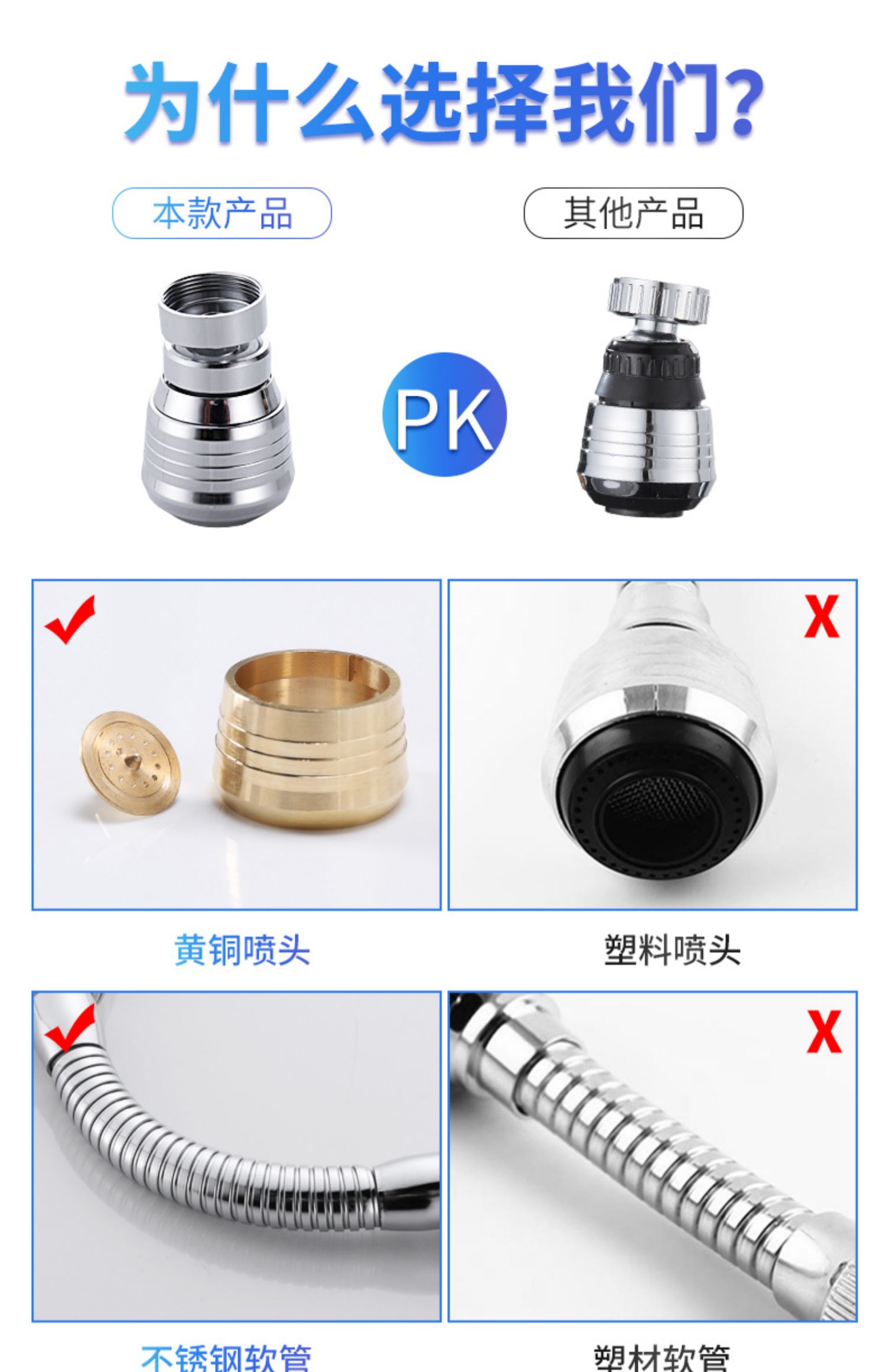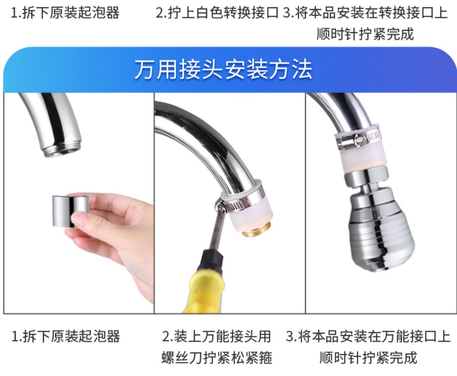 【全铜防锈】接口水龙头增压花洒【增压节水二合一】三挡出水,超强增压~家用厨房自来水井水!360度旋转防溅水花洒,龙头防溅节水,安装简单,结实耐用密封性好!