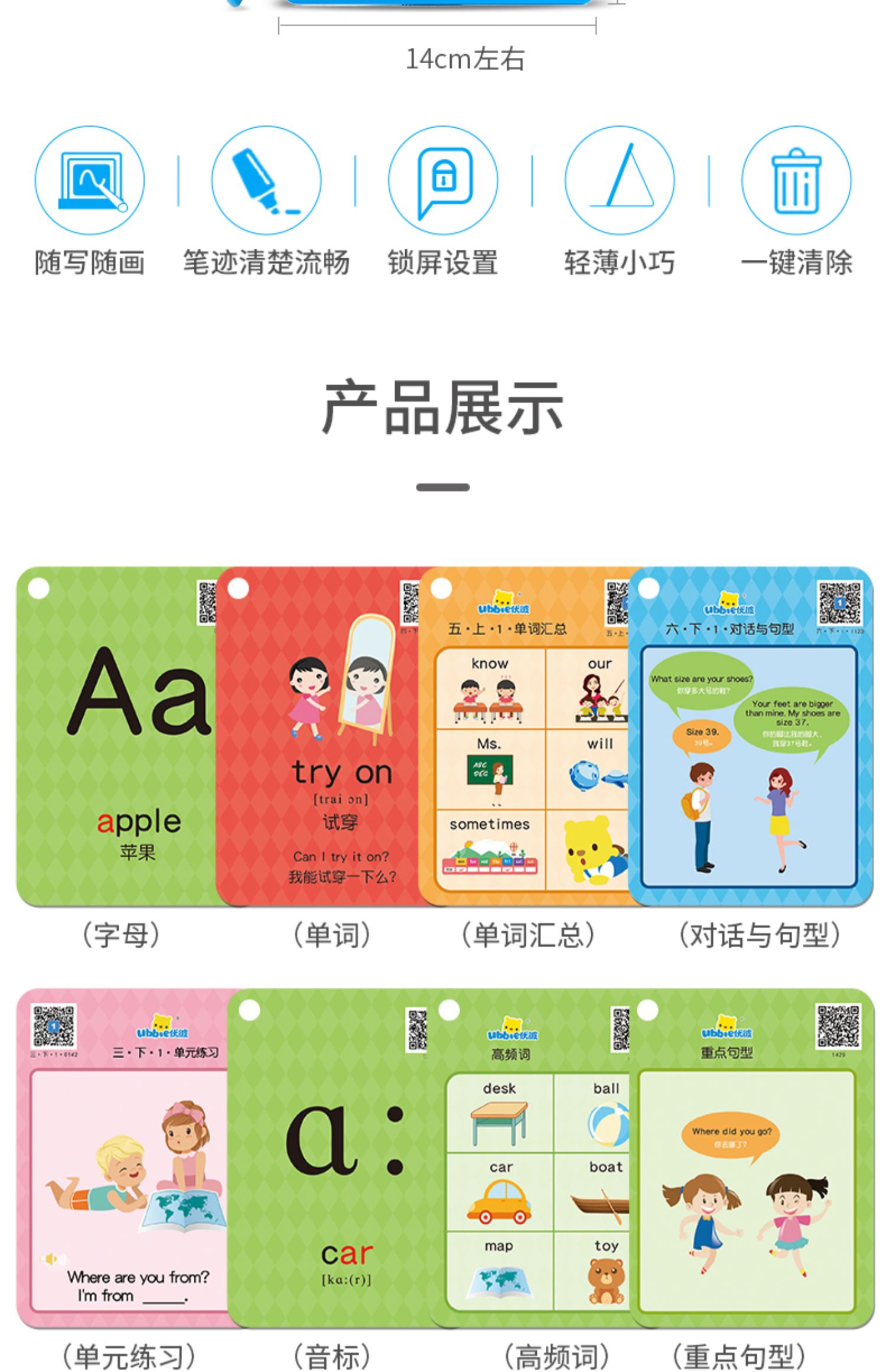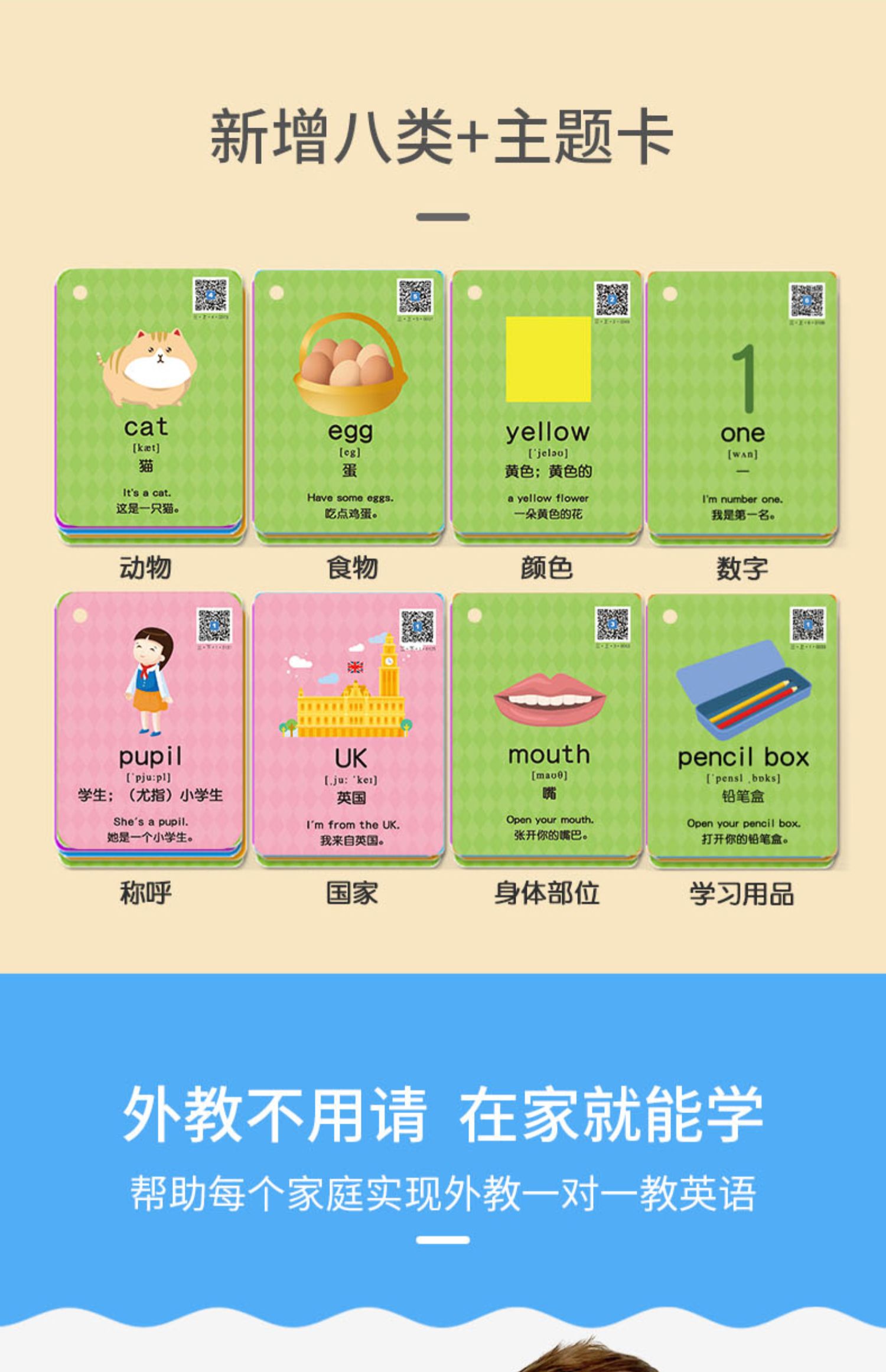 【60张120面】优彼英语单词卡片,儿童早教英文点读闪卡,同步小学全年级英语教材,158词+123句+93外教课,环保油墨大豆印刷,助力孩子轻松学英语,拍下立减1,低价速抢~