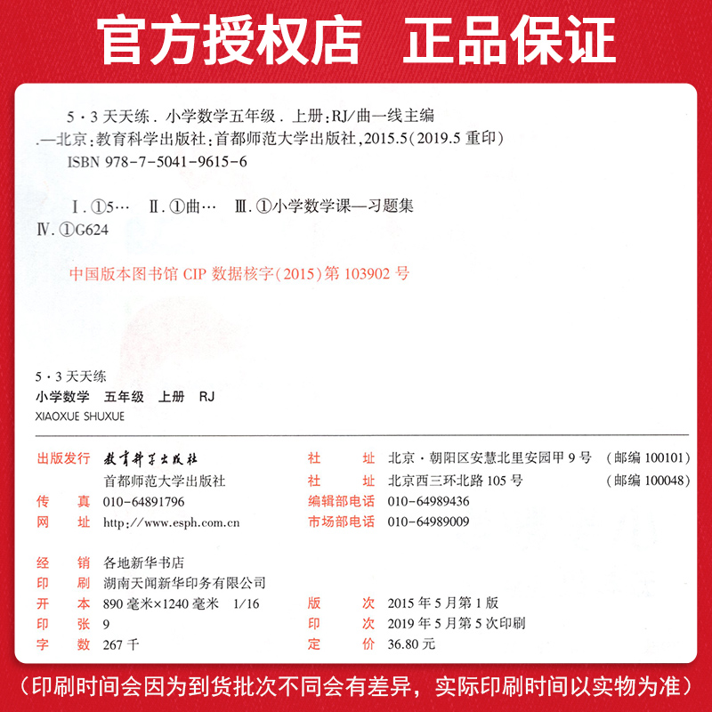 【买1送4】53天天练六年级上册数学同步练习册,题型多样,掌握知识技能,培养学生思考能力,增强应用意识,发展创新,掌握学习方法!让孩子学习更轻松